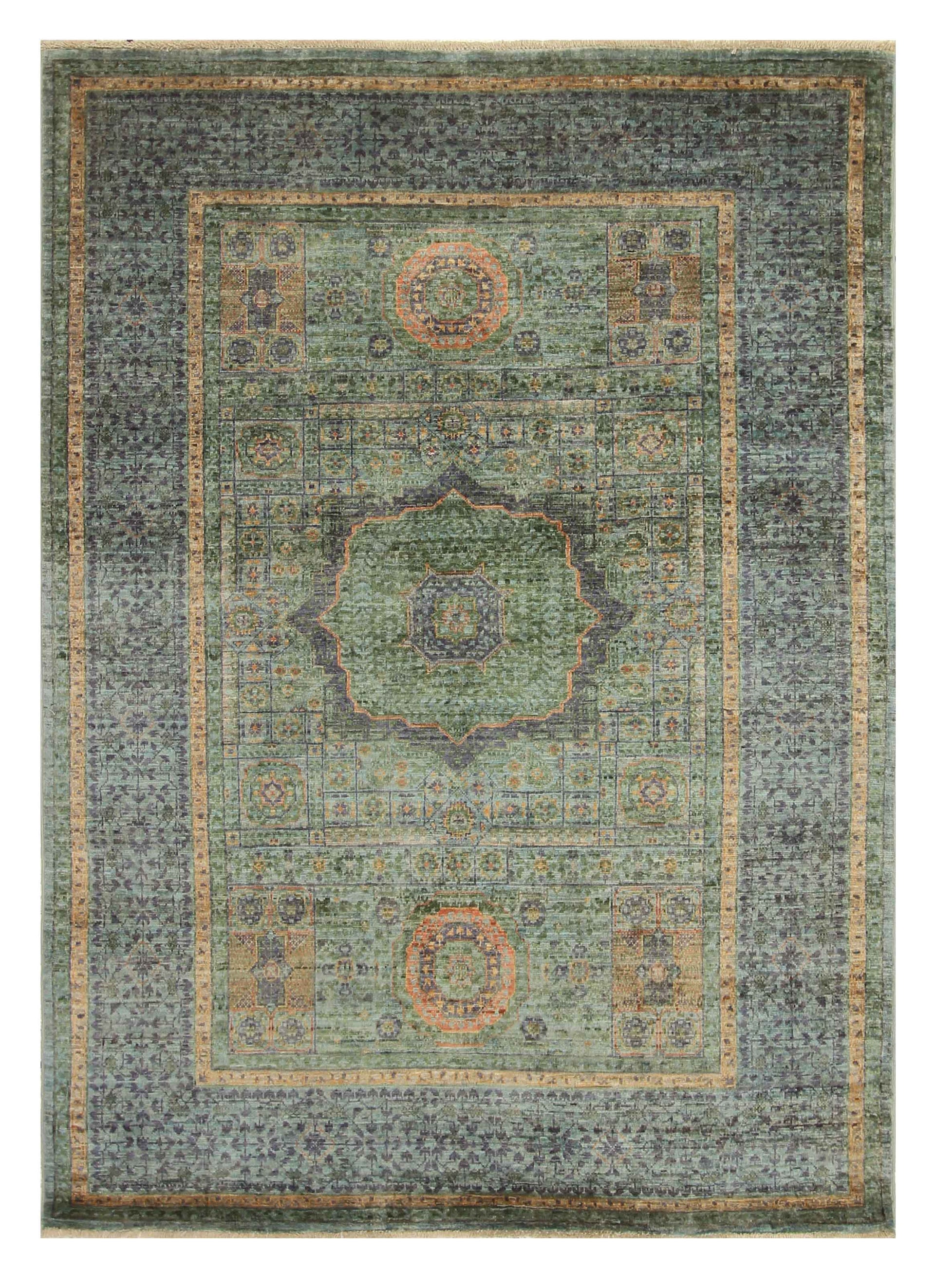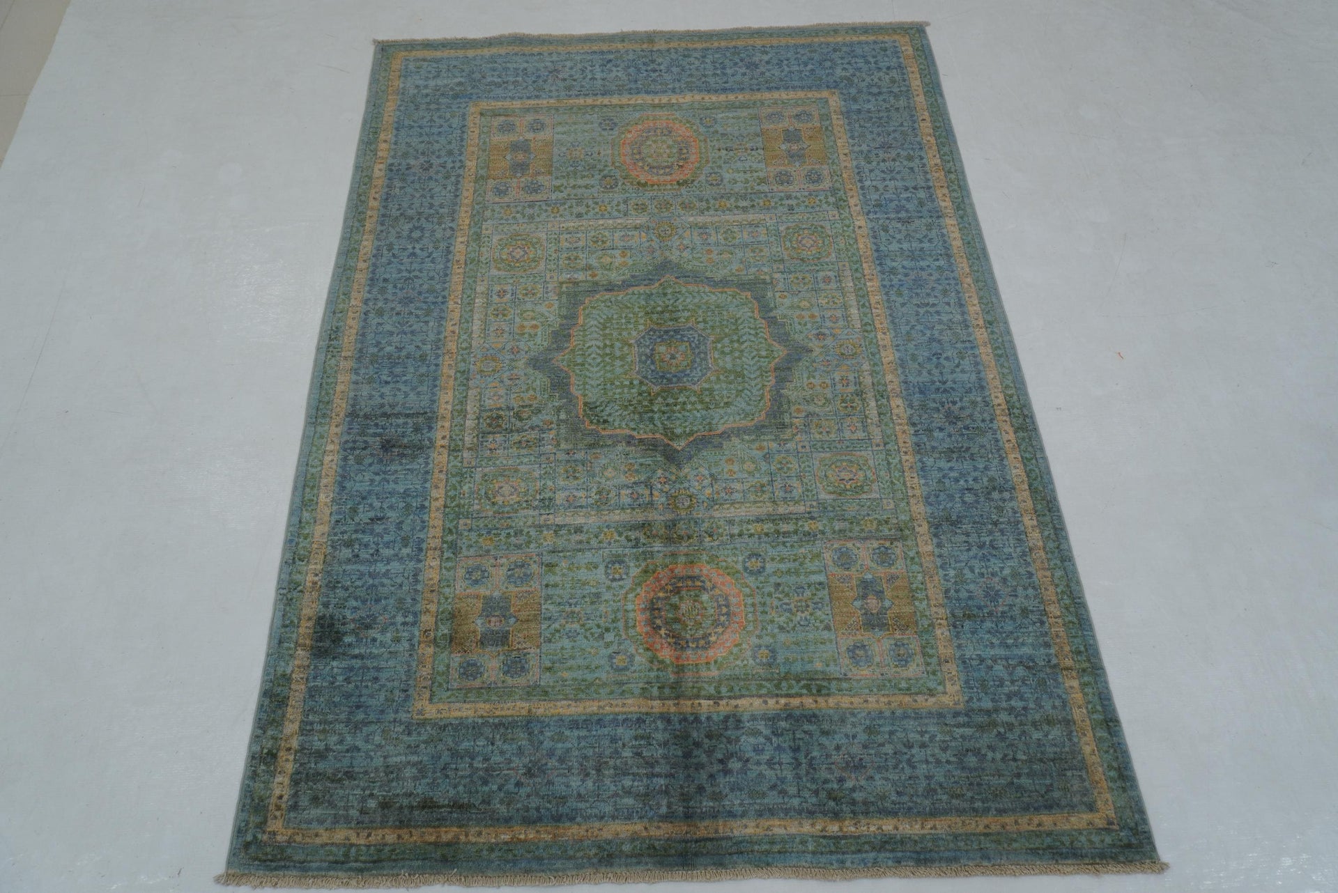 4x6 Muted Blue Mamluk Turkish Hand Knotted Medallion Rug