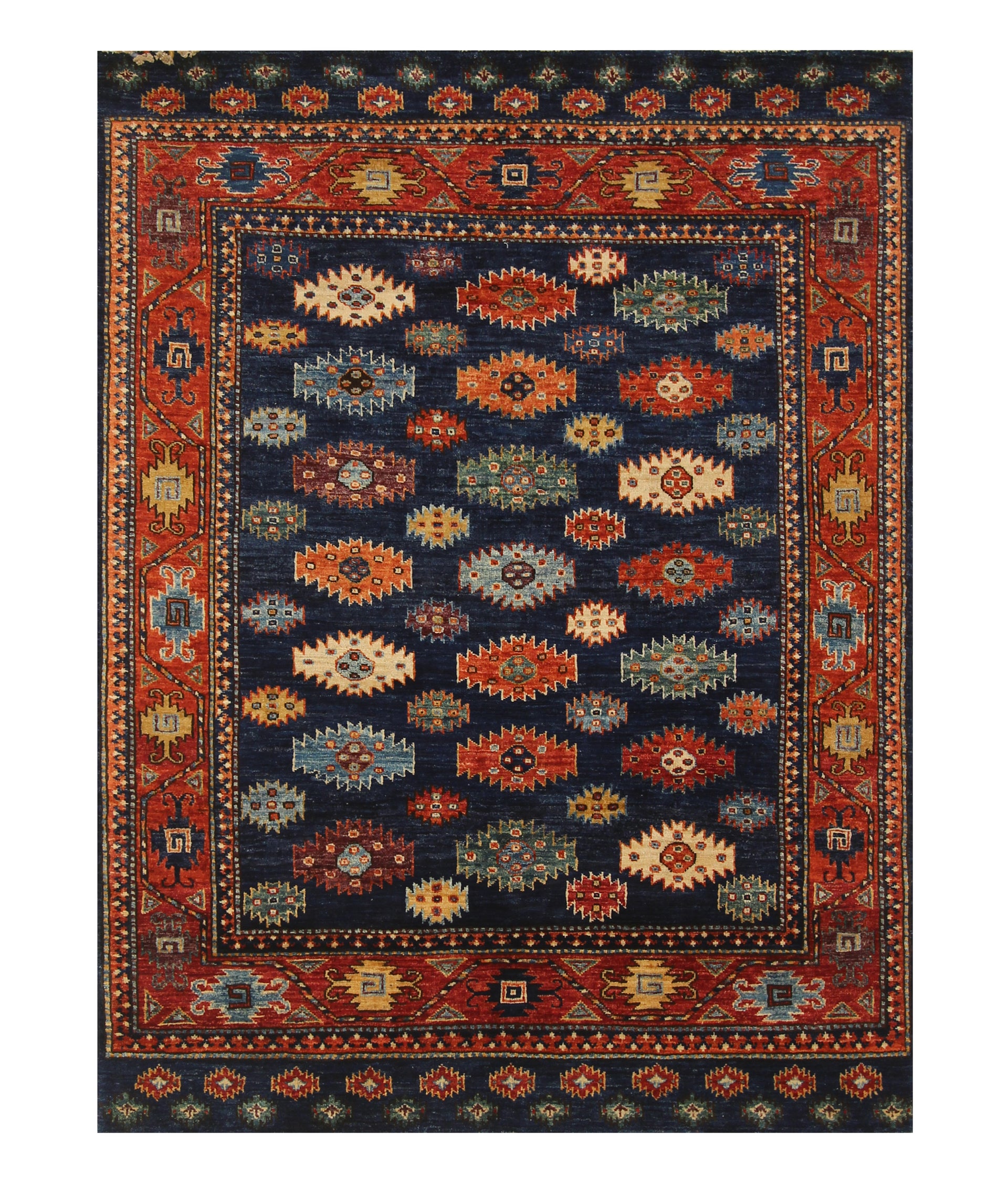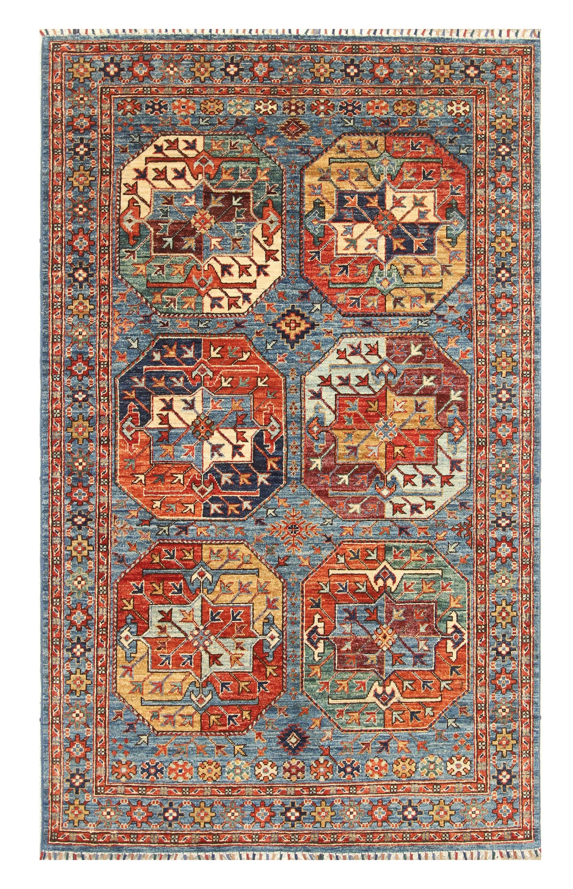 3'9"x6'8" Blue Serapi Afghan Hand knotted Rug