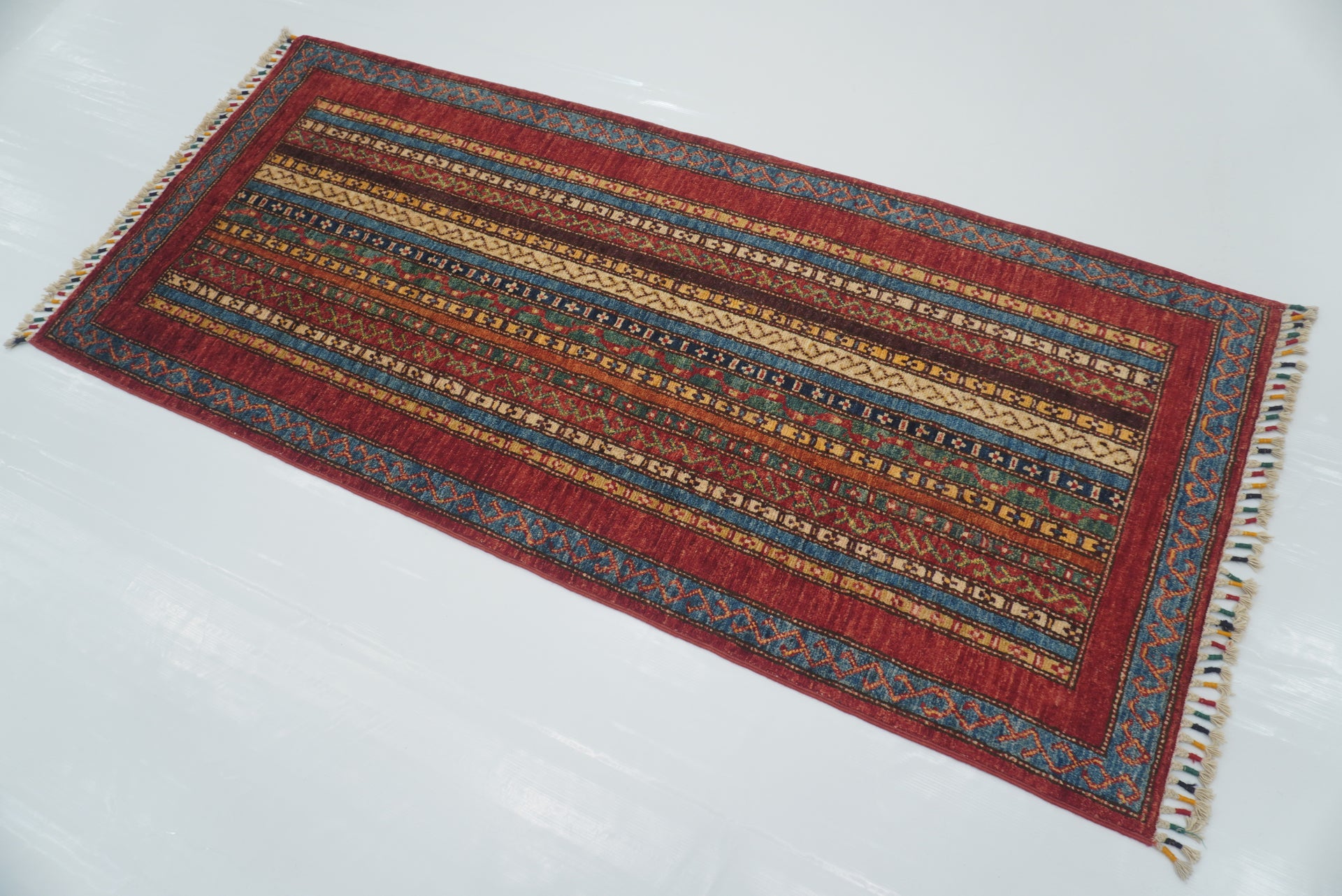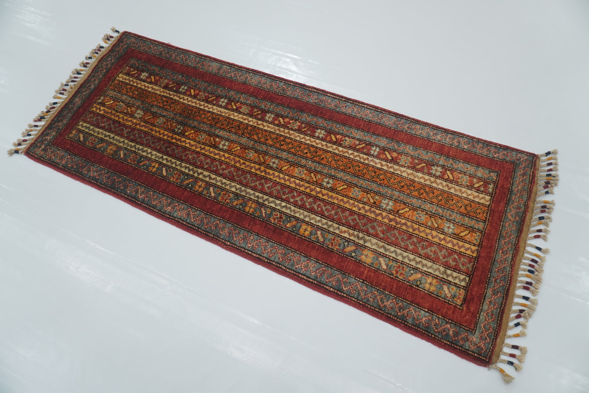 2x5 ft Red Turkish Hand knotted Runner Rug
