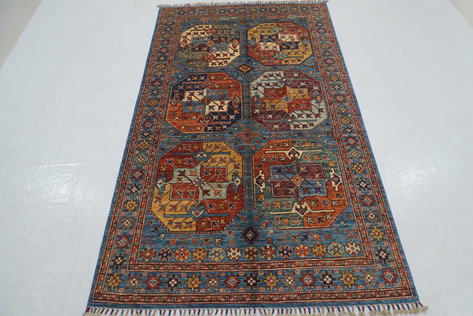 4x6 Navy Blue Yomut Ersari Afghan Hand knotted Geometric Rug
