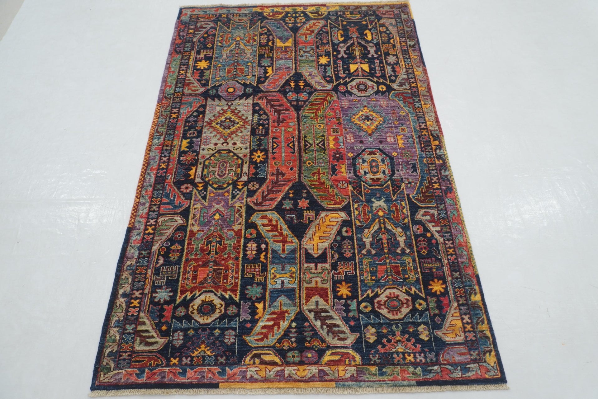 4x6 Navy Blue Gabbeh Afghan Hand knotted Rug