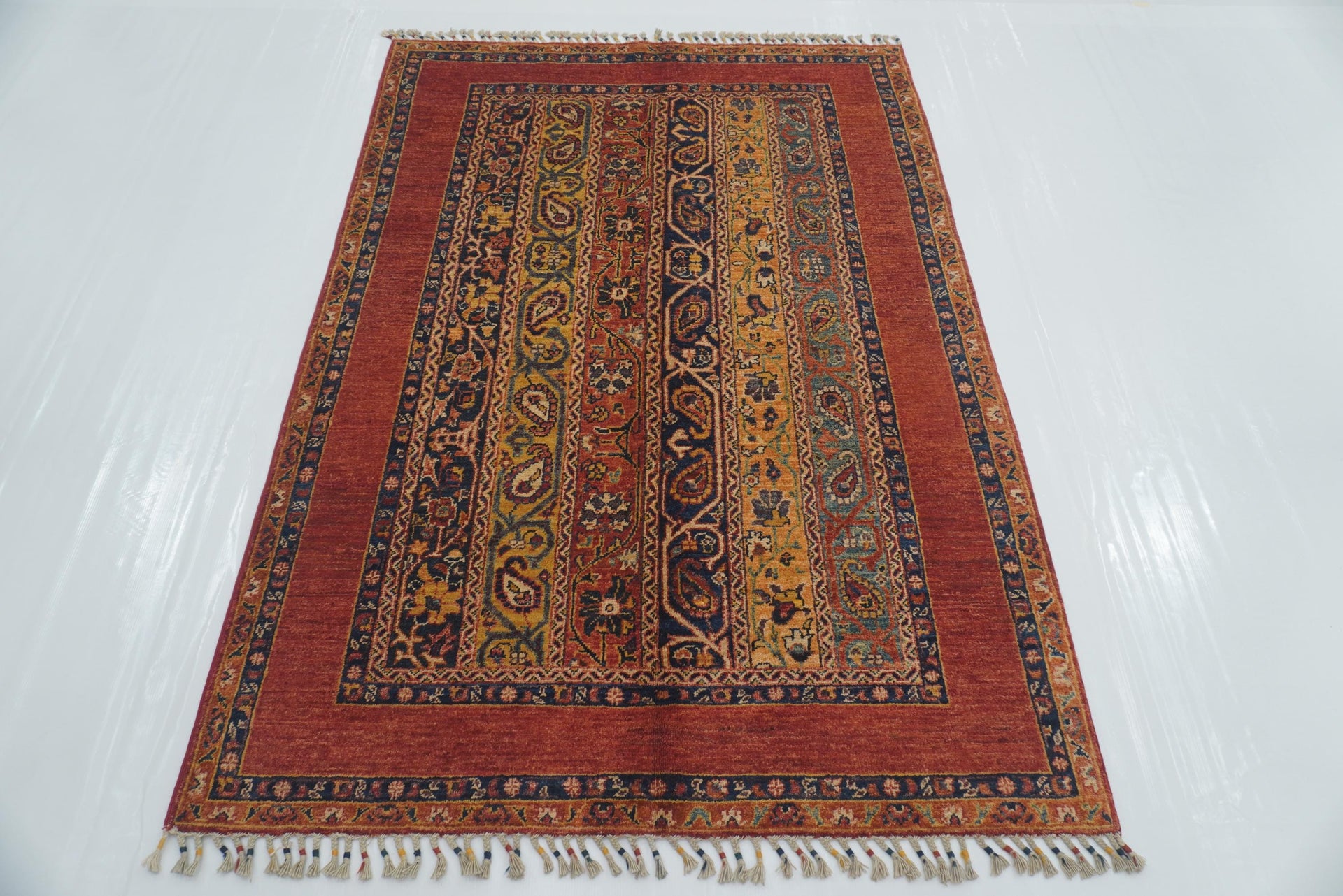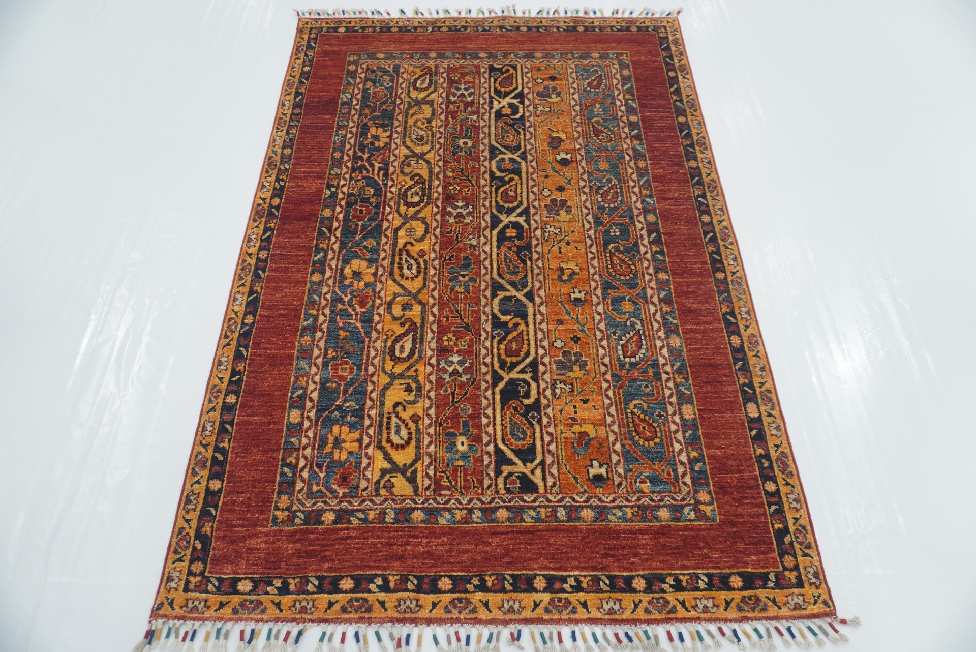 4x6 Red Turkish Shawl Pattern Handmade Rug