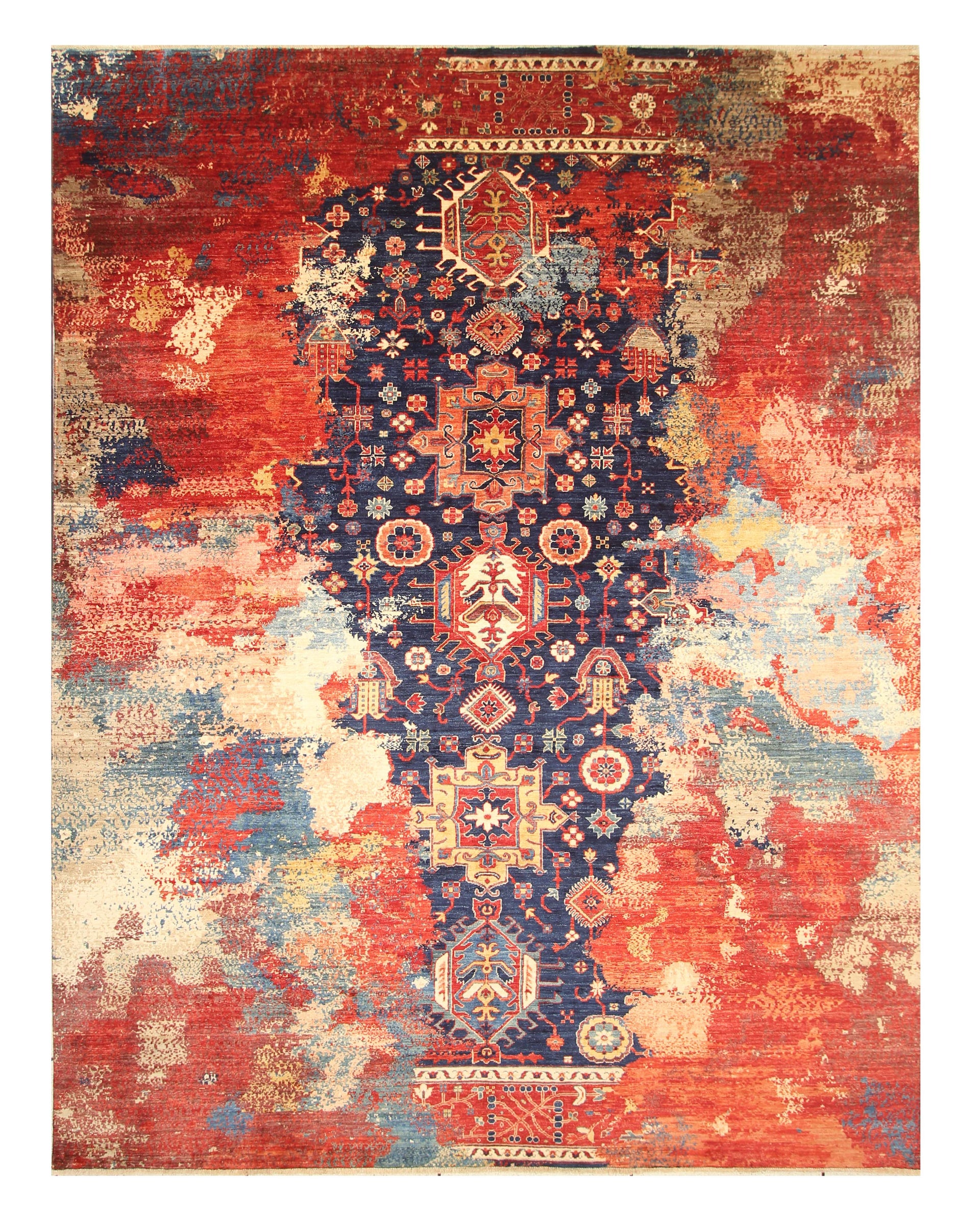 9x12 Blue Karaja Rug: Afghan Hand-Knotted Wool Modern Rug