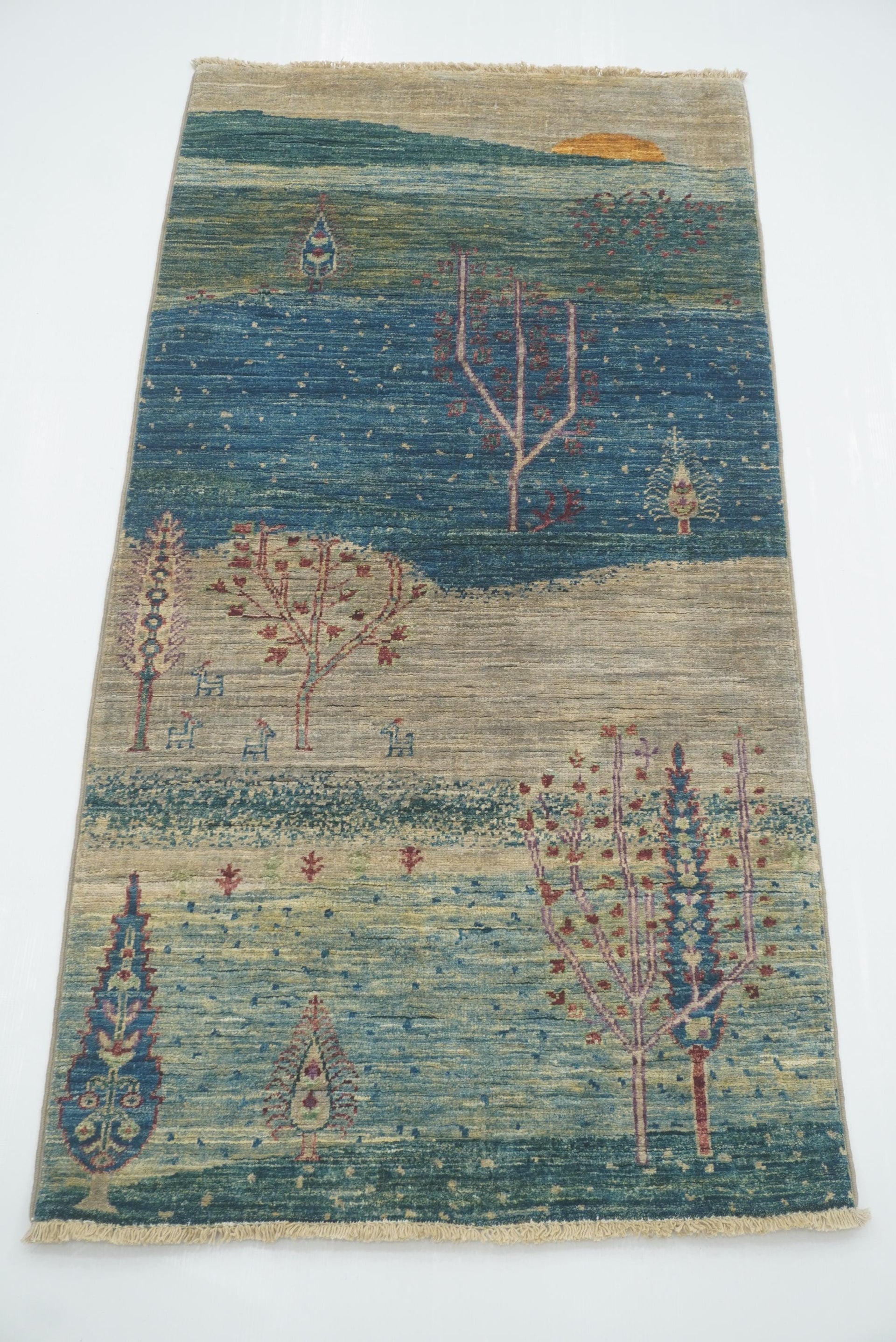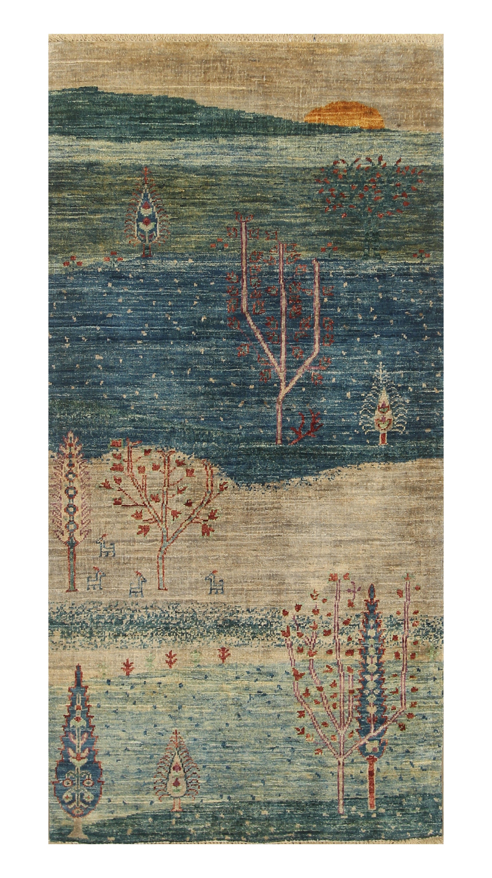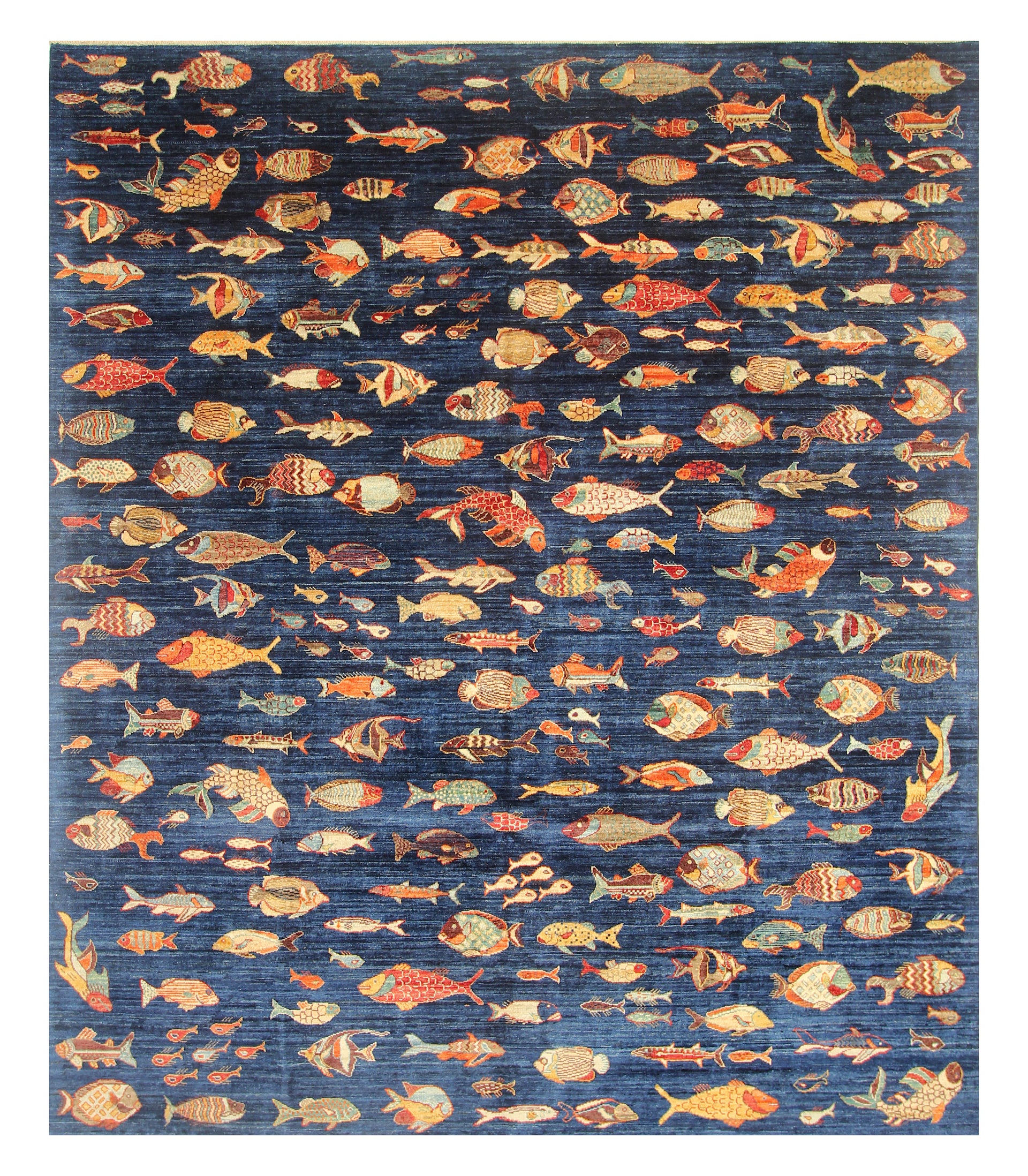 3'11"x11'6" Blue Fish Gabbeh Hand Knotted Afghan Runner Rug