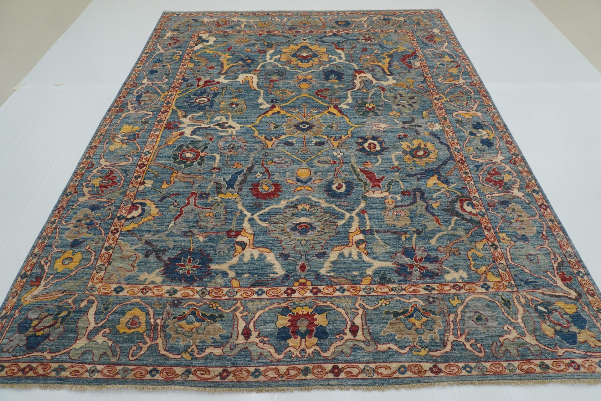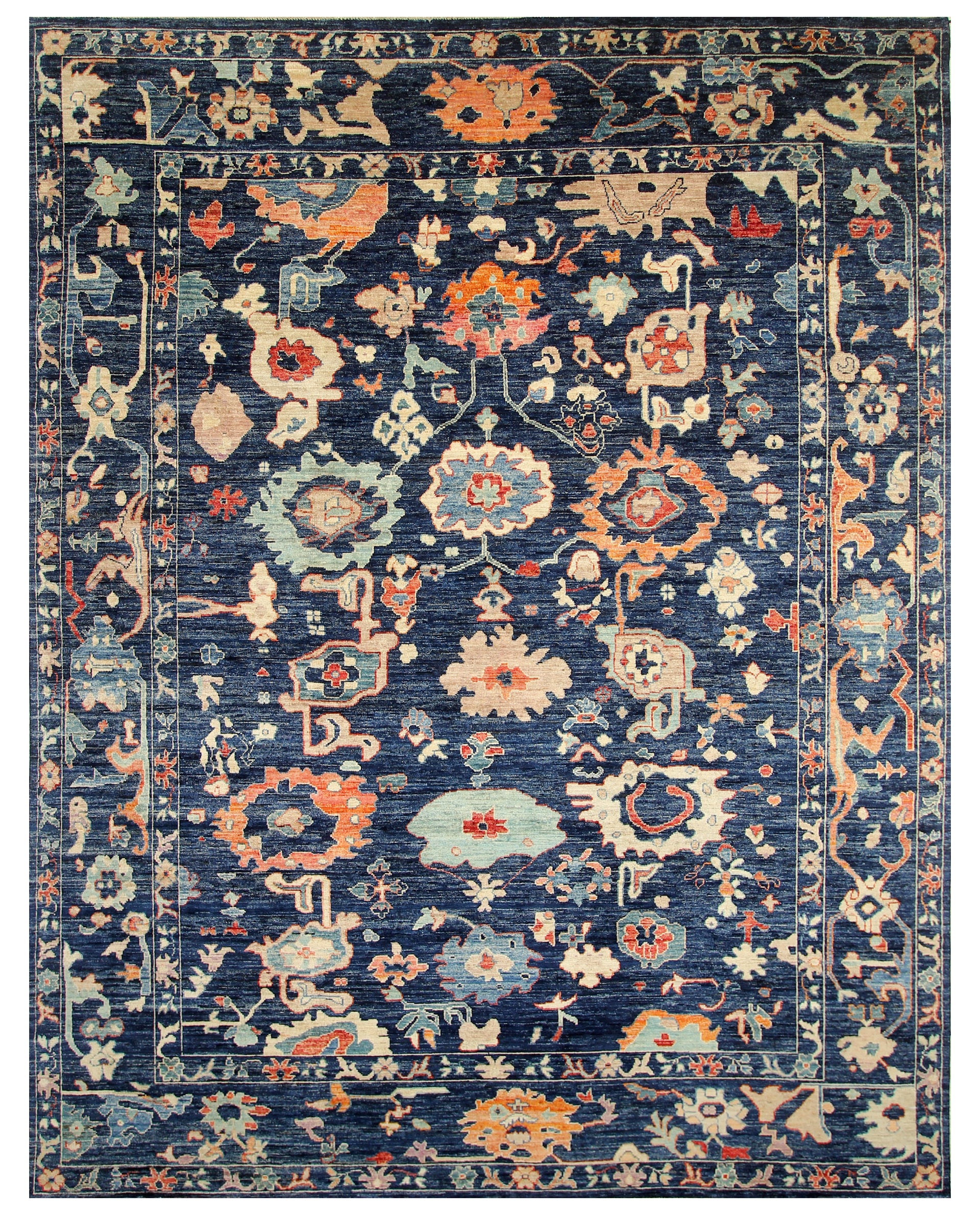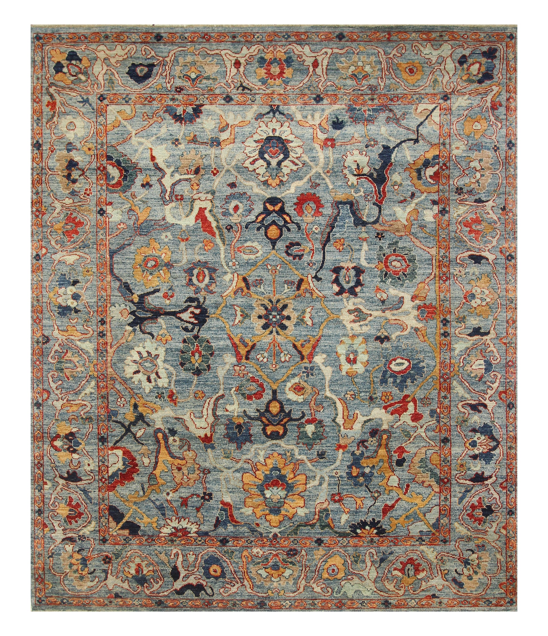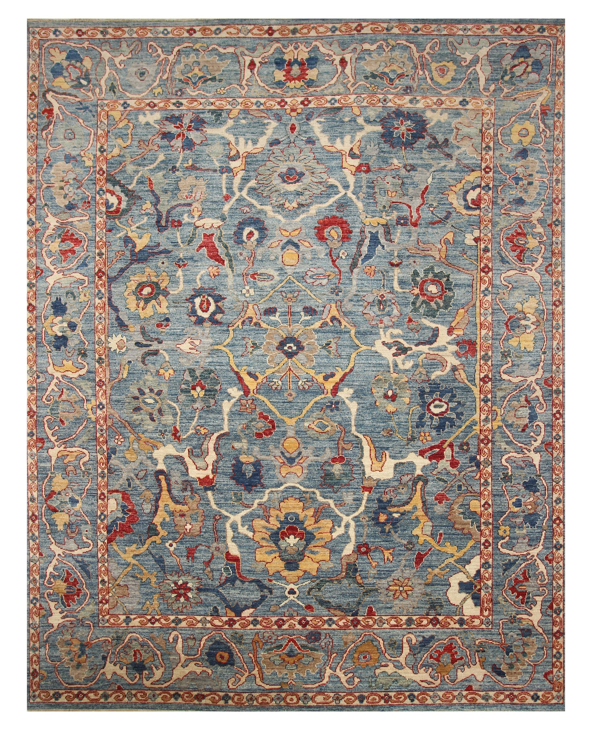 8'11"x12' Blue Mamluk Hand Knotted Turkish Rug