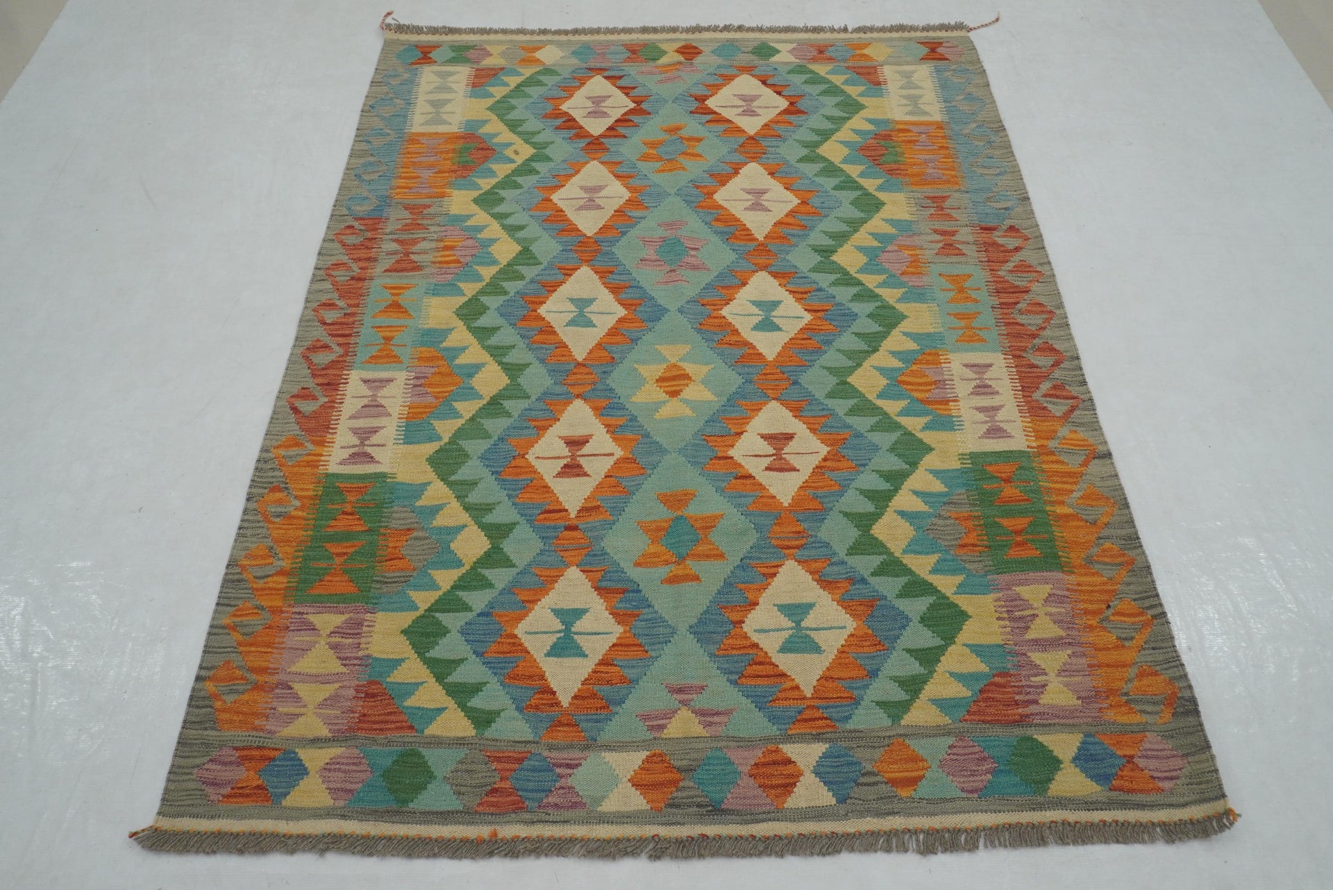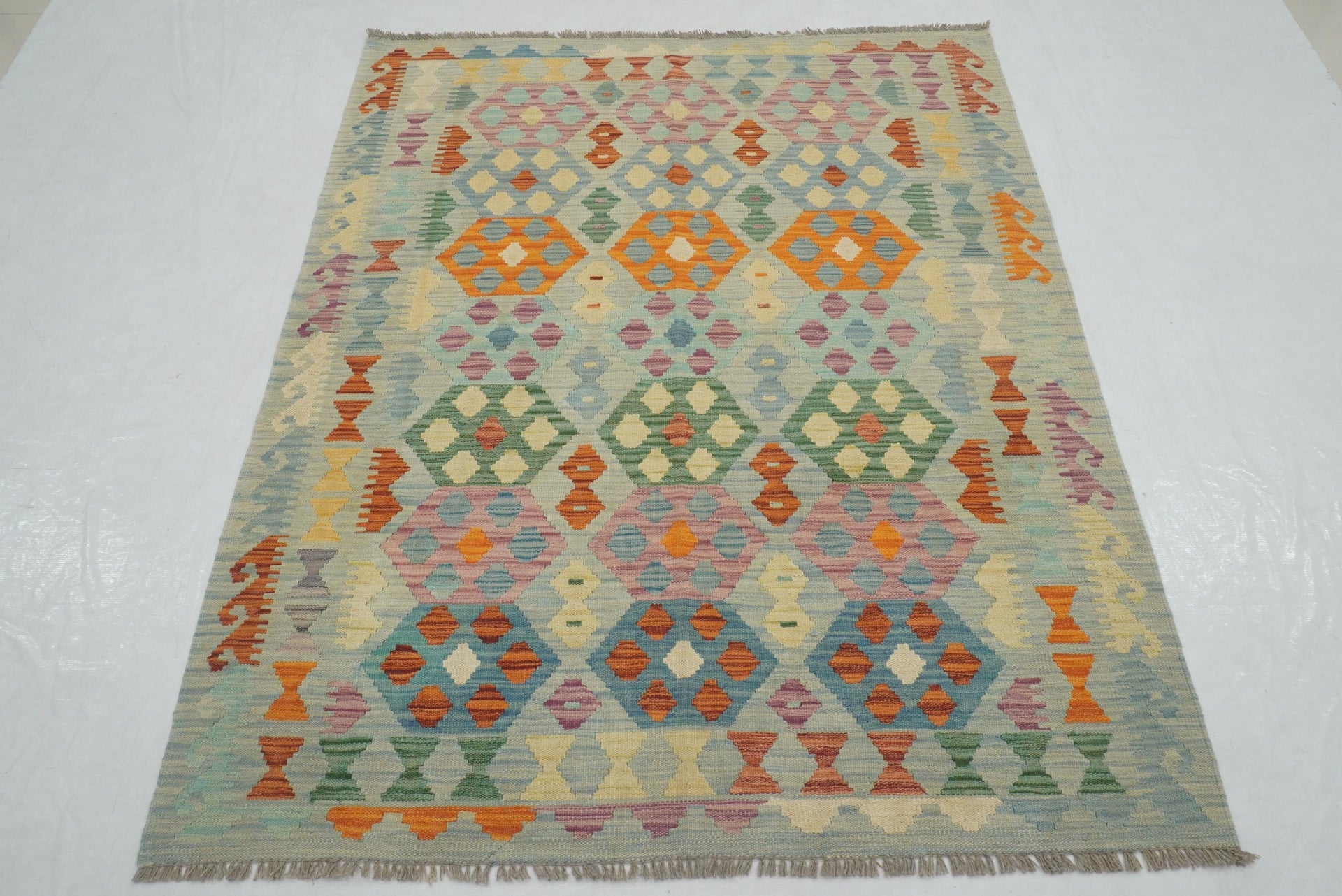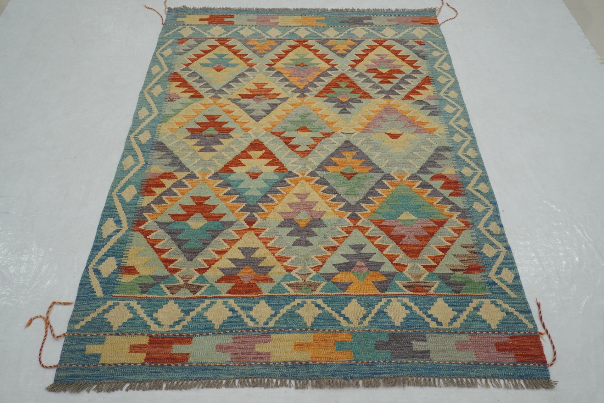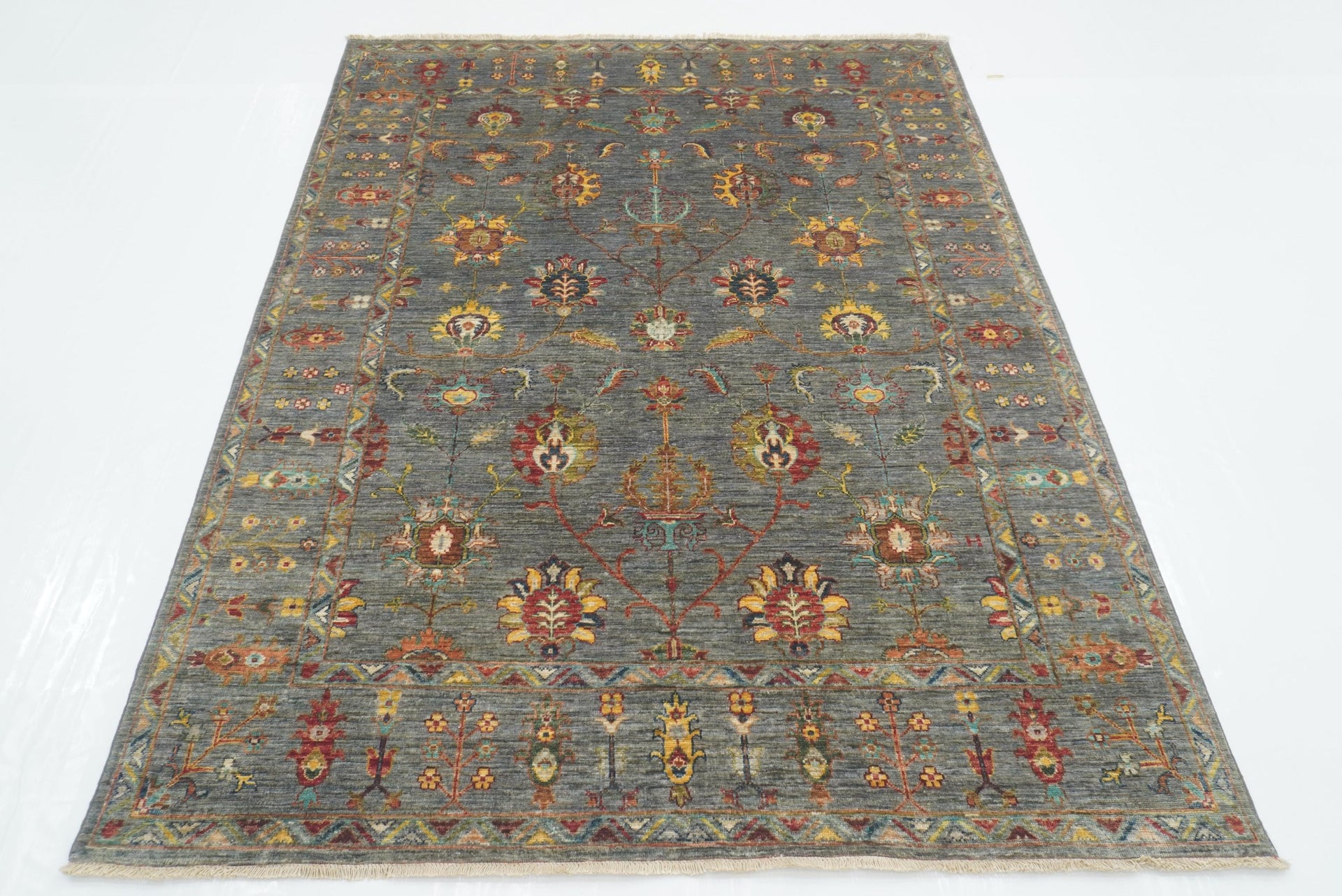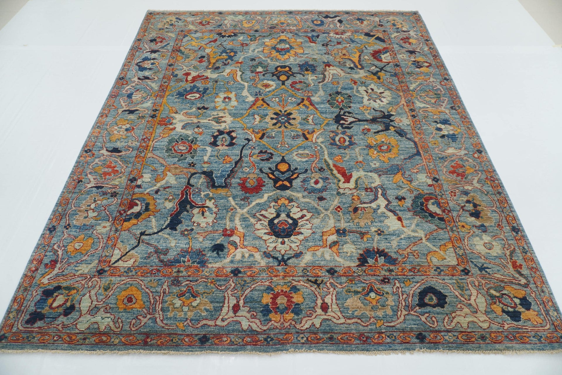6x8 Turquoise Blue Afghan Hand-Knotted Wool Floral Rug