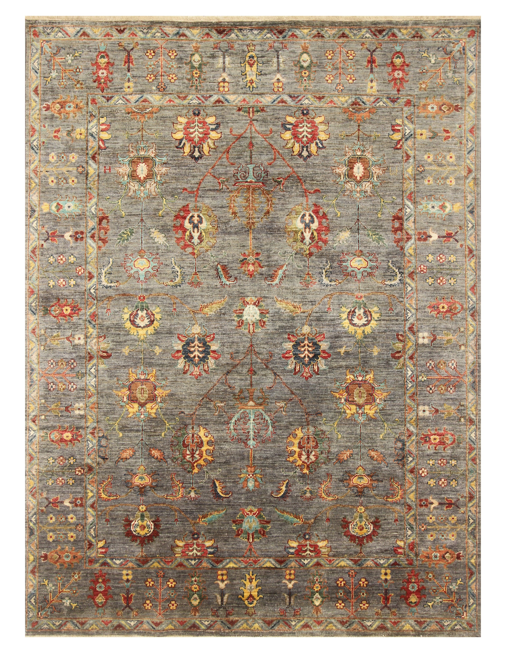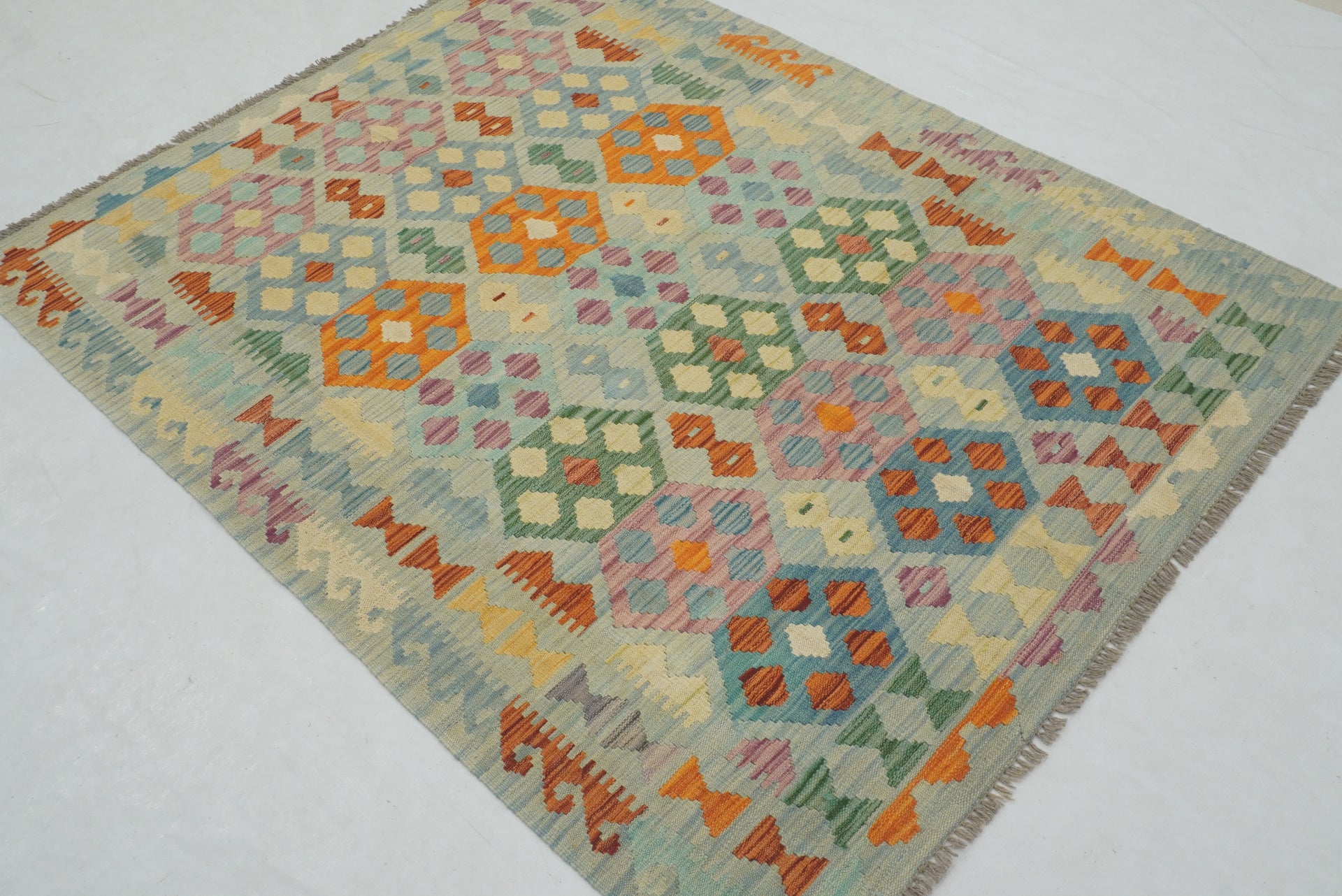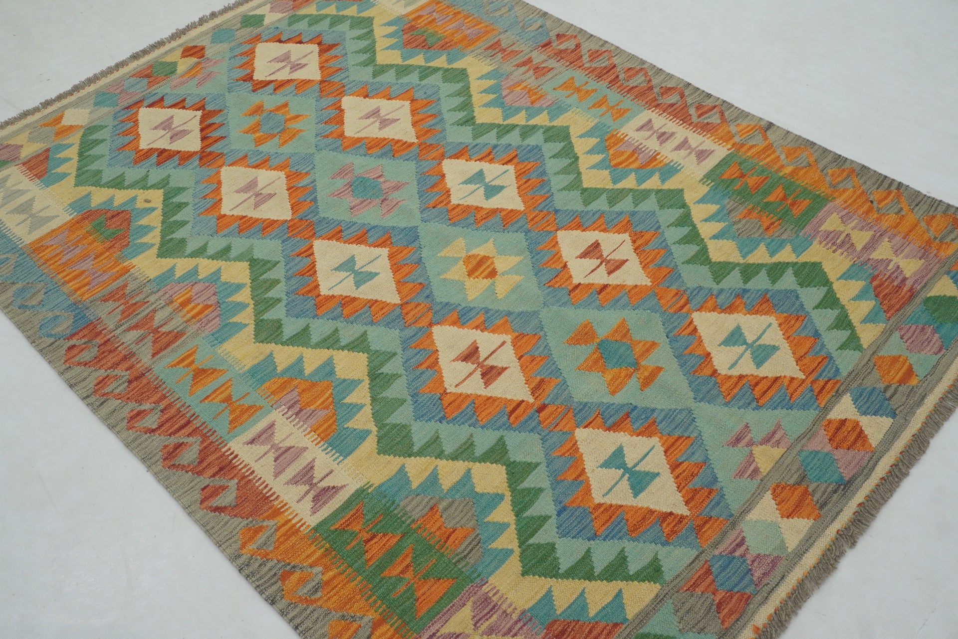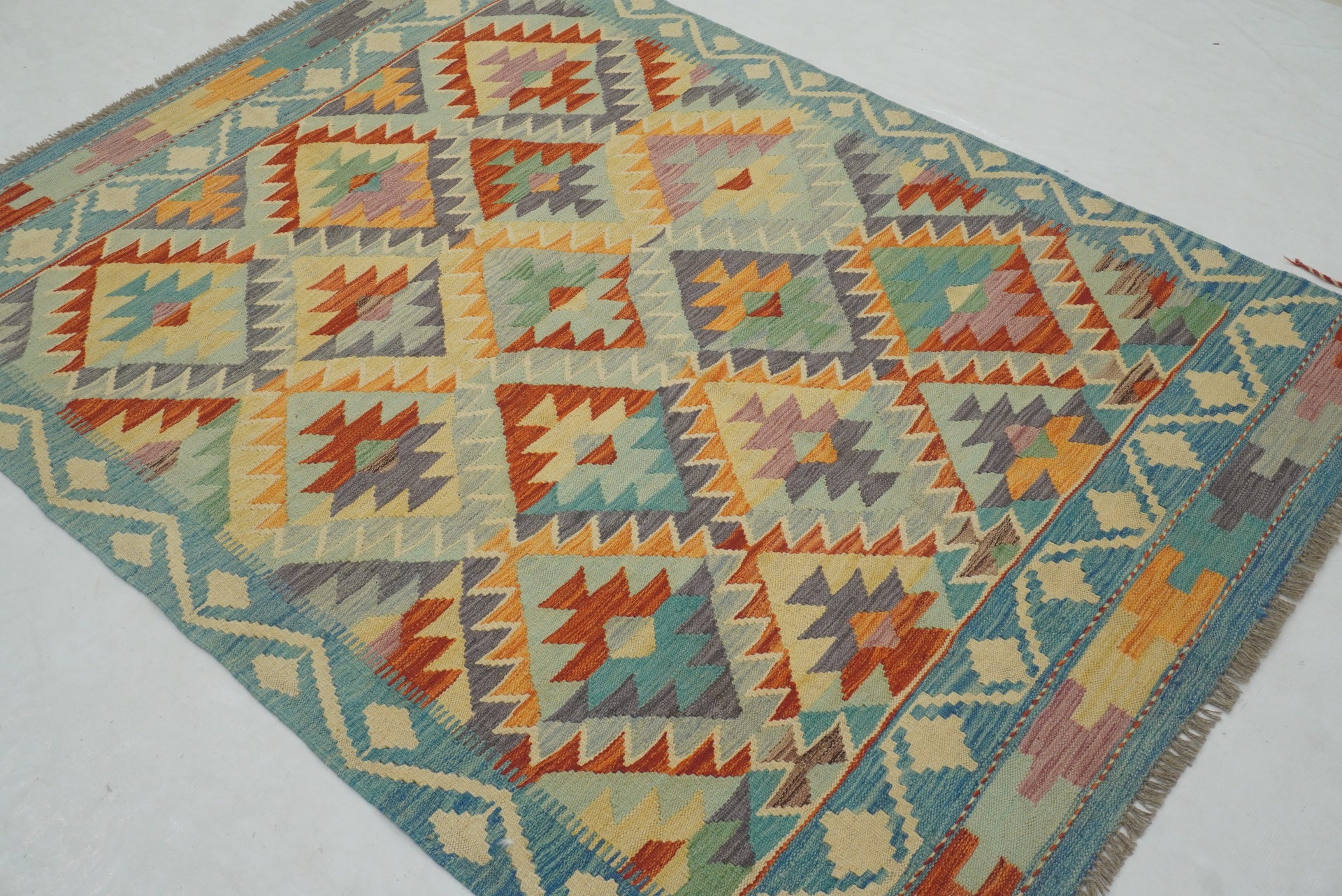 6x8 Turquoise Blue Afghan Hand-Knotted Wool Floral Rug