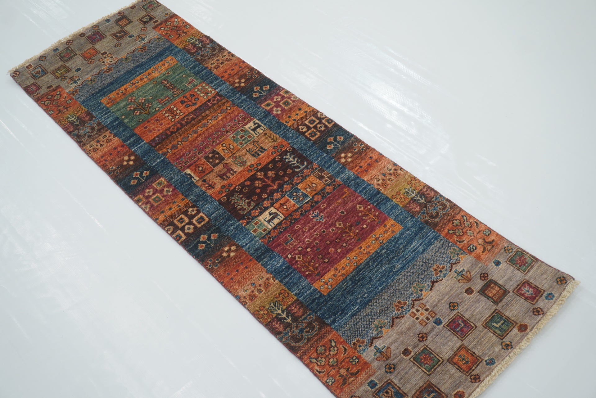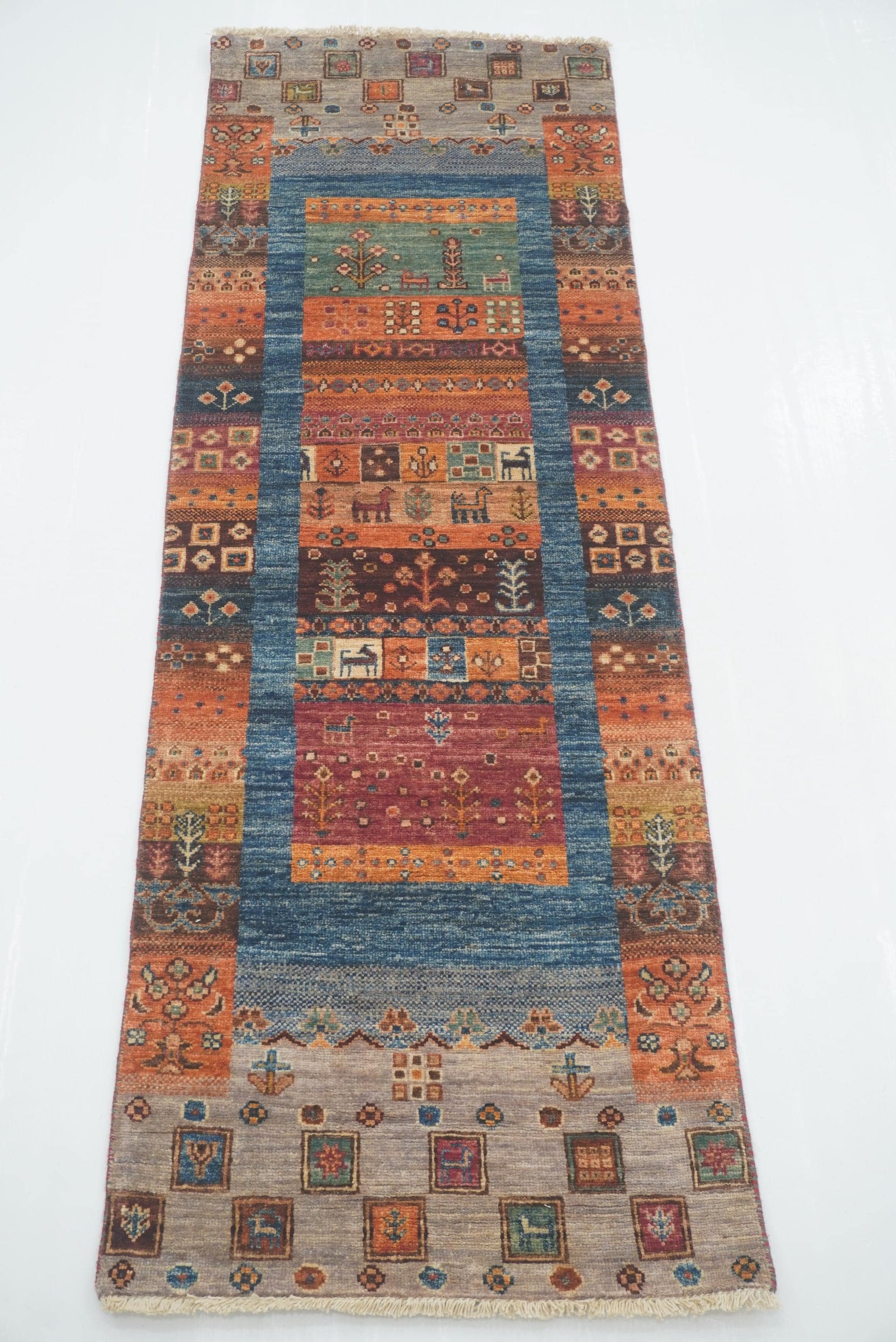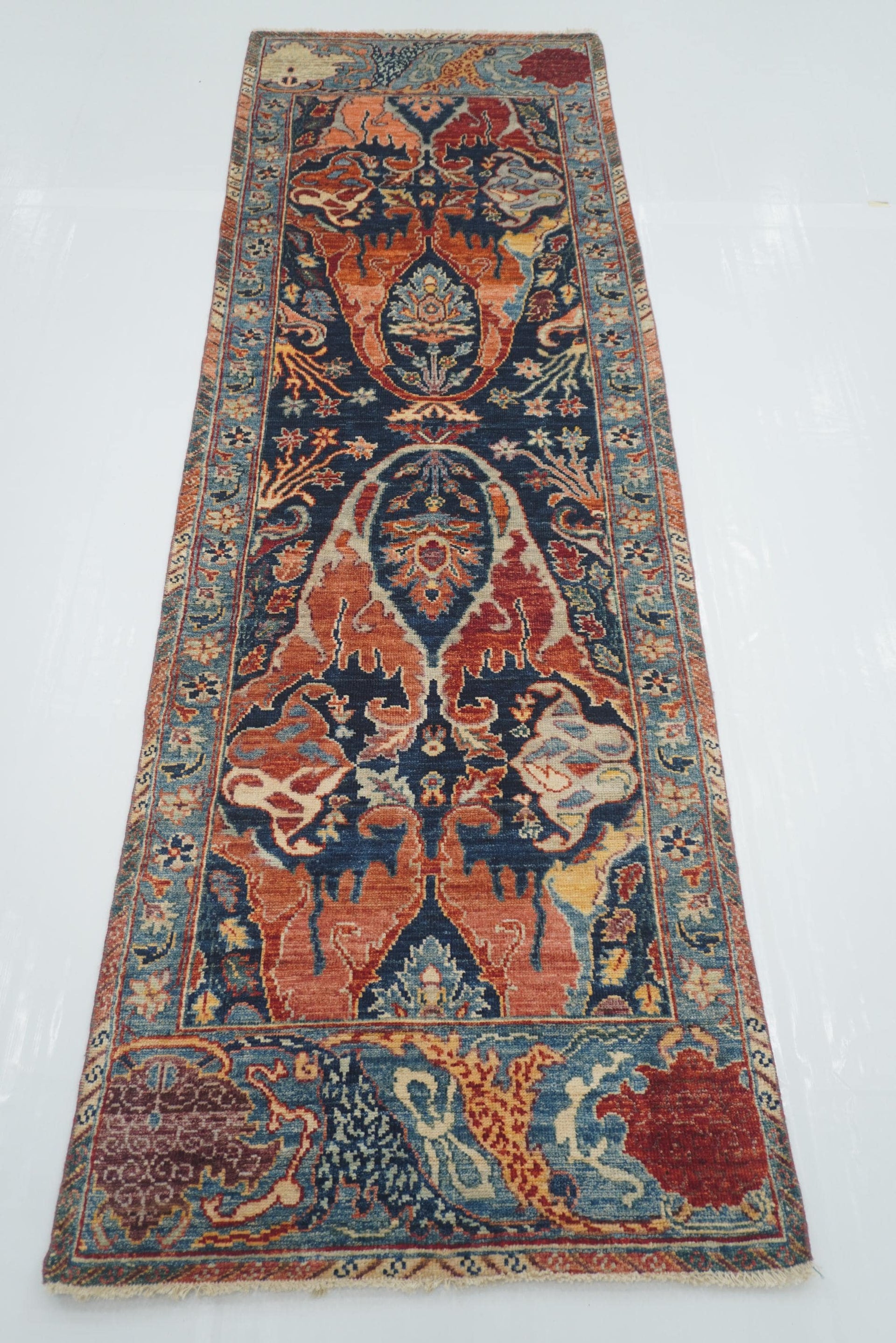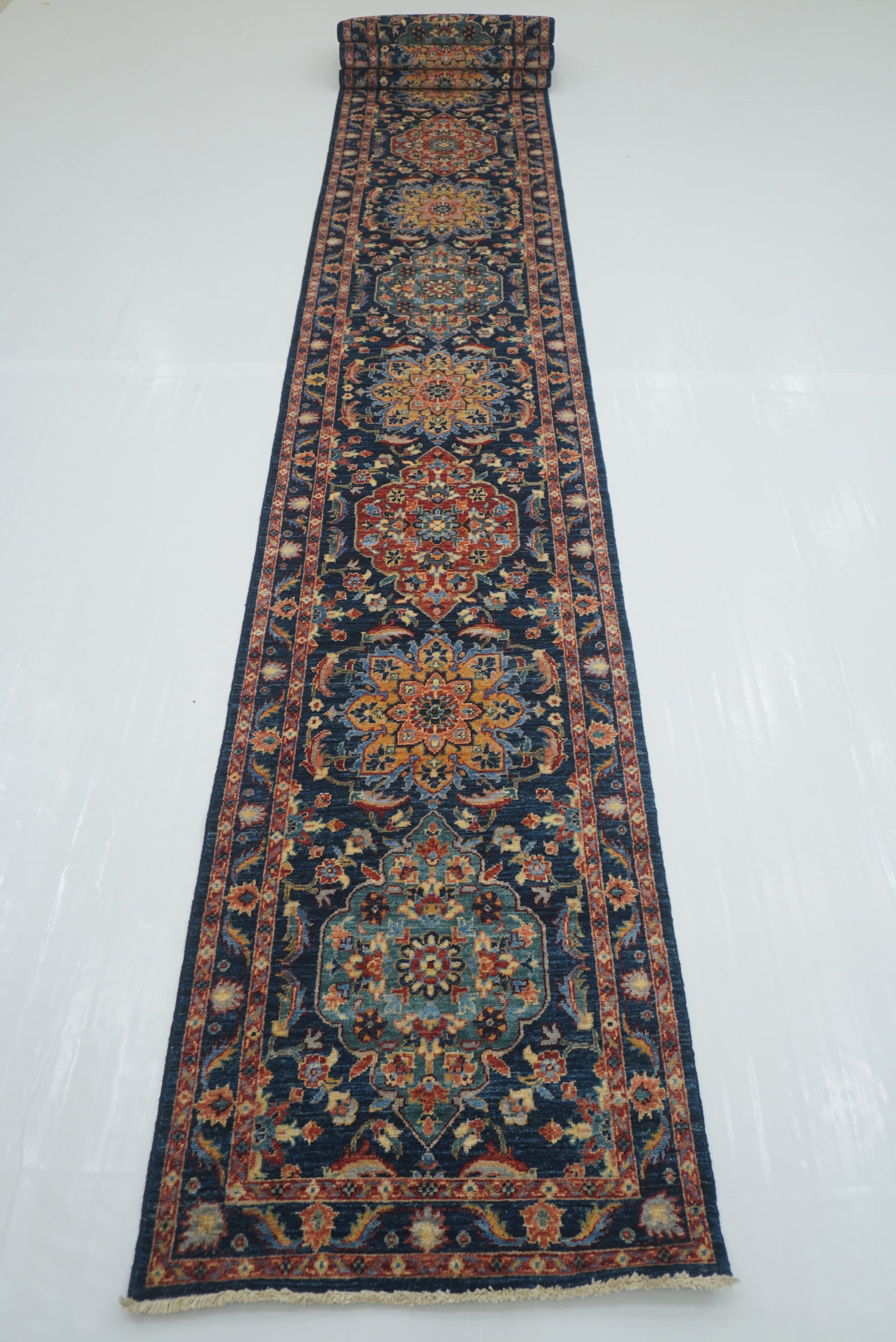 2'8"x19'5" Blue Serapi Hand Knotted Afghan Runner Rug