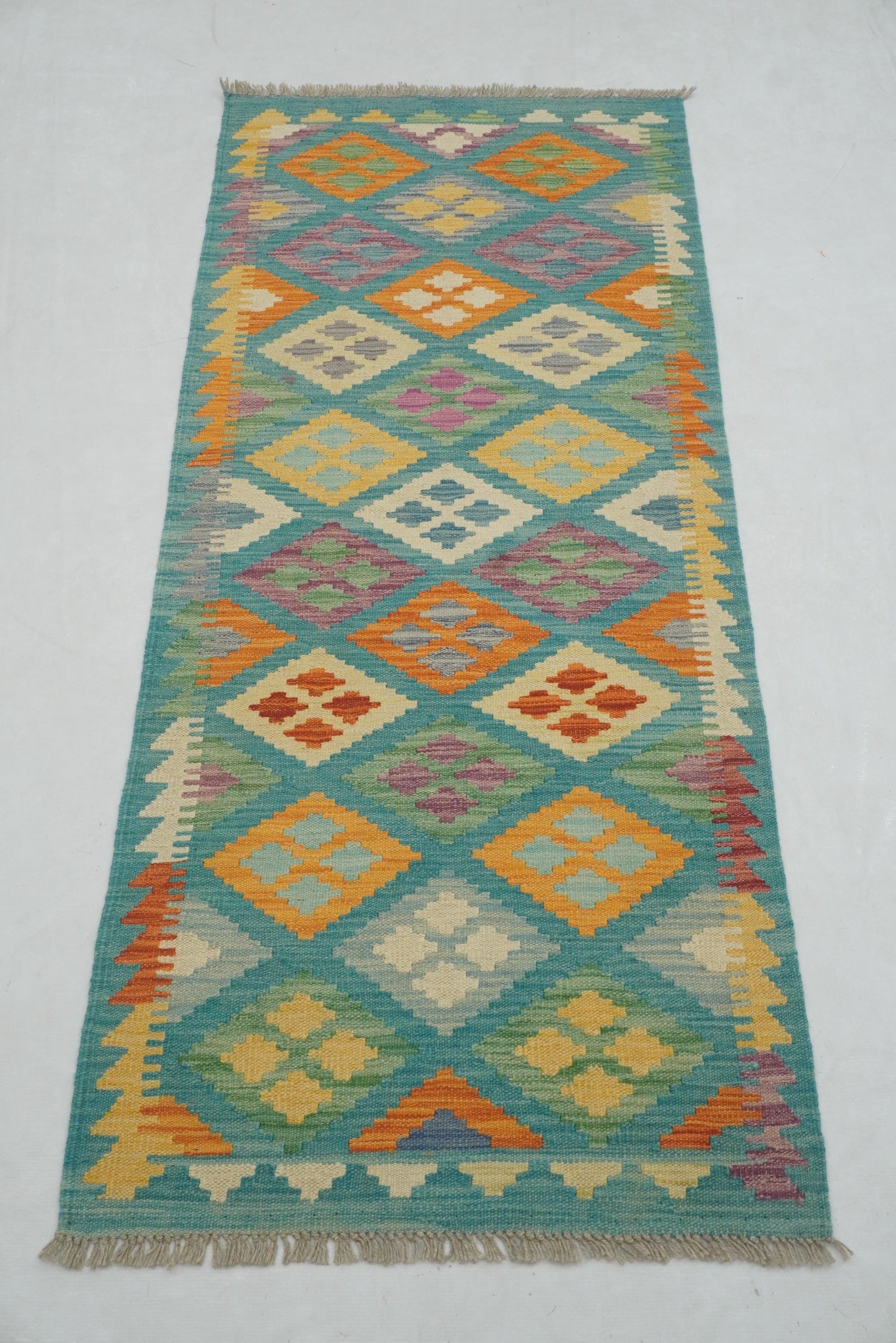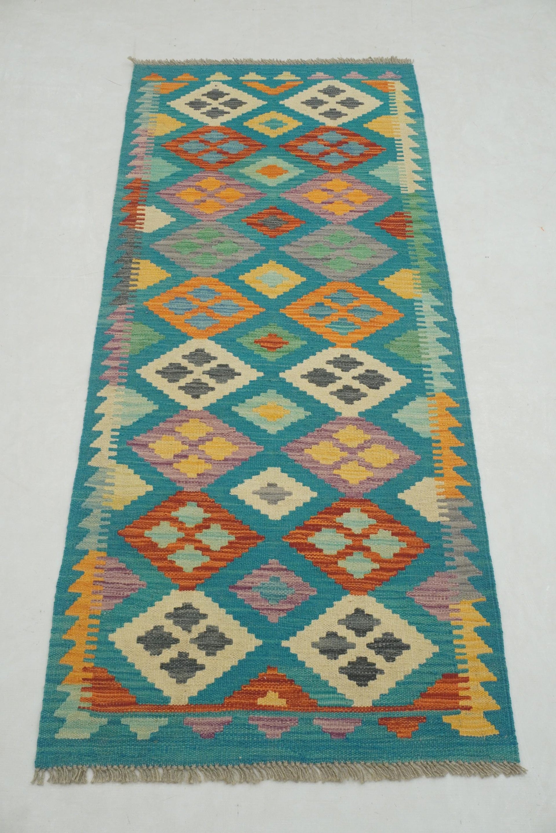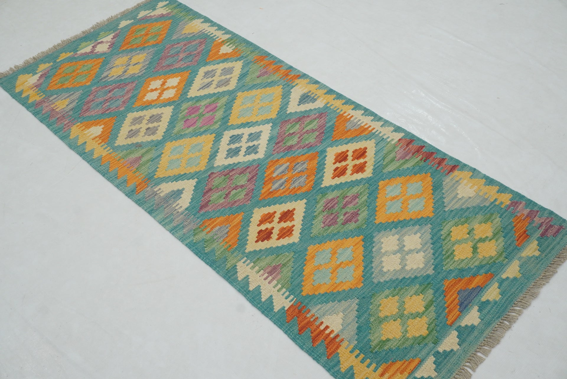 29 ft Blue Green Mamluk Afghan Hand knotted Long Runner Rug