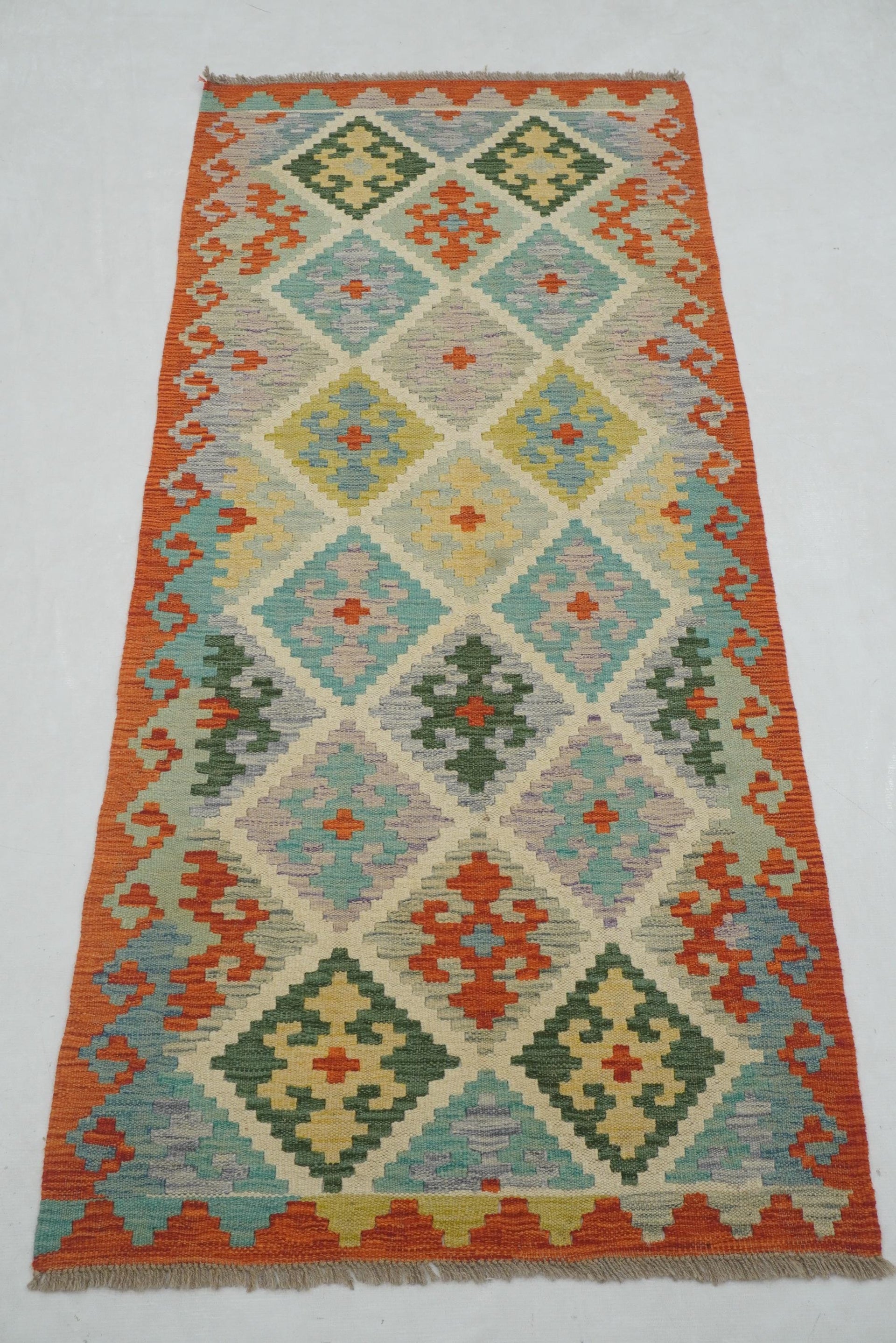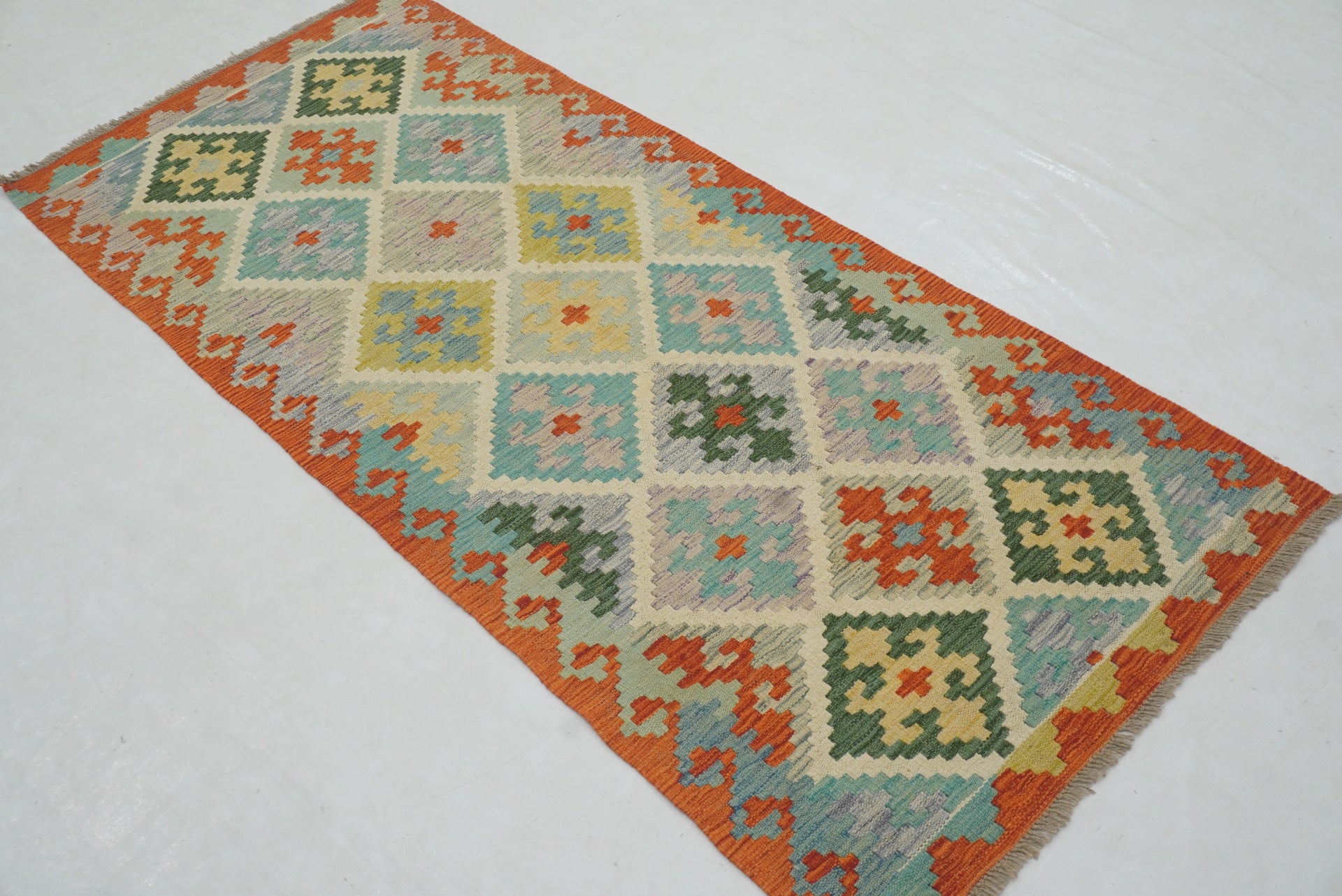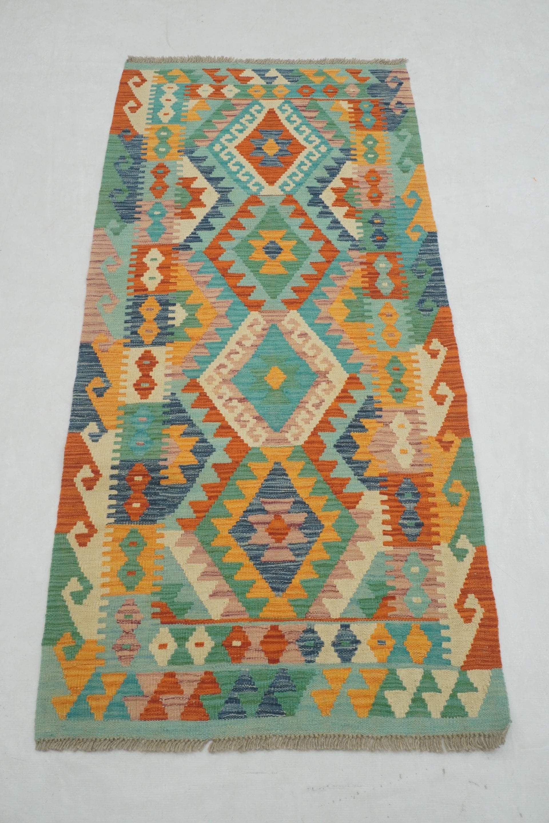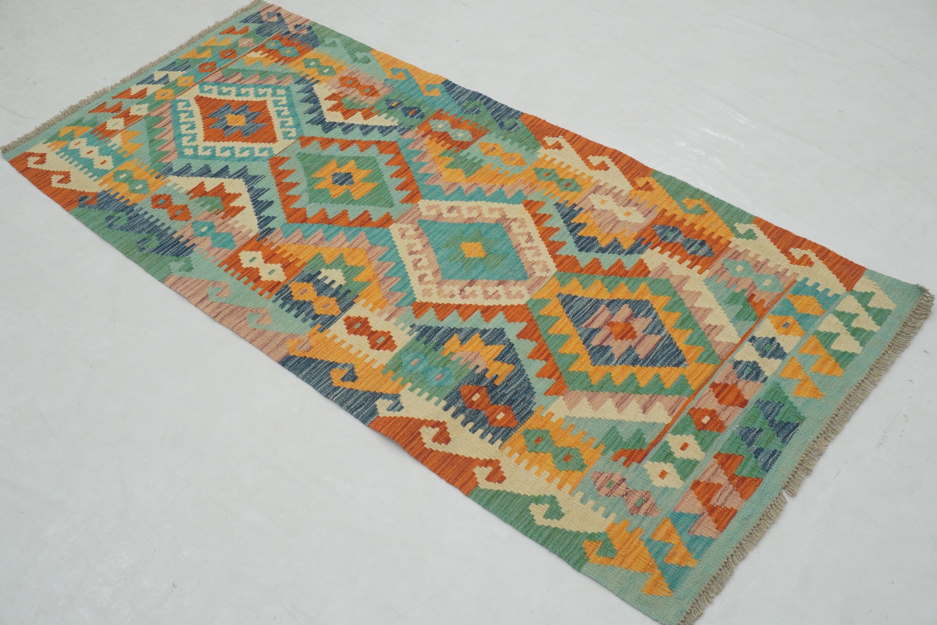 29 ft Blue Green Mamluk Afghan Hand knotted Long Runner Rug
