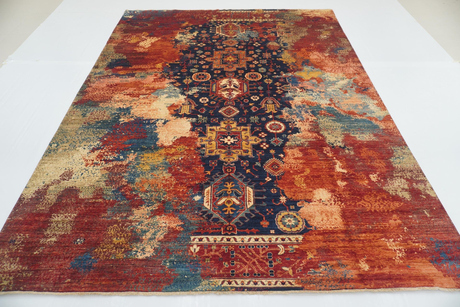 8x10 Navy Blue Afghan Hand-Knotted Modern Rug