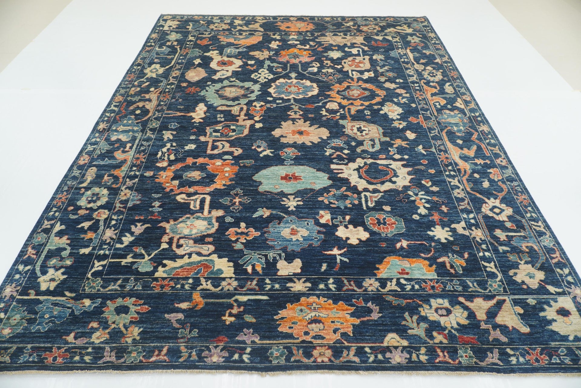 10x14 Navy Blue Heriz Hand-Knotted Afghan Rug
