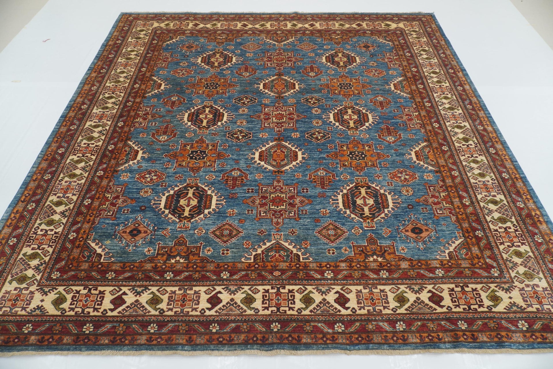 10x14 Blue Pazyryk Afghan Hand-Knotted Rug