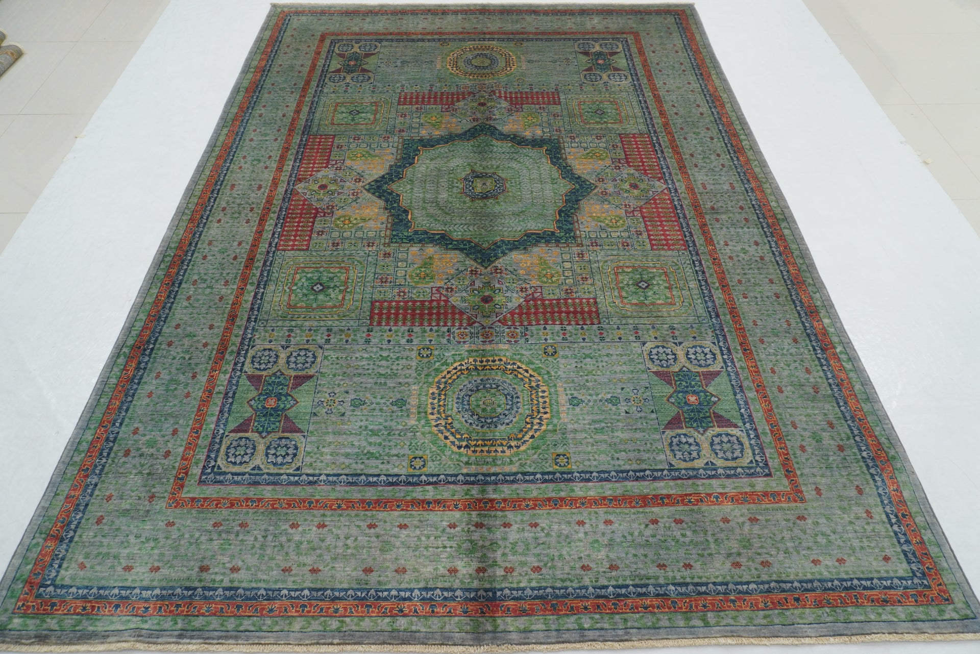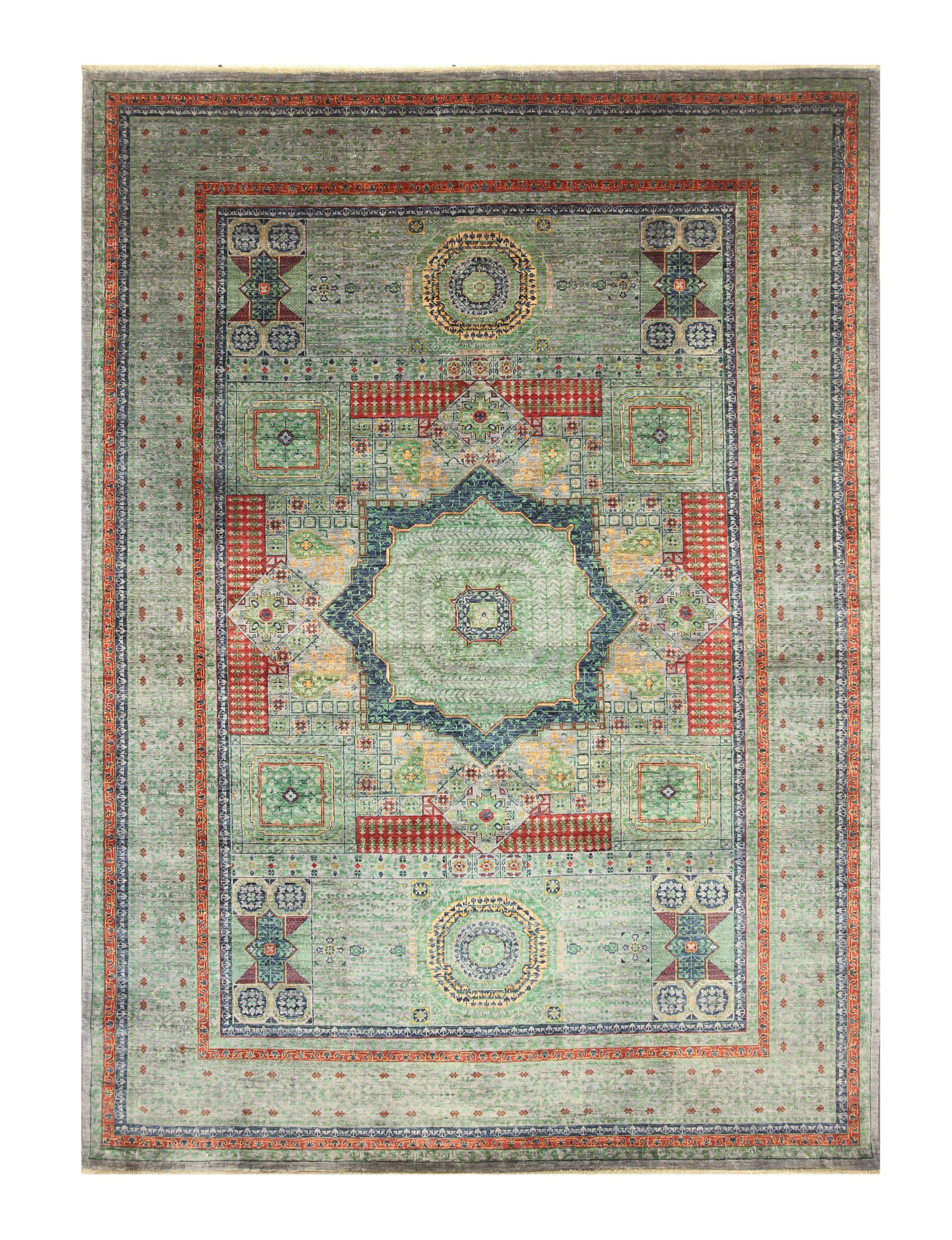 10x14 Green Mamluk Hand Knotted Turkish Medallion Rug