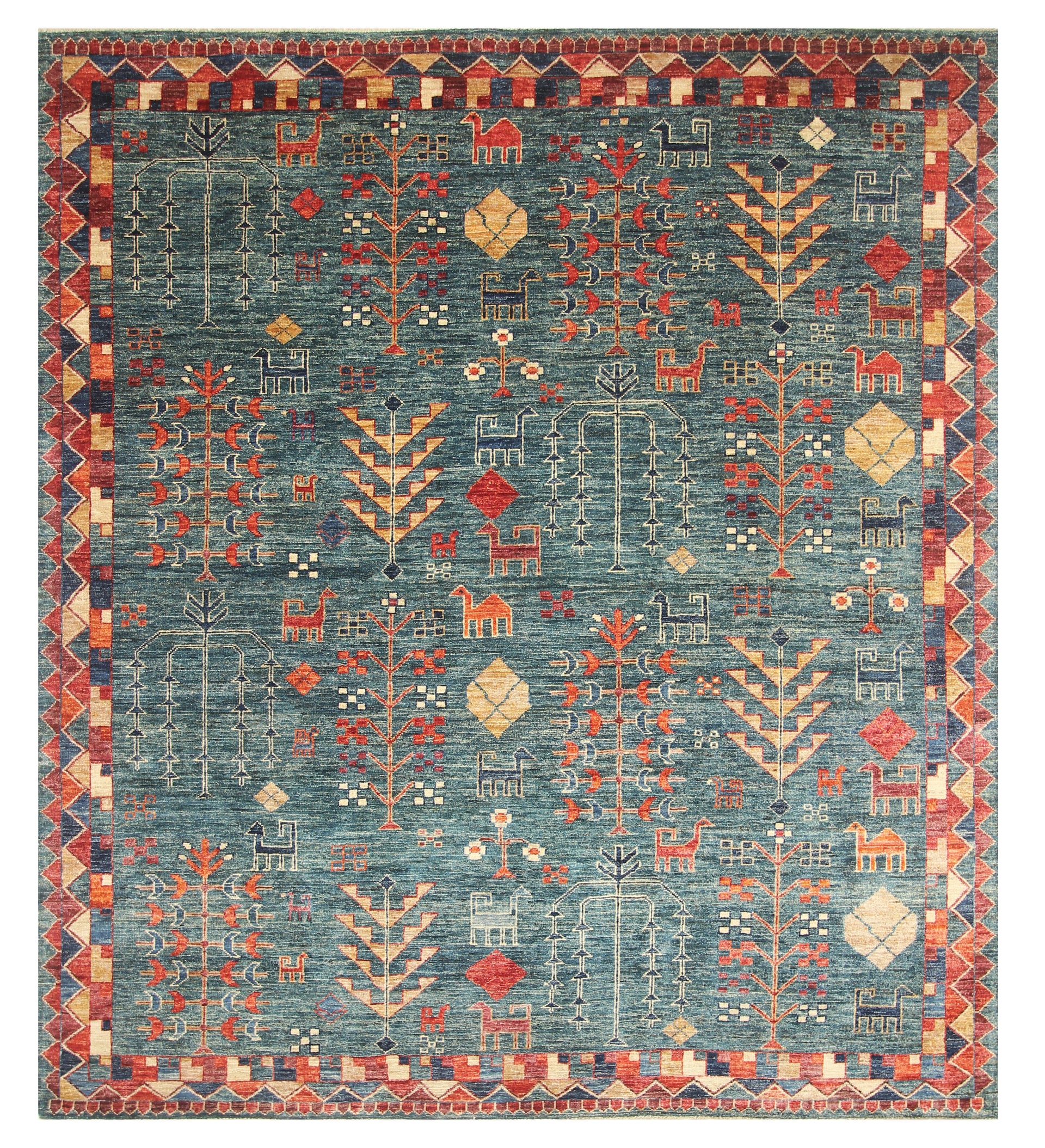 10x13 Blue Green Gabbeh Afghan Kashkuli Hand knotted Rug