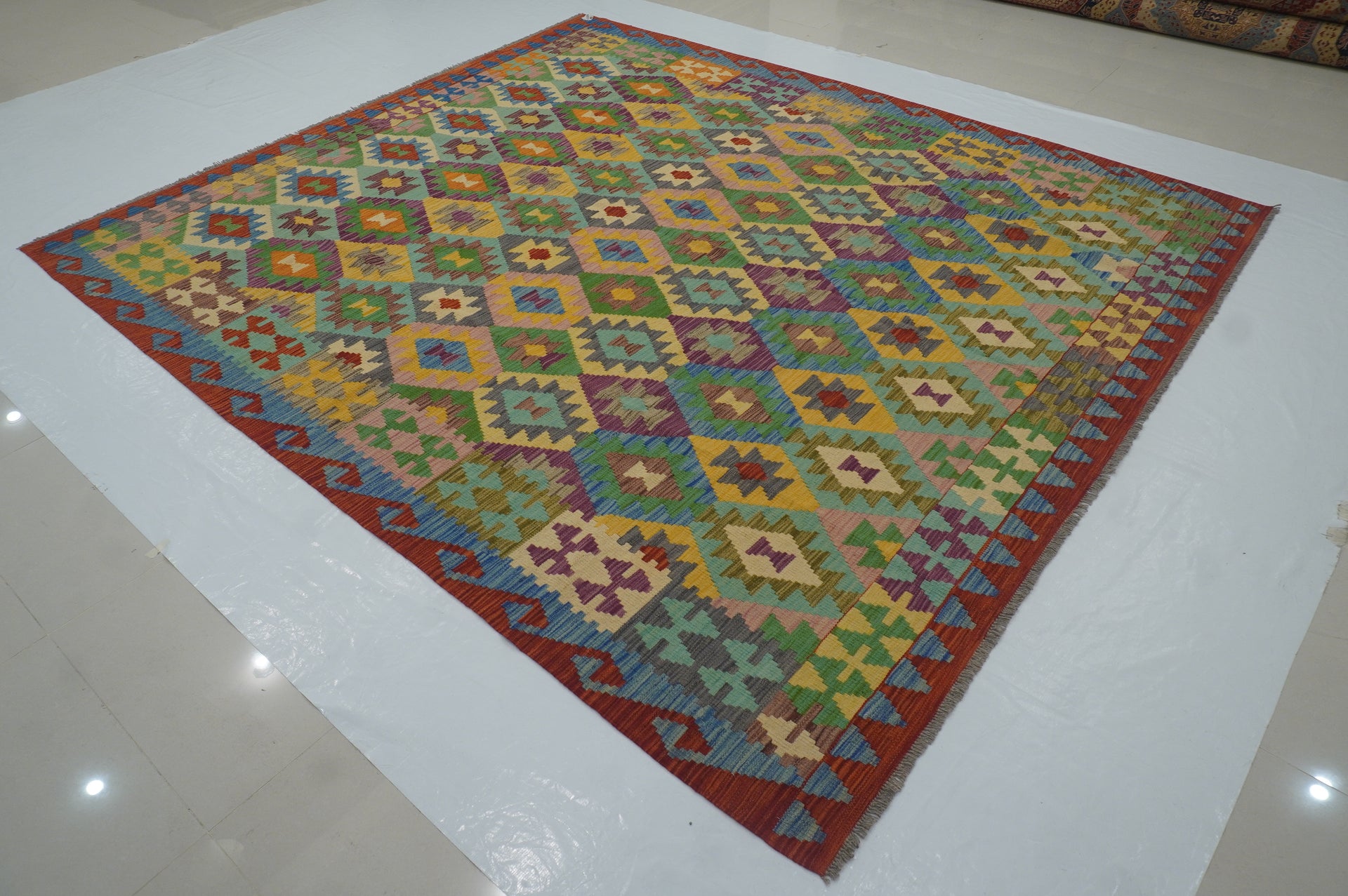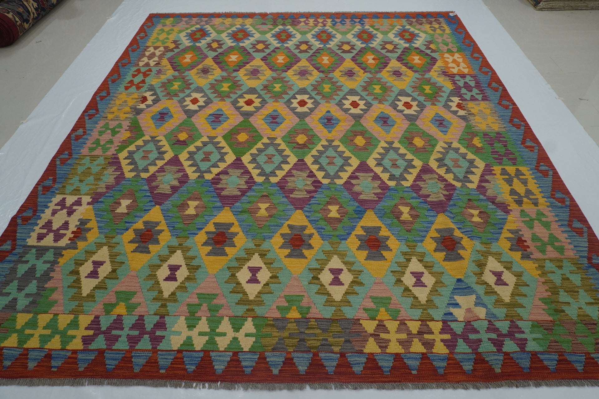 5x7 Green Afghan Handmade Geometric Reversible Kilim Rug