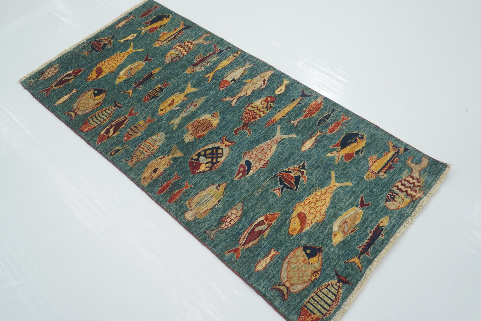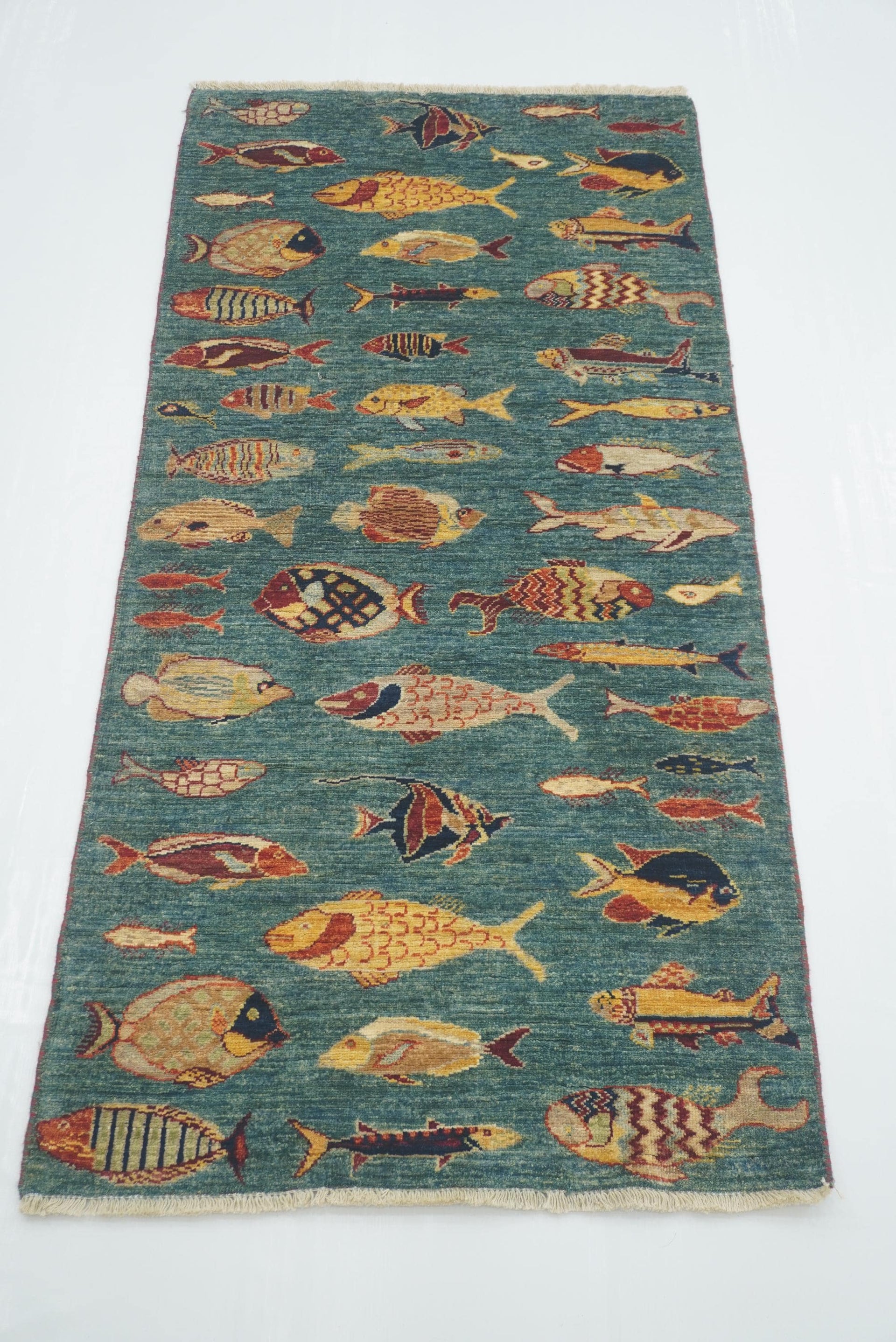 29 ft Blue Green Mamluk Afghan Hand knotted Long Runner Rug