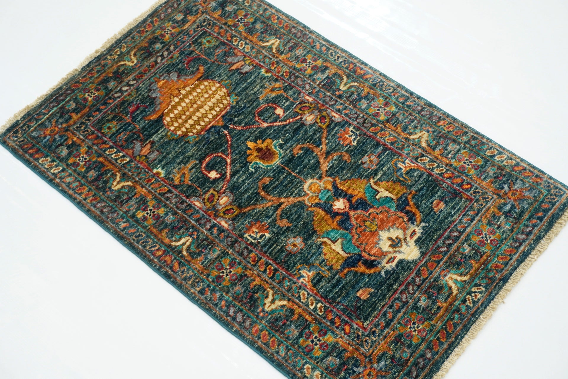 3x5 Green Mamluk Turkish Hand knotted Rug