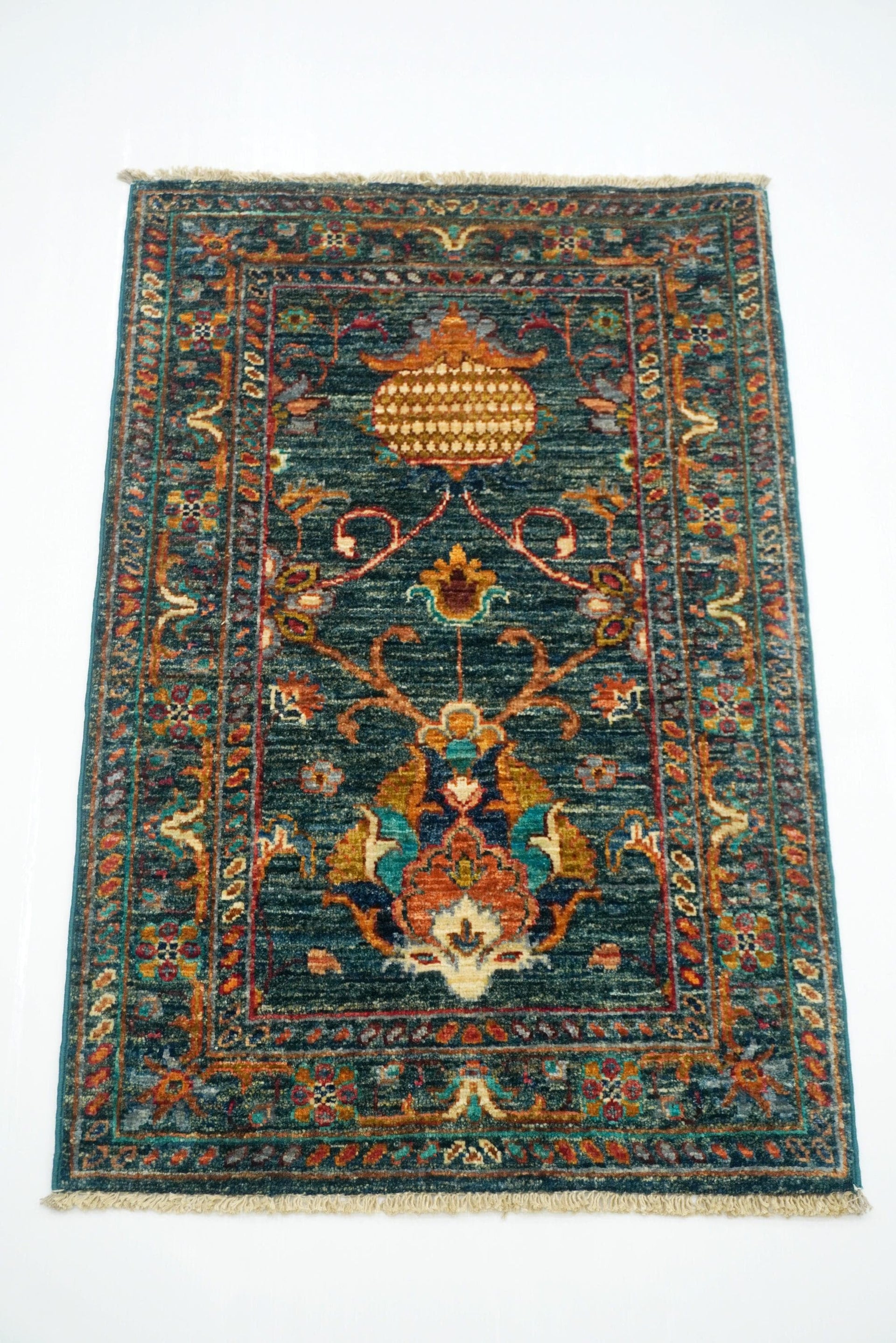 2x3 Green Waziri Afghan Hand knotted Rug