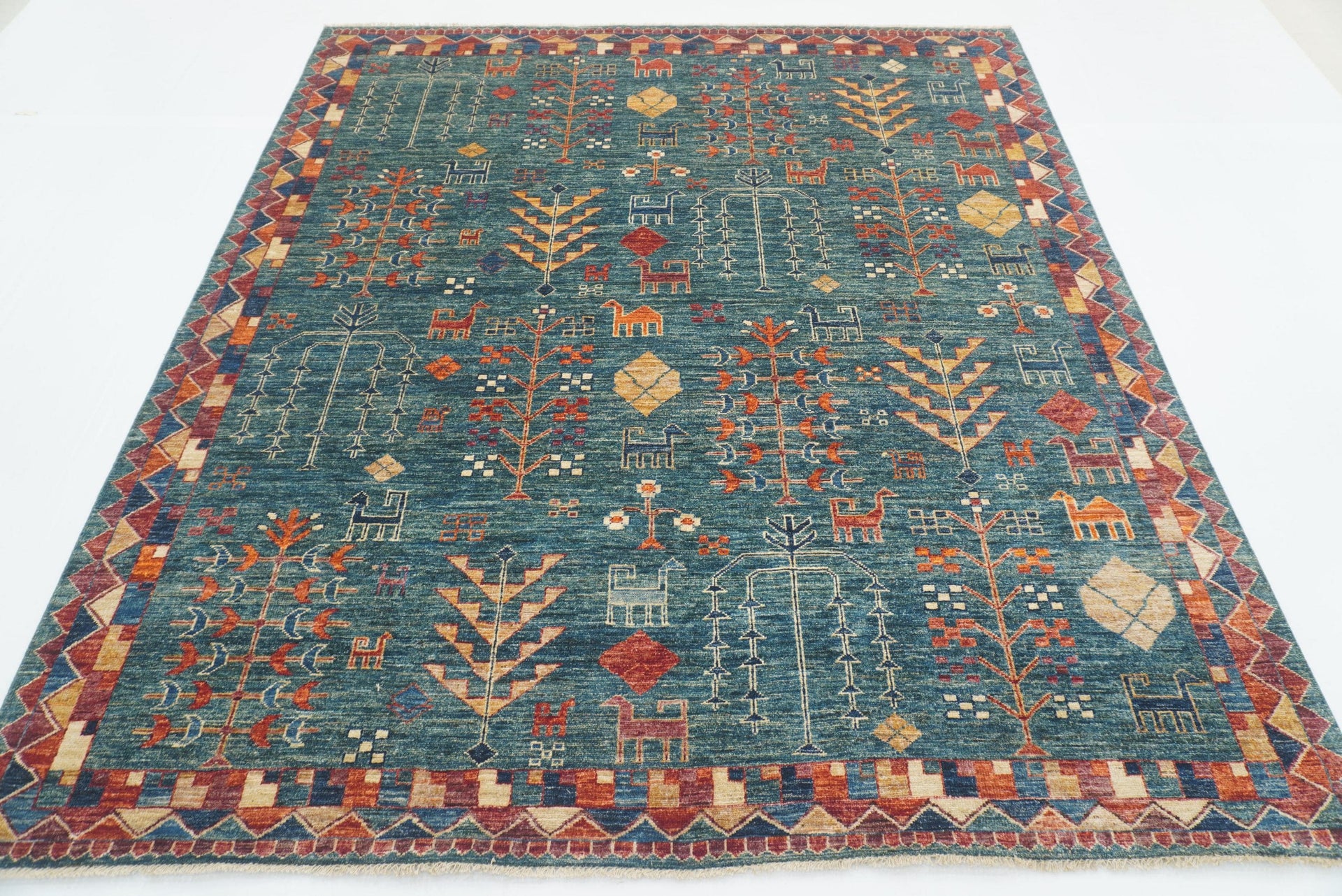 8x10 Green Tiger Afghan Hand knotted Pictorial Rug