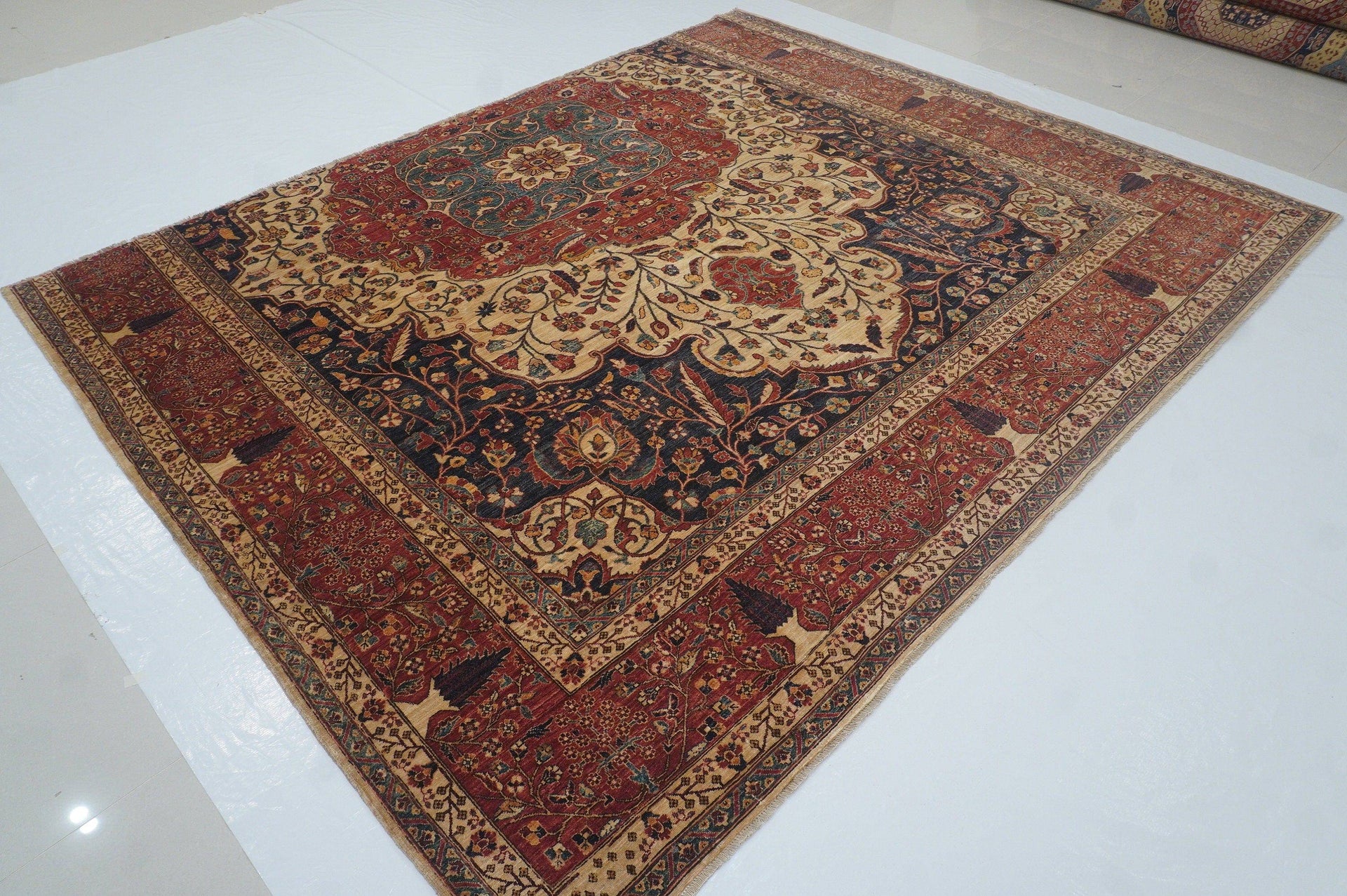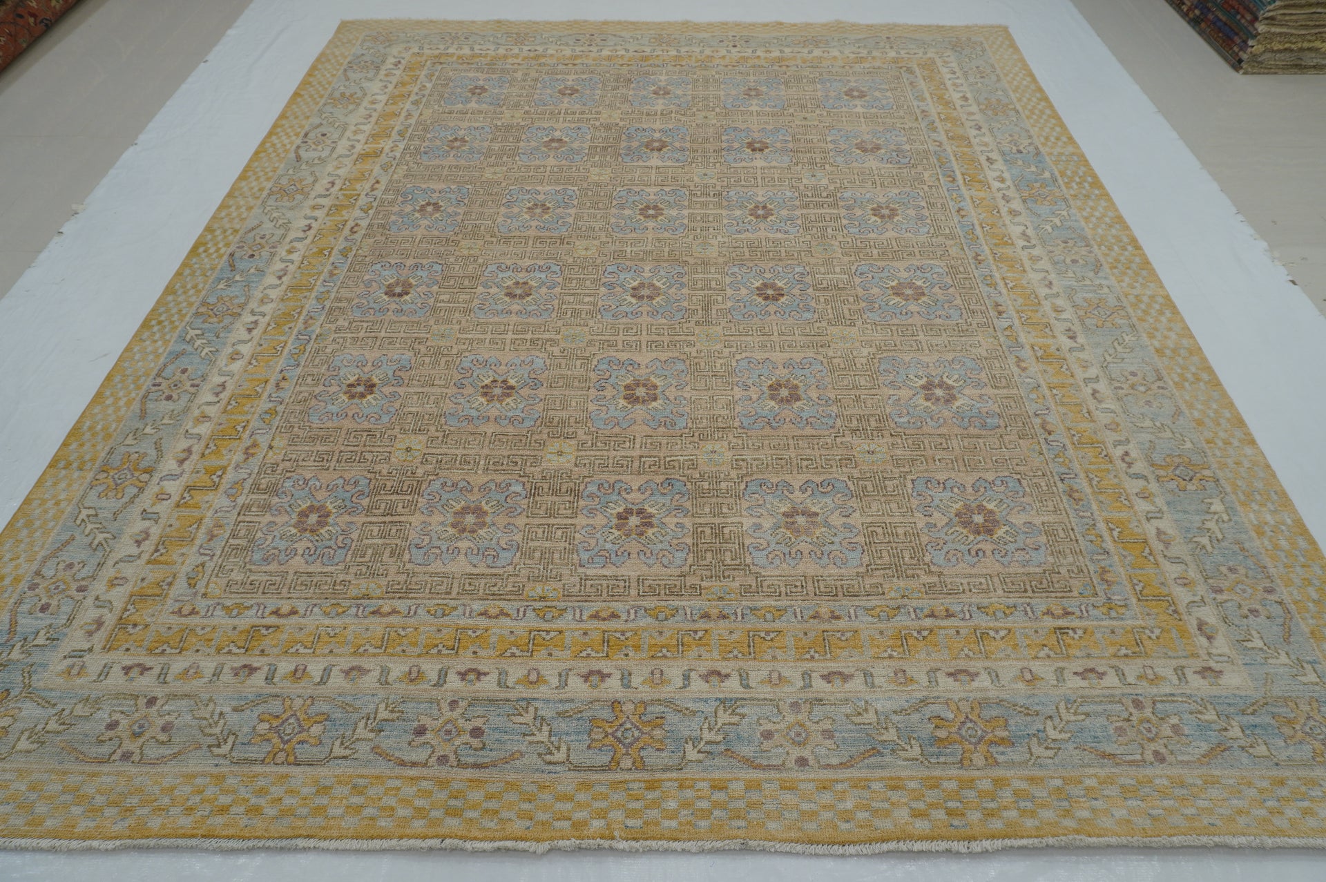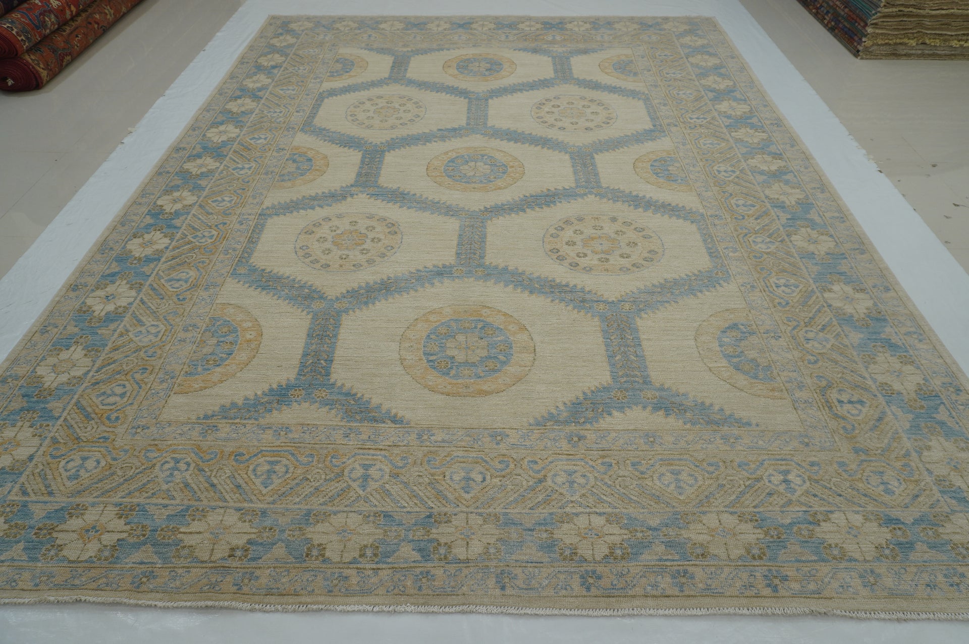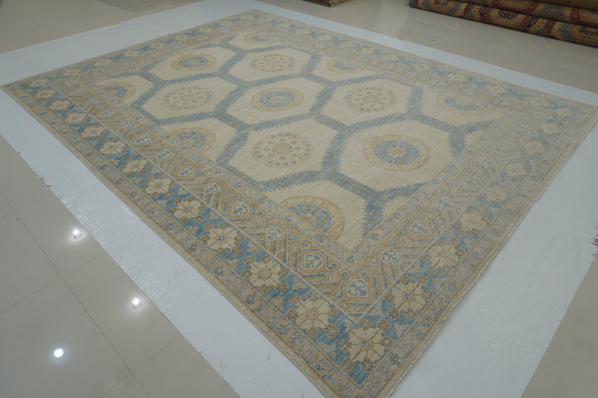 9x12 Beige Khotan Vintage Afghan Hand knotted Oriental Rug