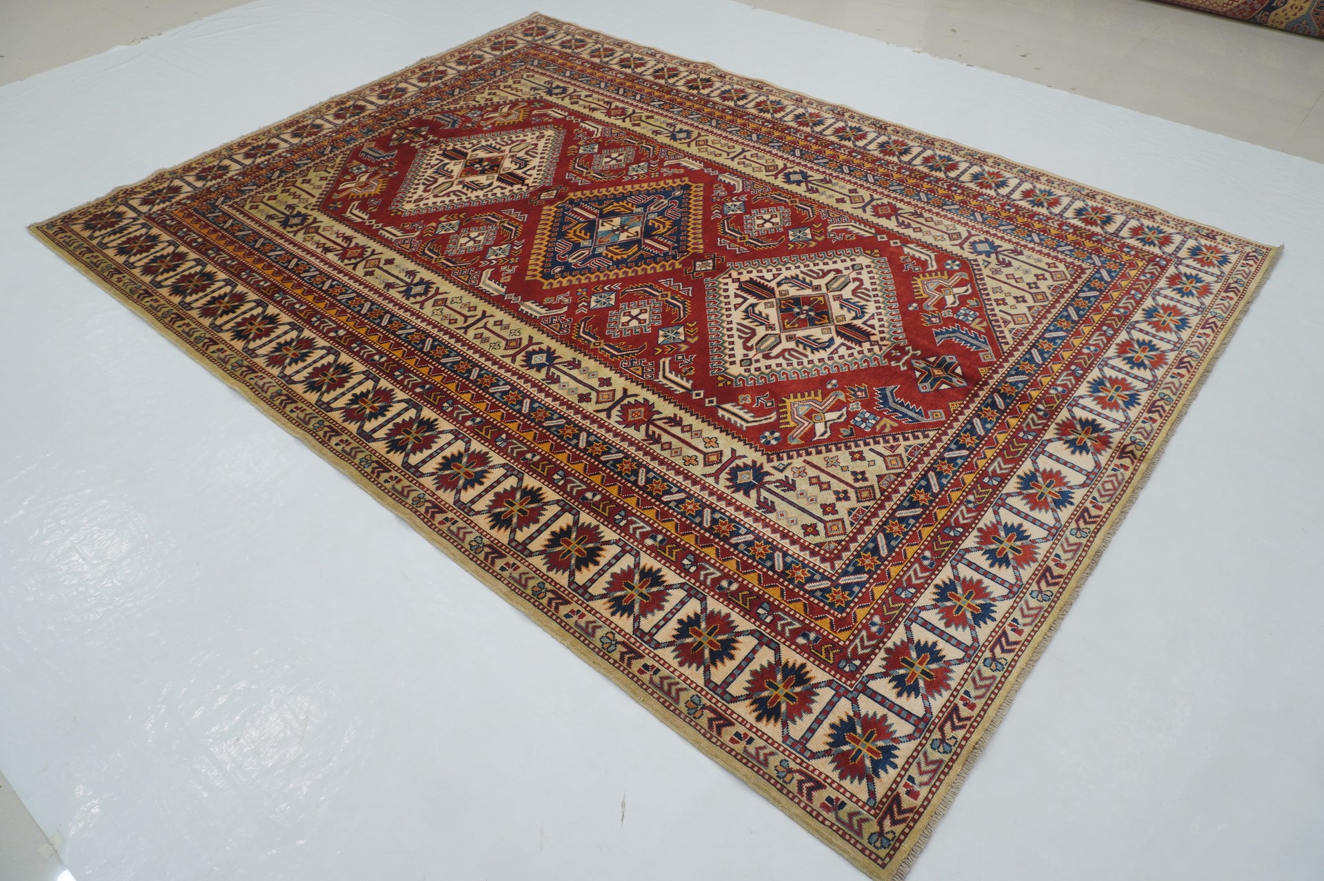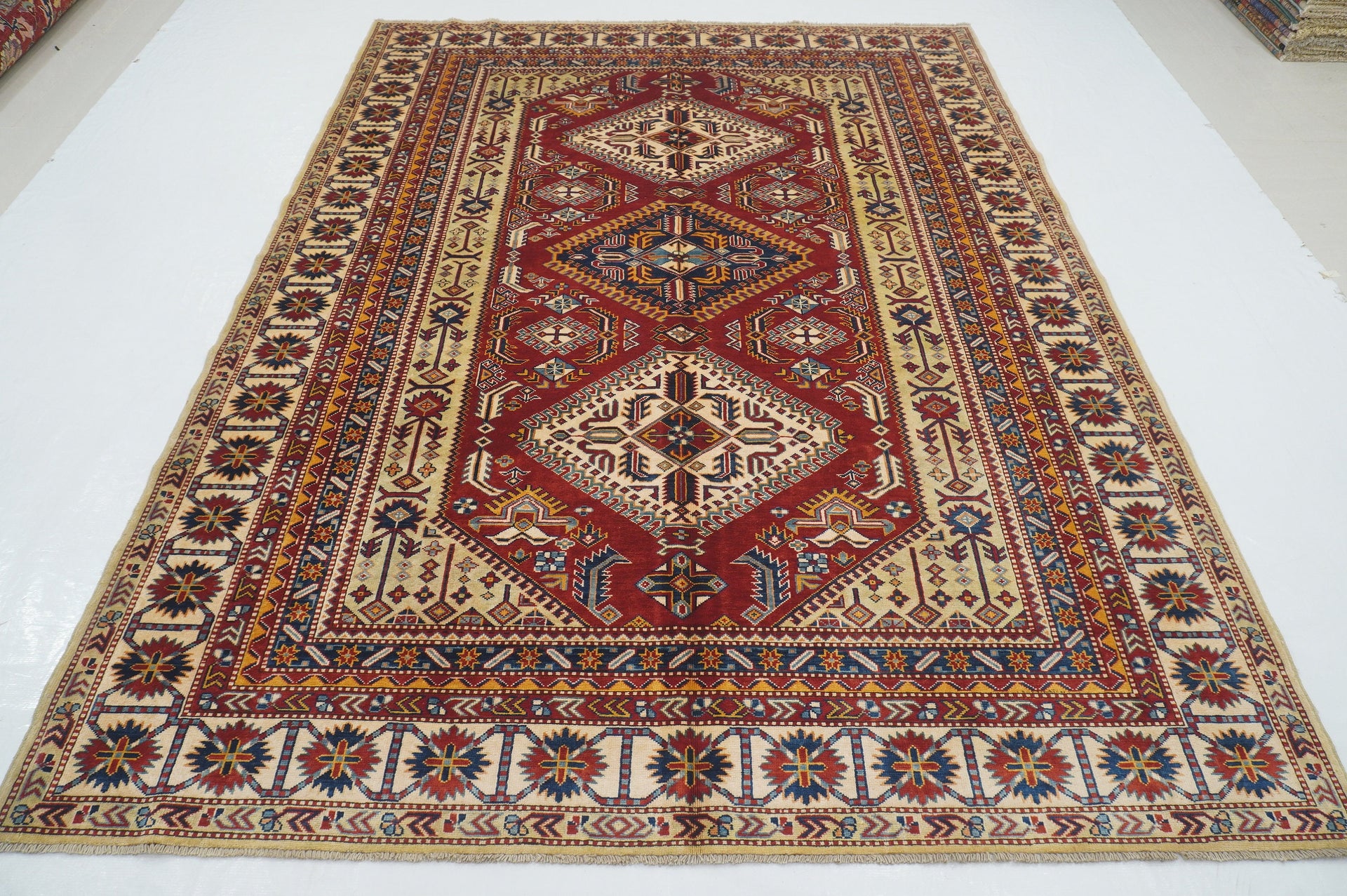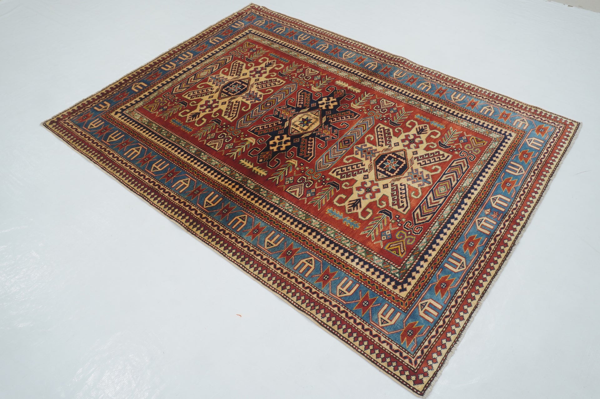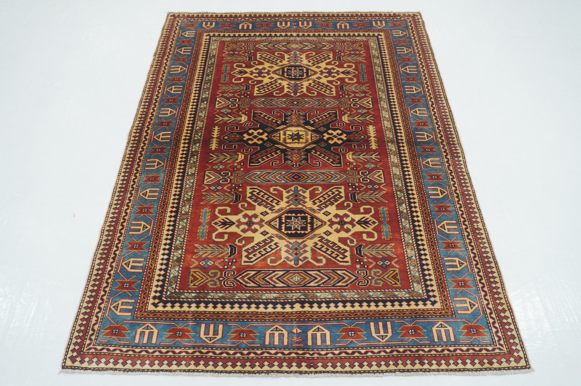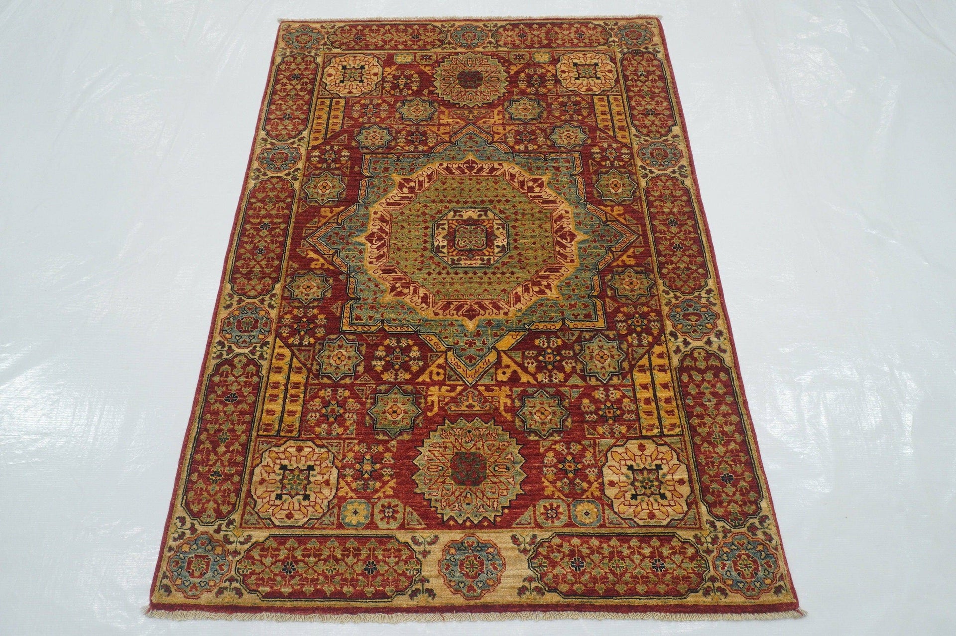 4x6 Red Afghan Shirvan Vintage Caucasian Hand knotted Rug