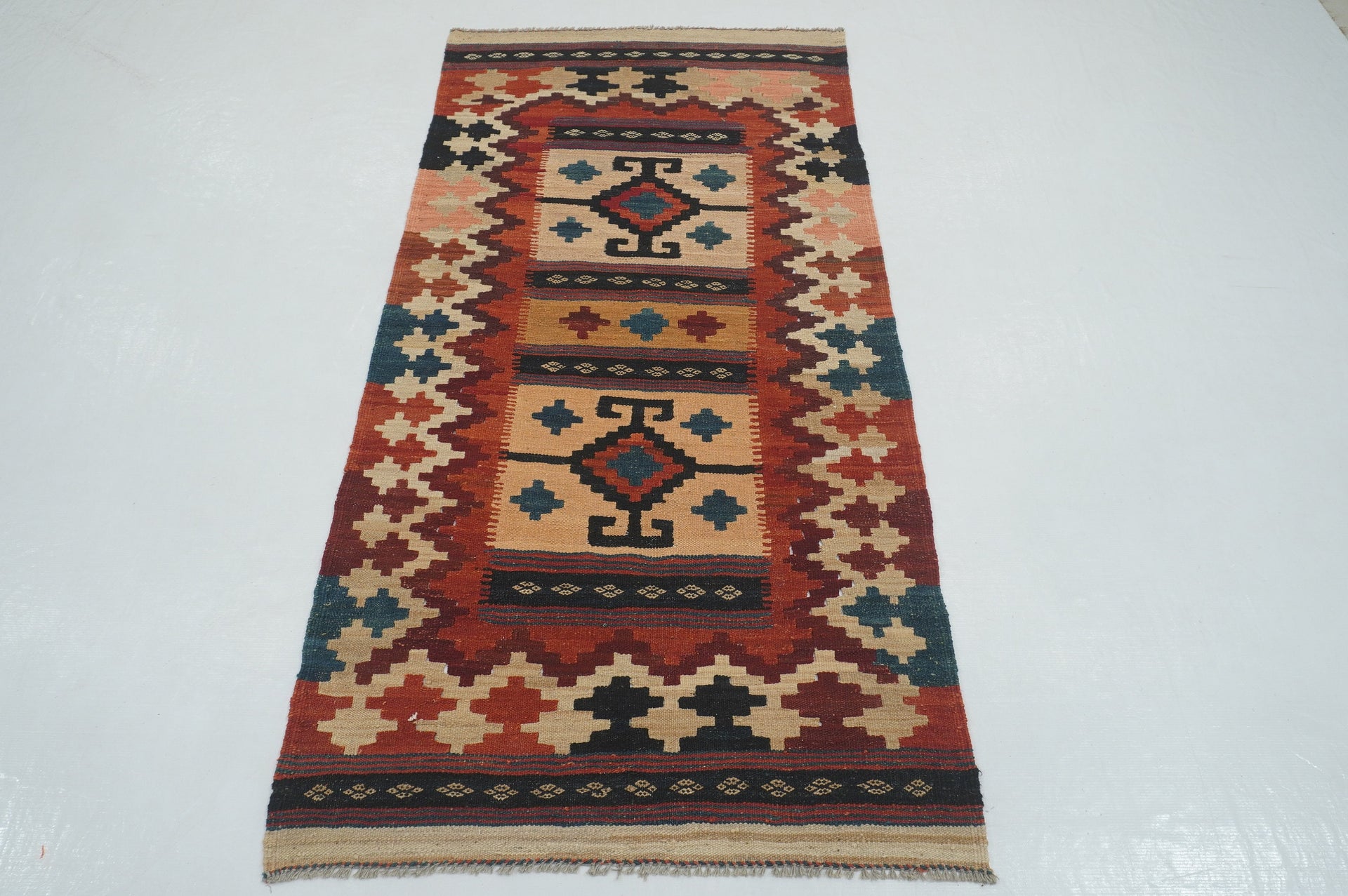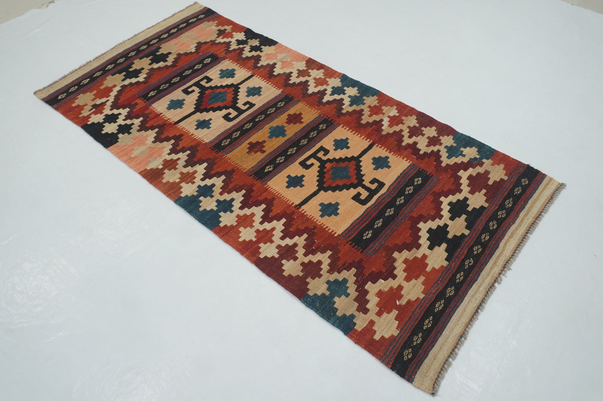 6 ft Red Vintage Afghan High Low Hand Knotted / Woven Barjesta Kilim Runner Rug