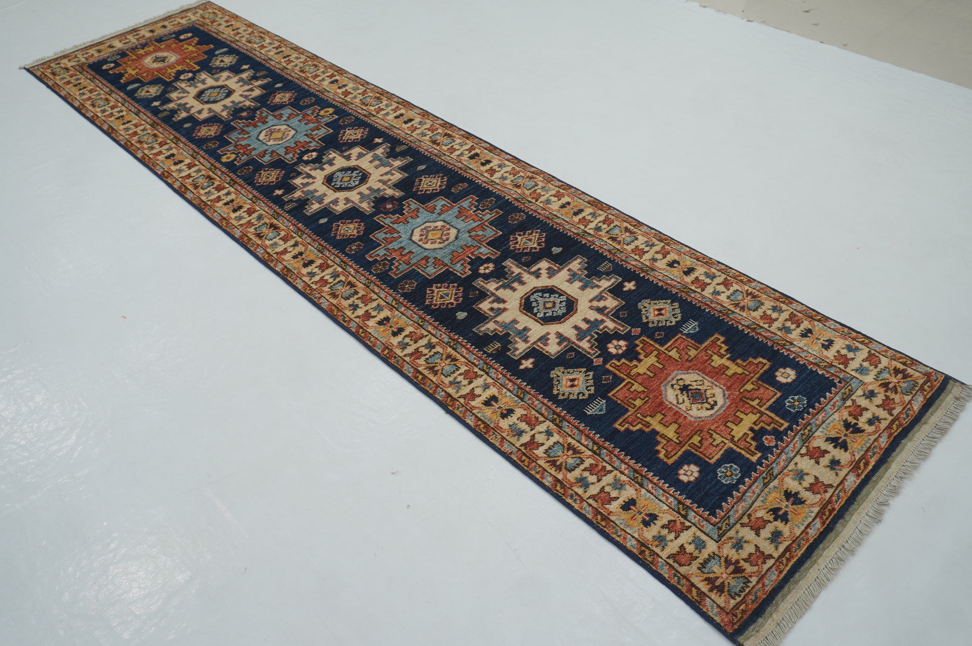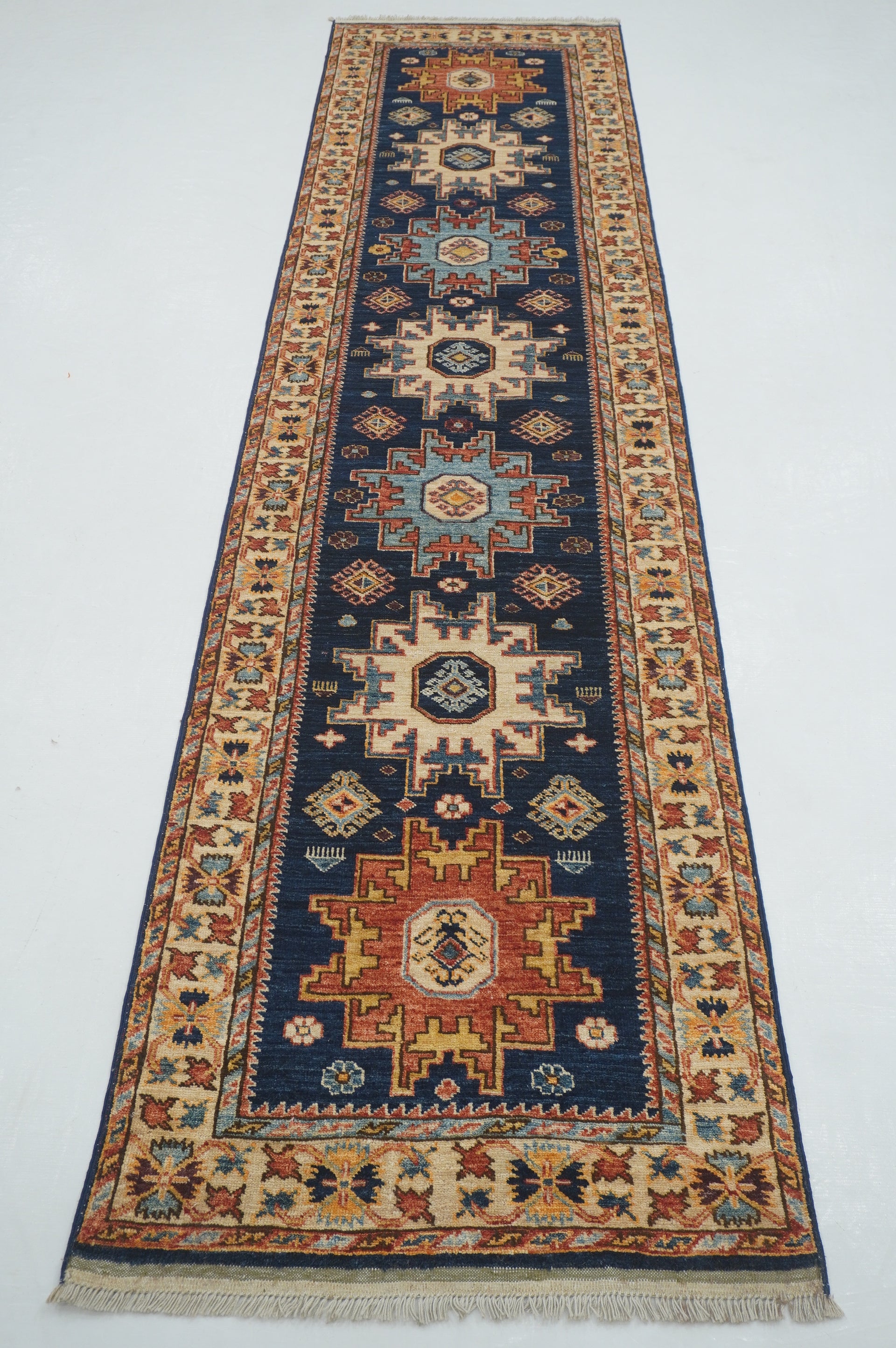 10 ft Navy Blue Vintage Shirvan Afghan Hand Knotted Runner Rug