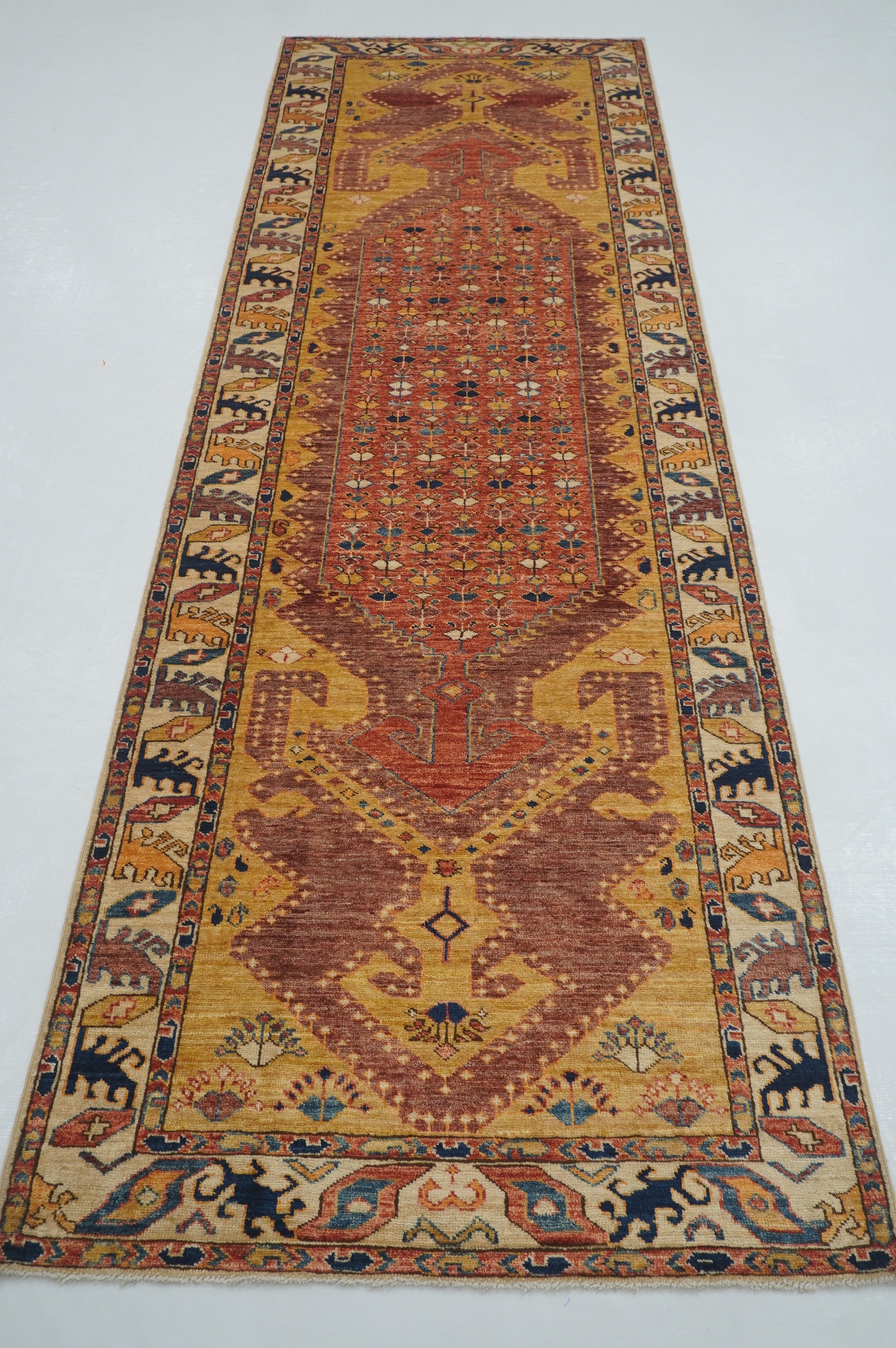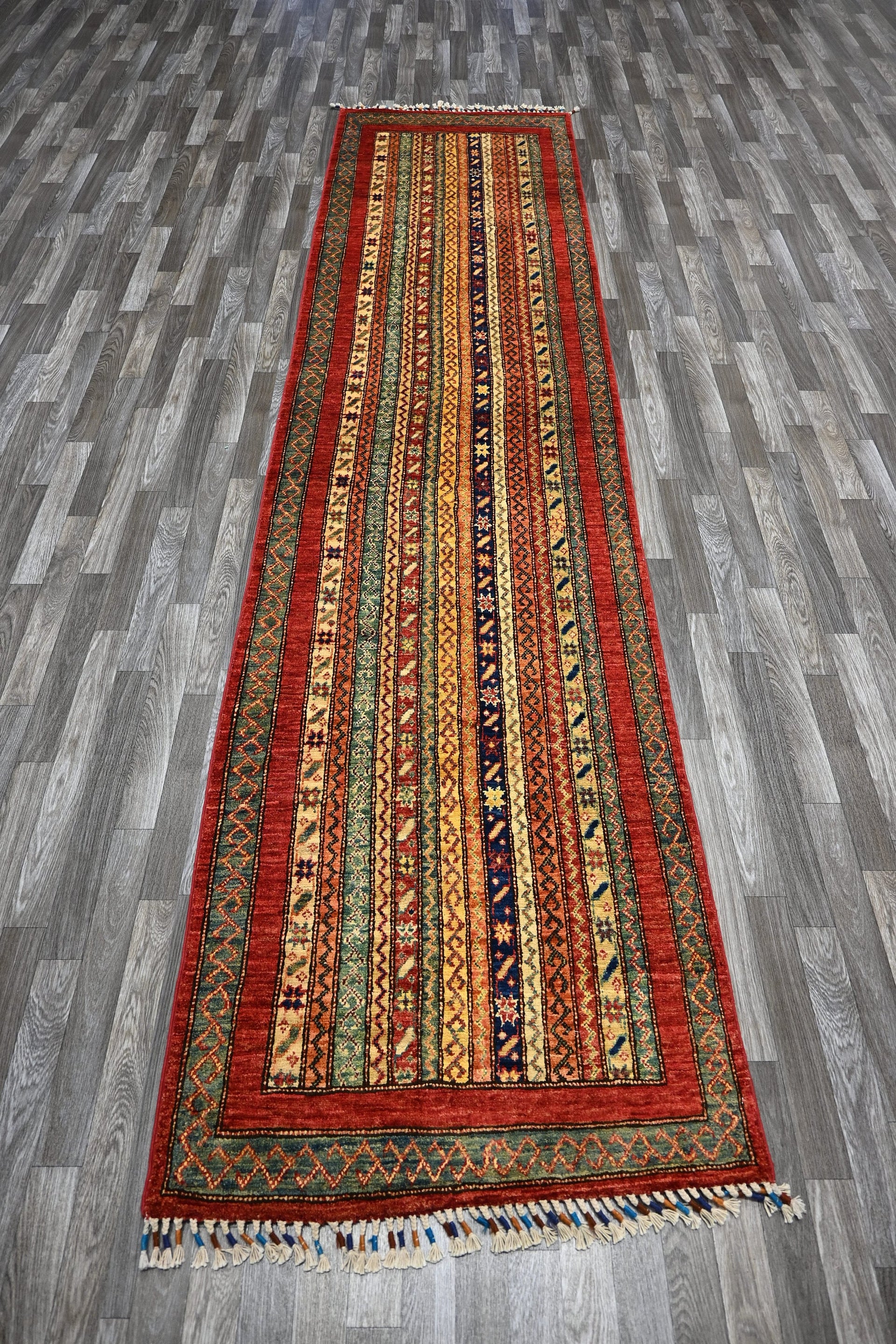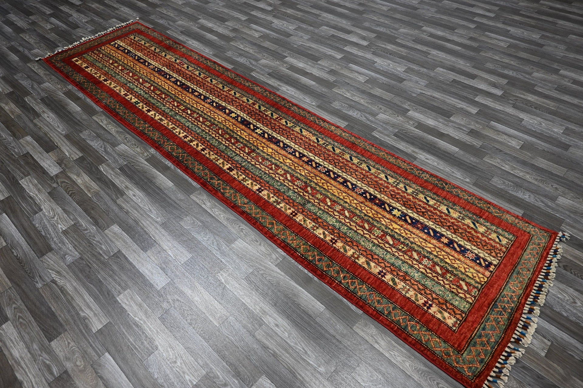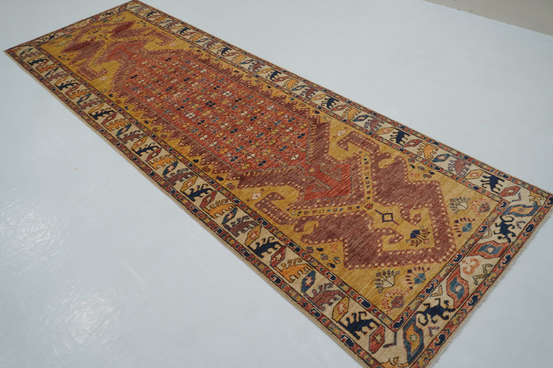 10 Ft Orange Shirvan Vintage Afghan Hand knotted Runner Rug
