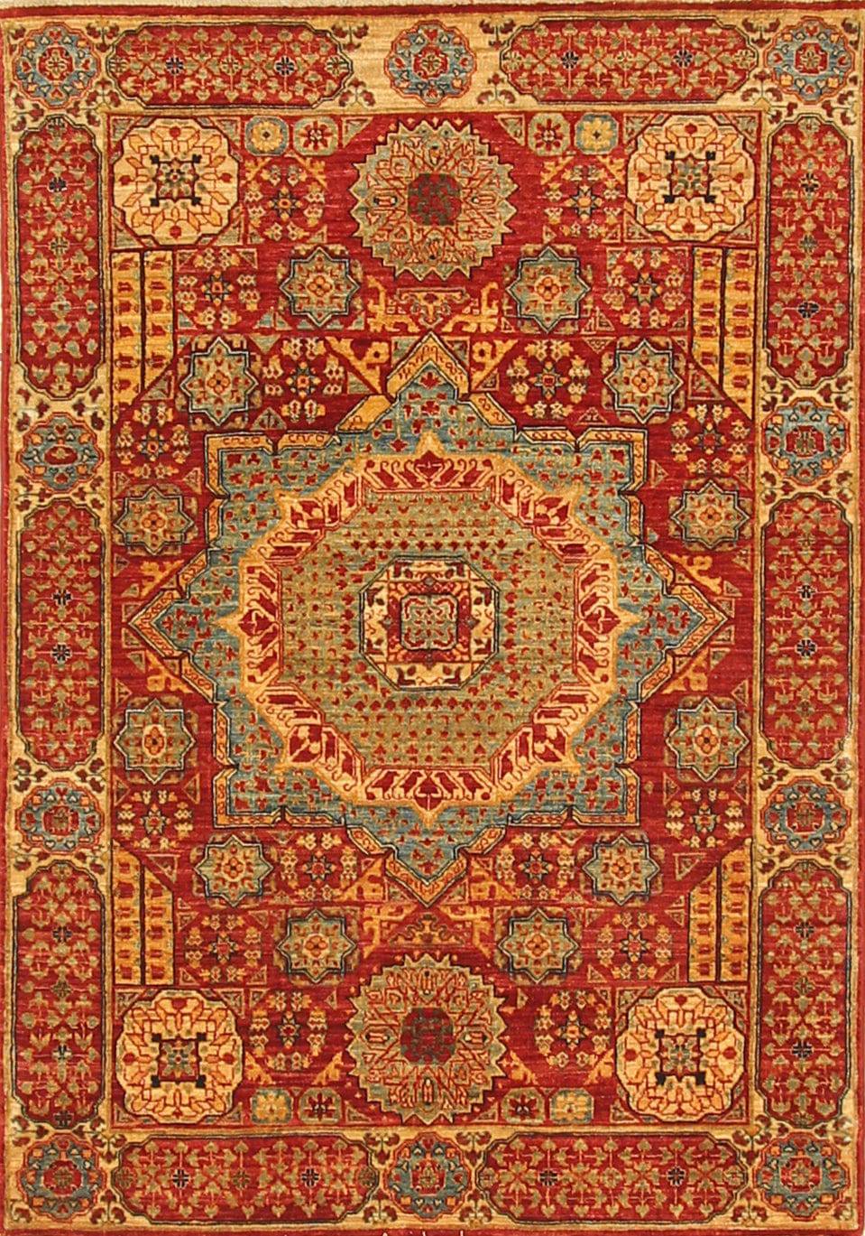5x7 Red Green Afghan Shirvan Vintage Caucasian Hand knotted Rug