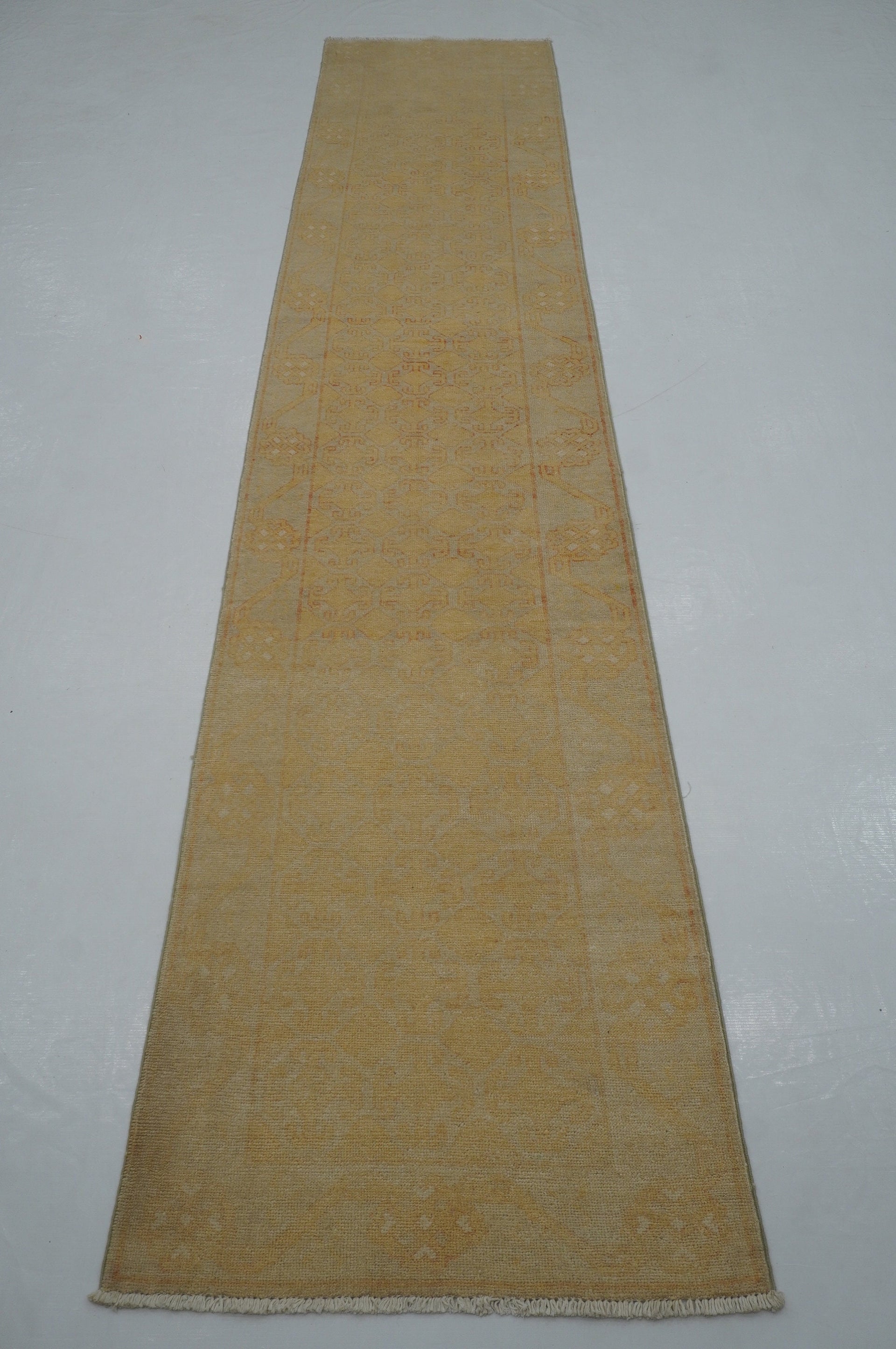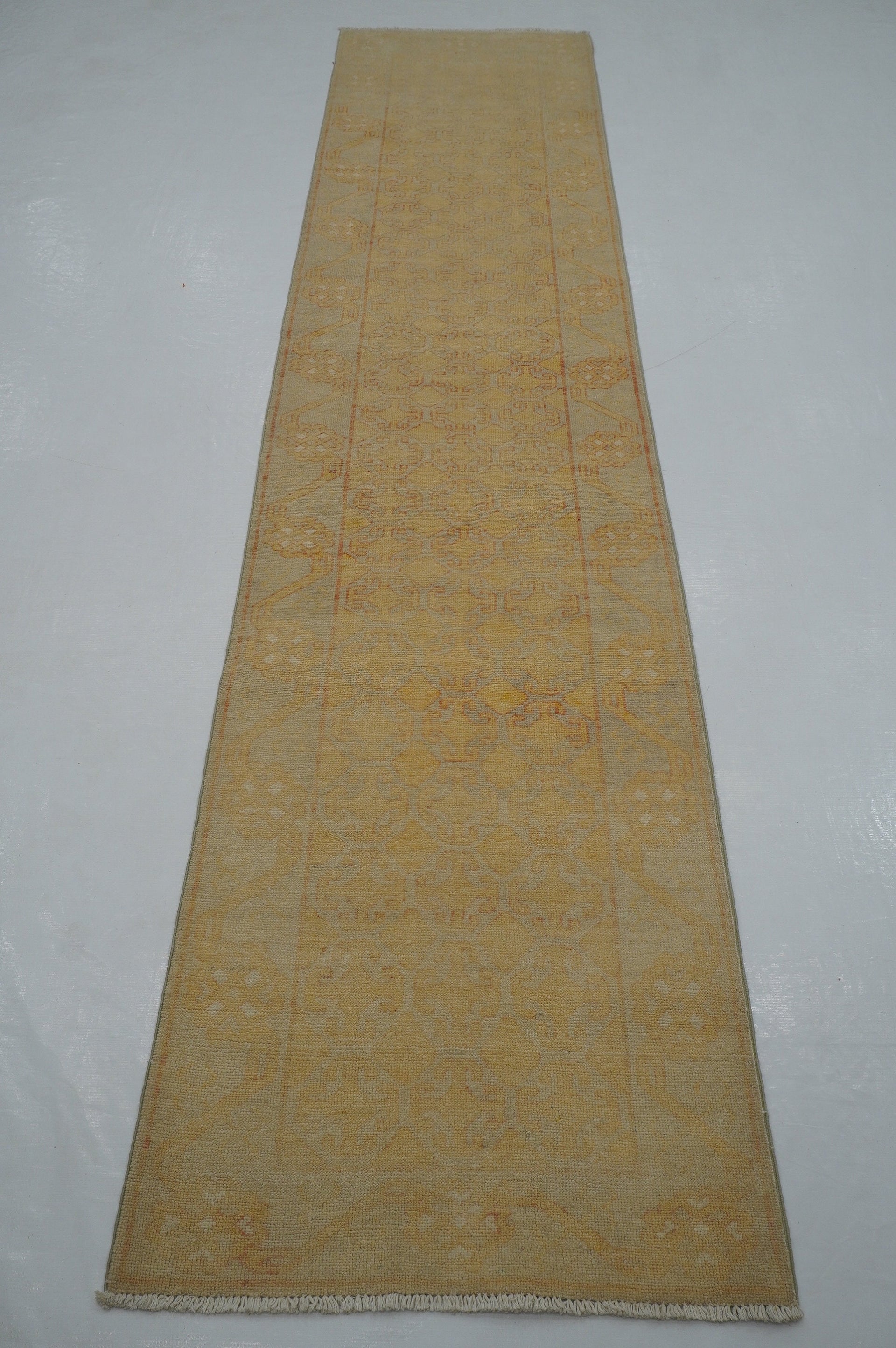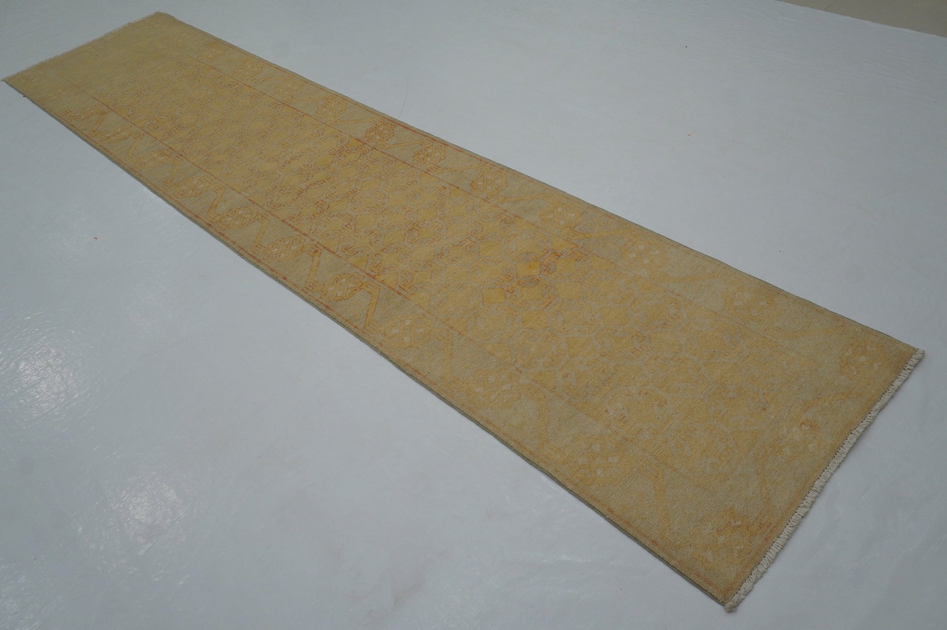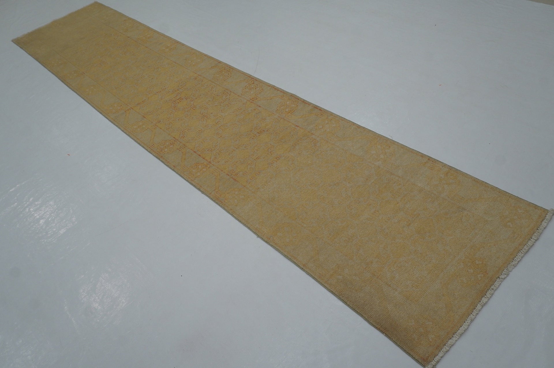 6 ft Gold Vintage Afghan High Low Hand Knotted / Woven Barjesta Kilim Runner Rug