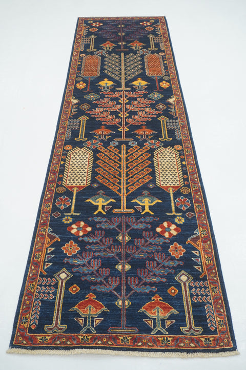 10 Ft Navy Blue Bakhshaish Afghan hand knotted Runner Rug