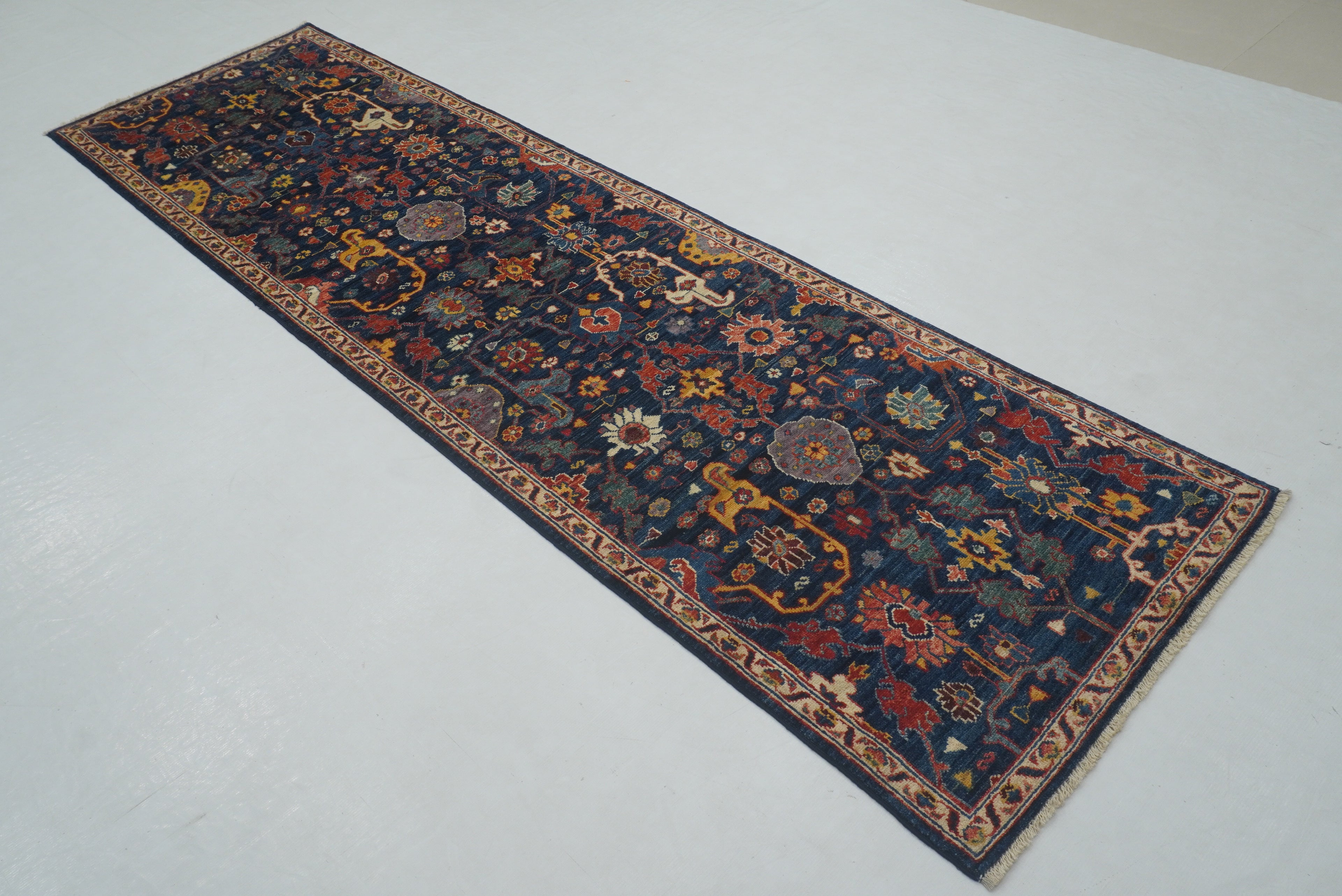 10 ft Navy Blue Bidjar Afghan Hand knotted Runner Rug