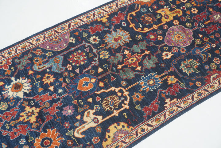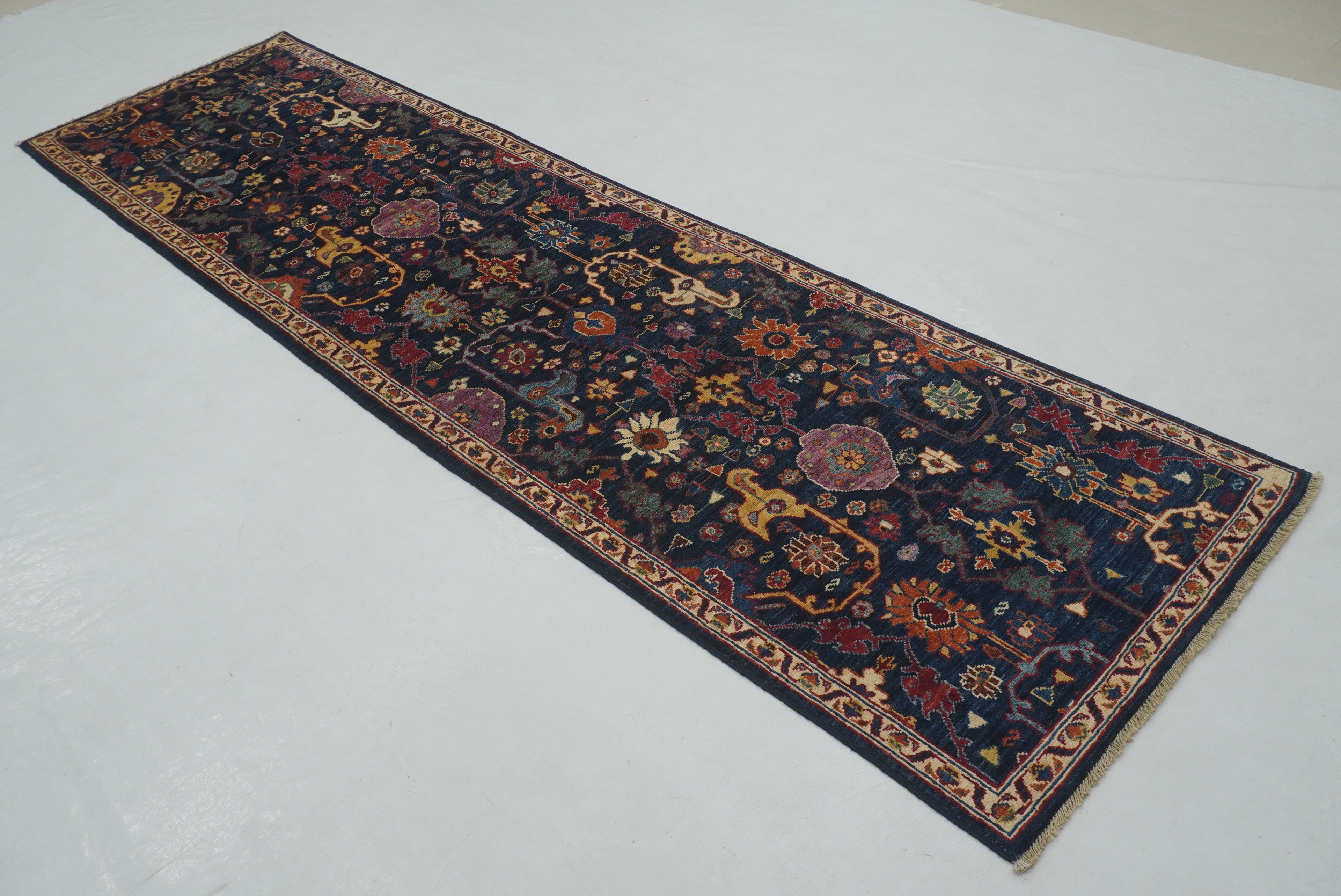 10 ft Navy Blue Bidjar Afghan Hand knotted Runner Rug
