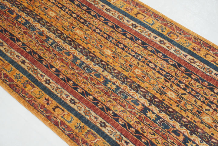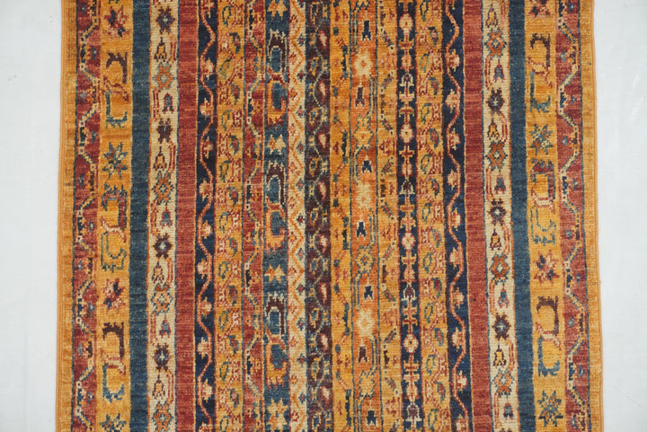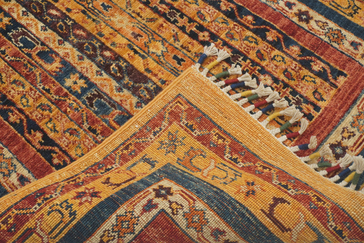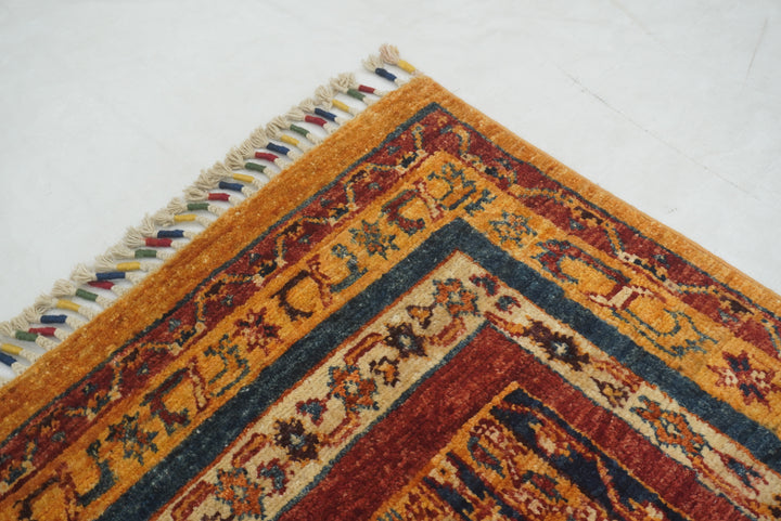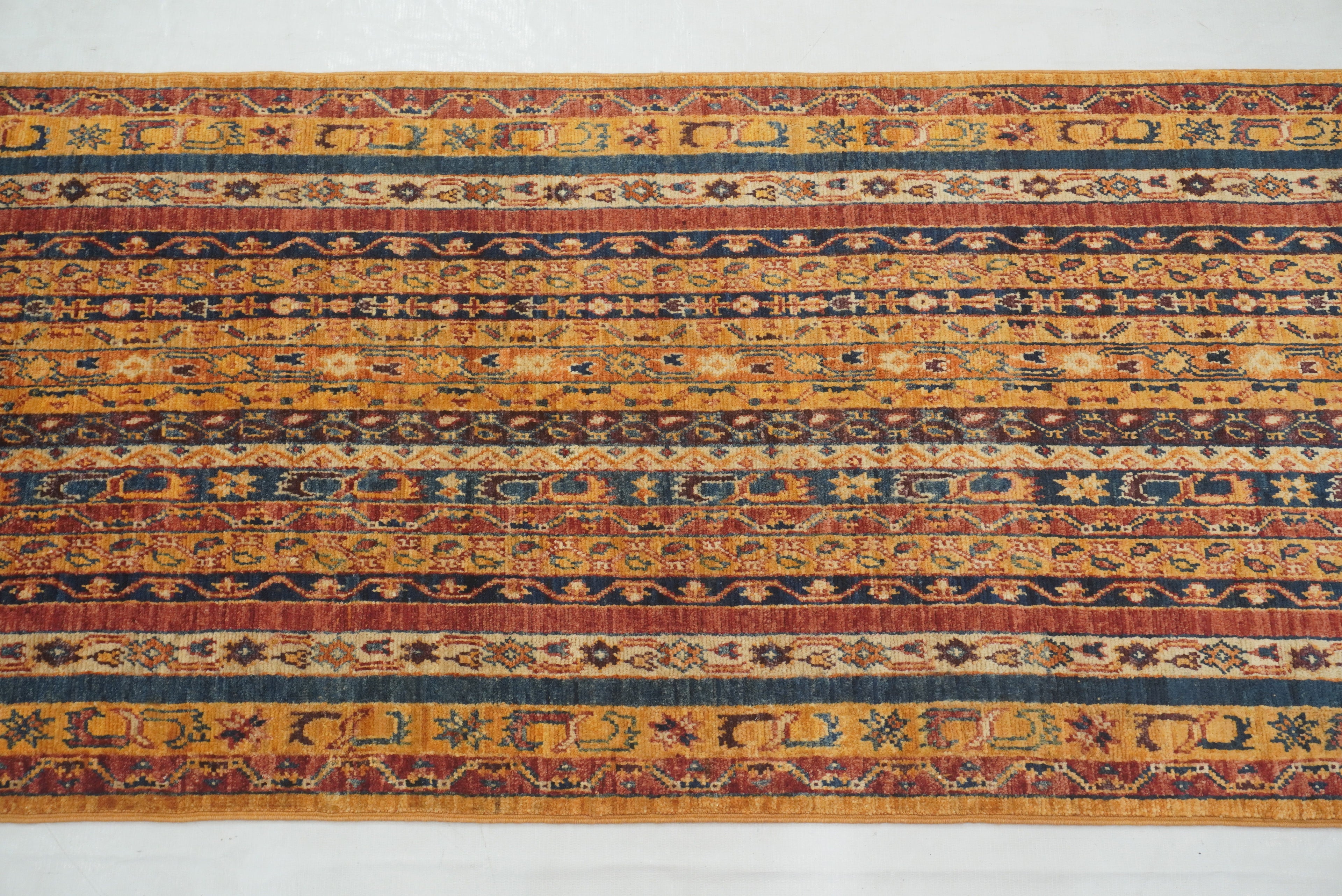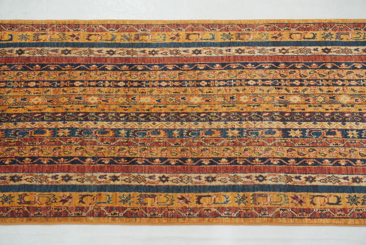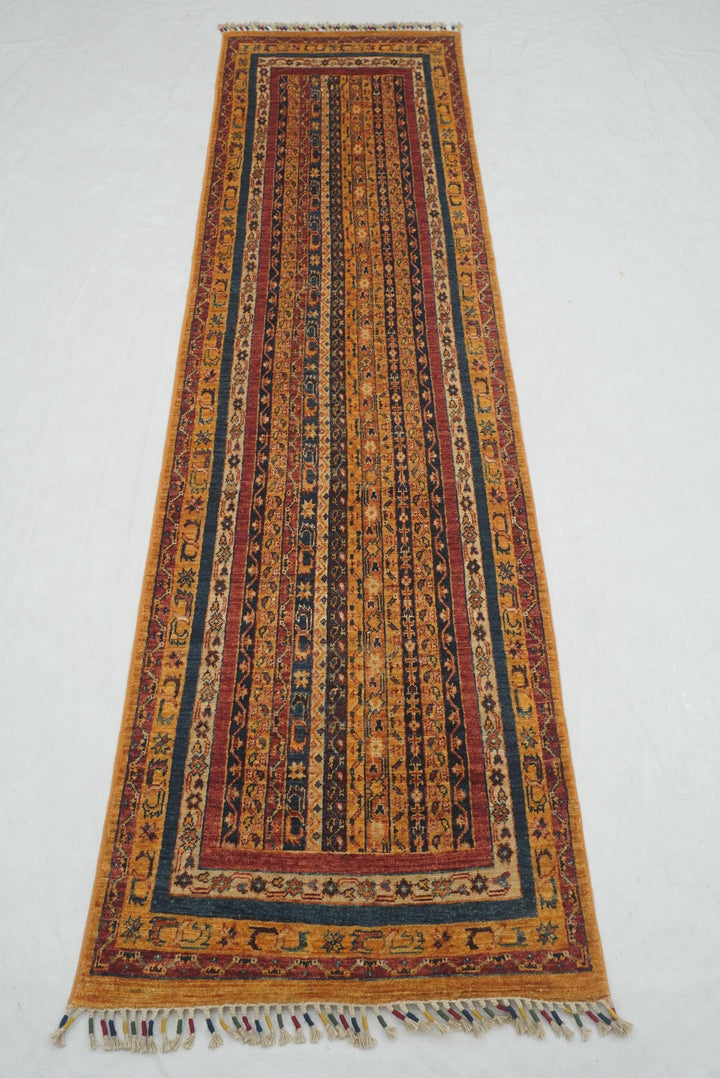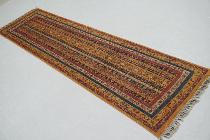 10 ft Orange Vintage Turkish Shawl Pattern Hand knotted Runner Rug