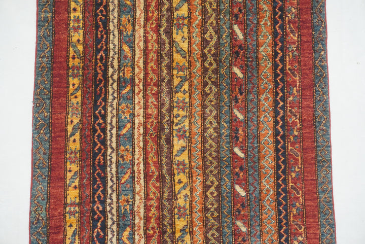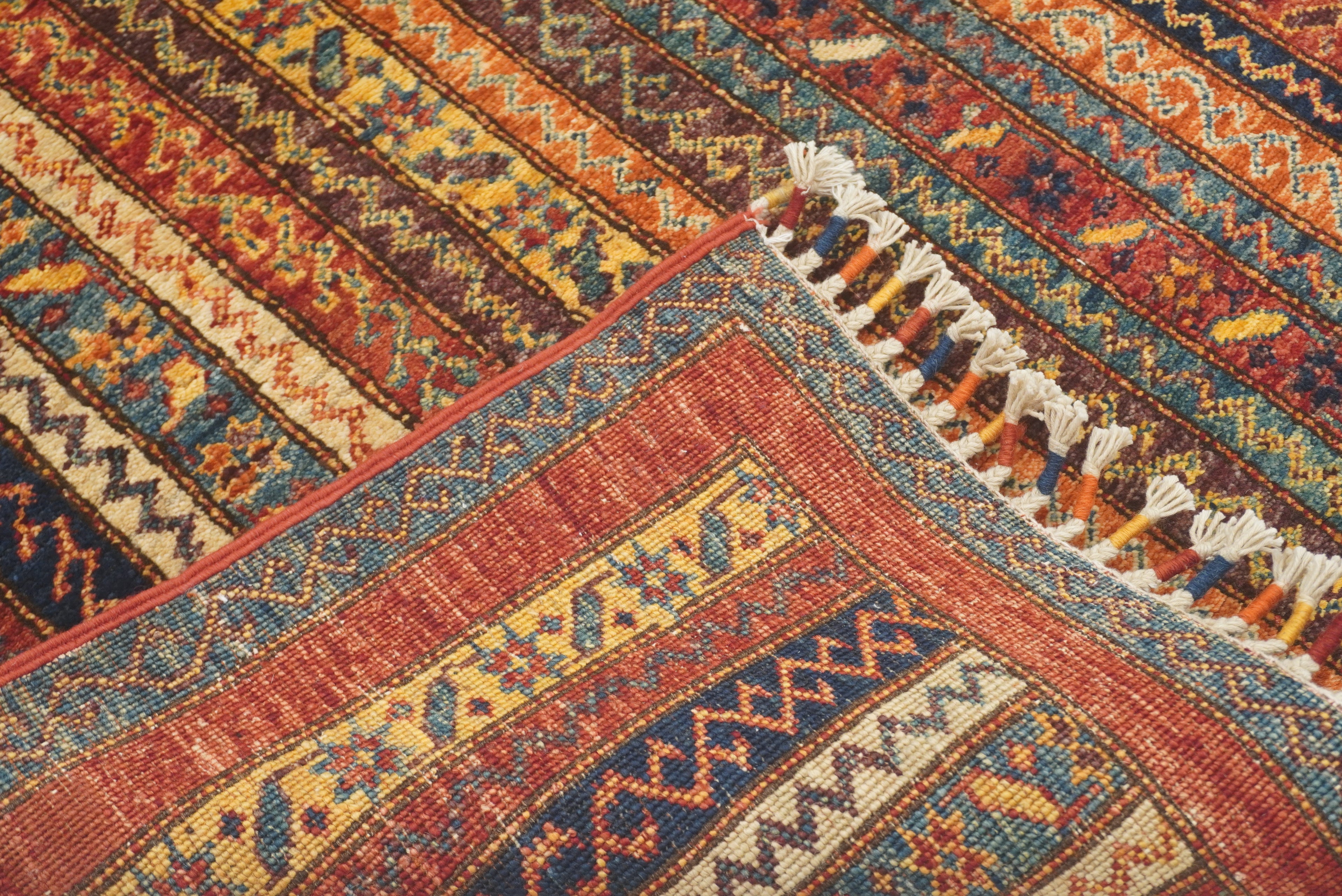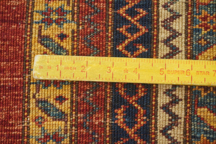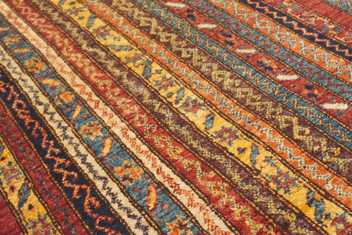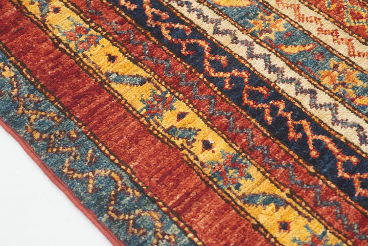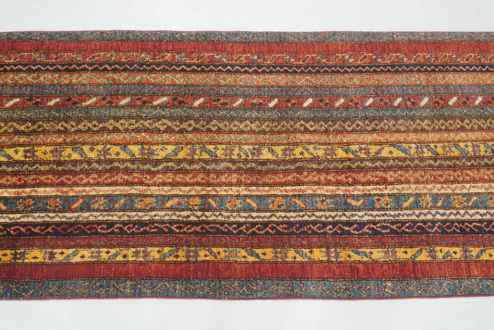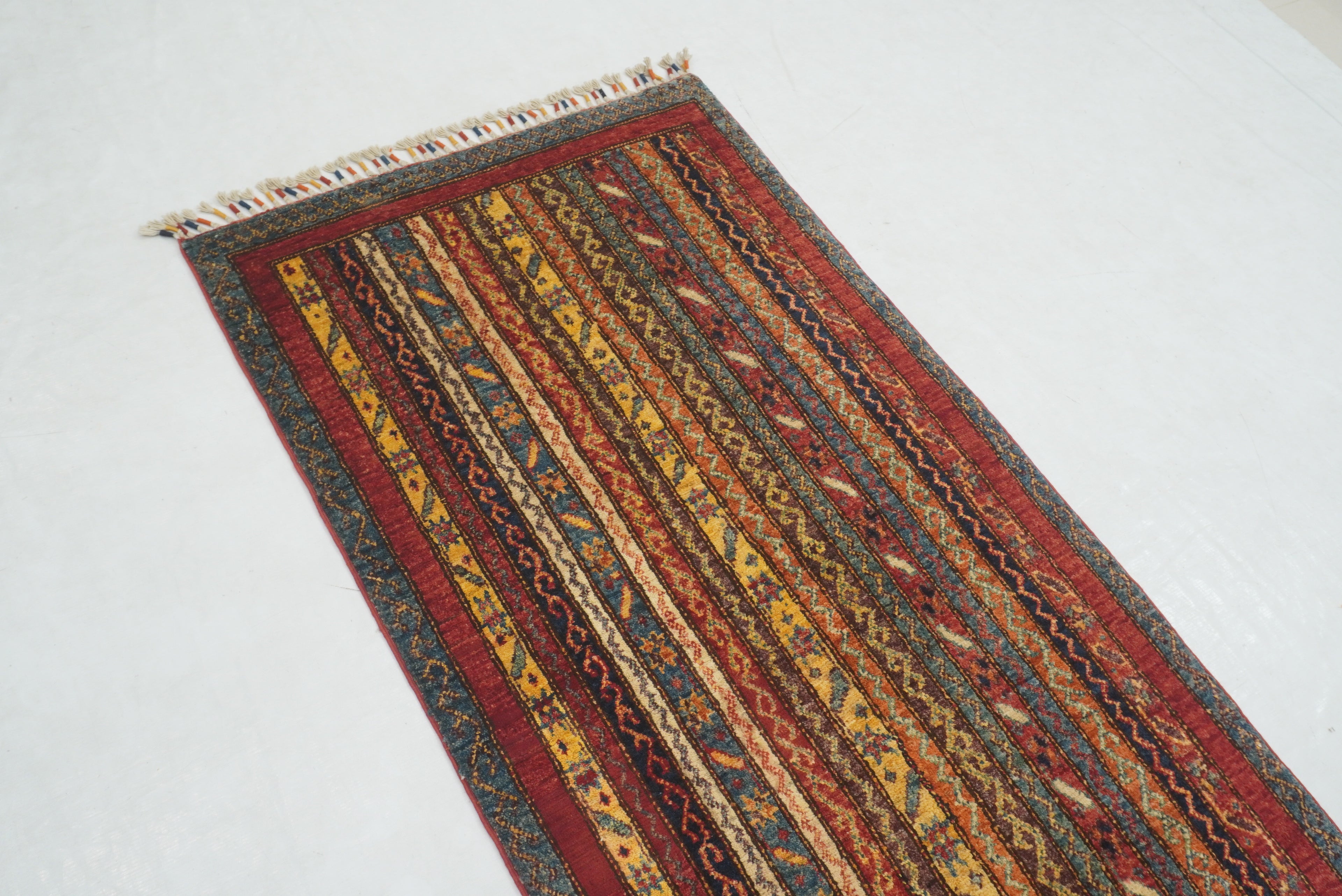 10 ft Red Turkish Shawl Striped Pattern Hand knotted Runner Rug