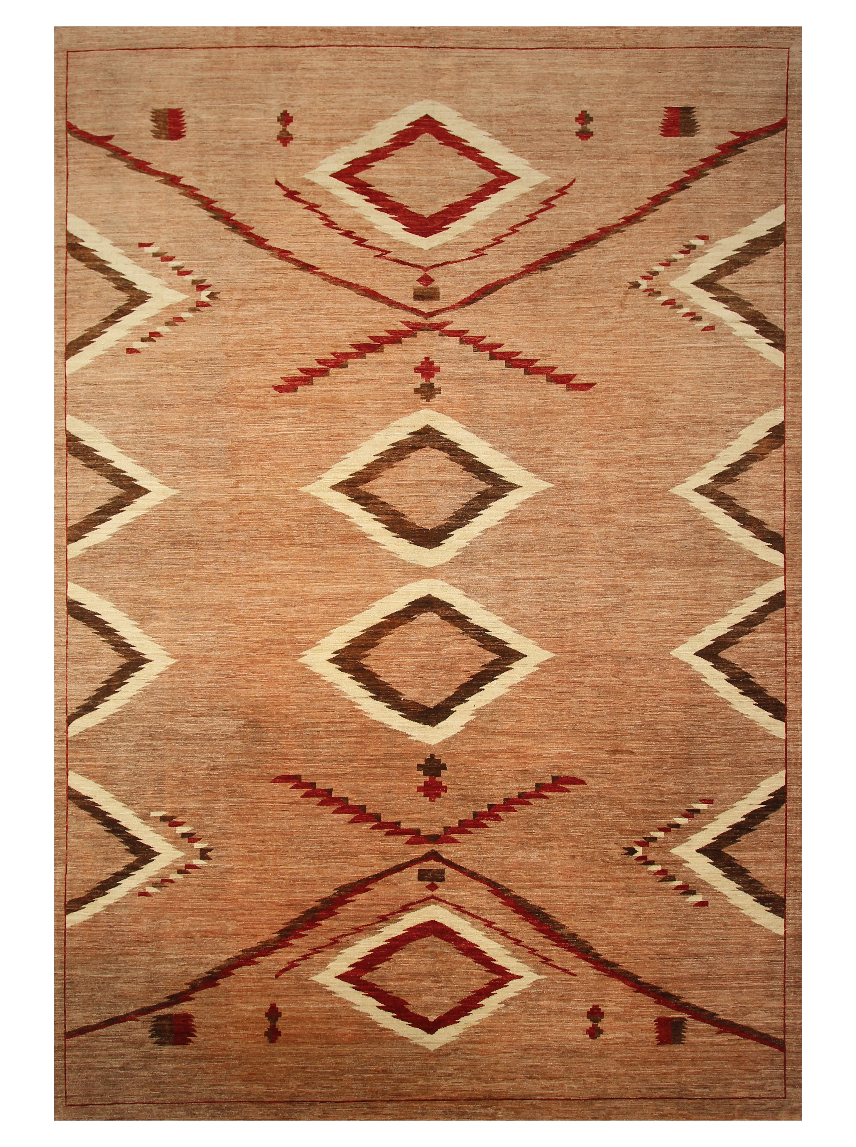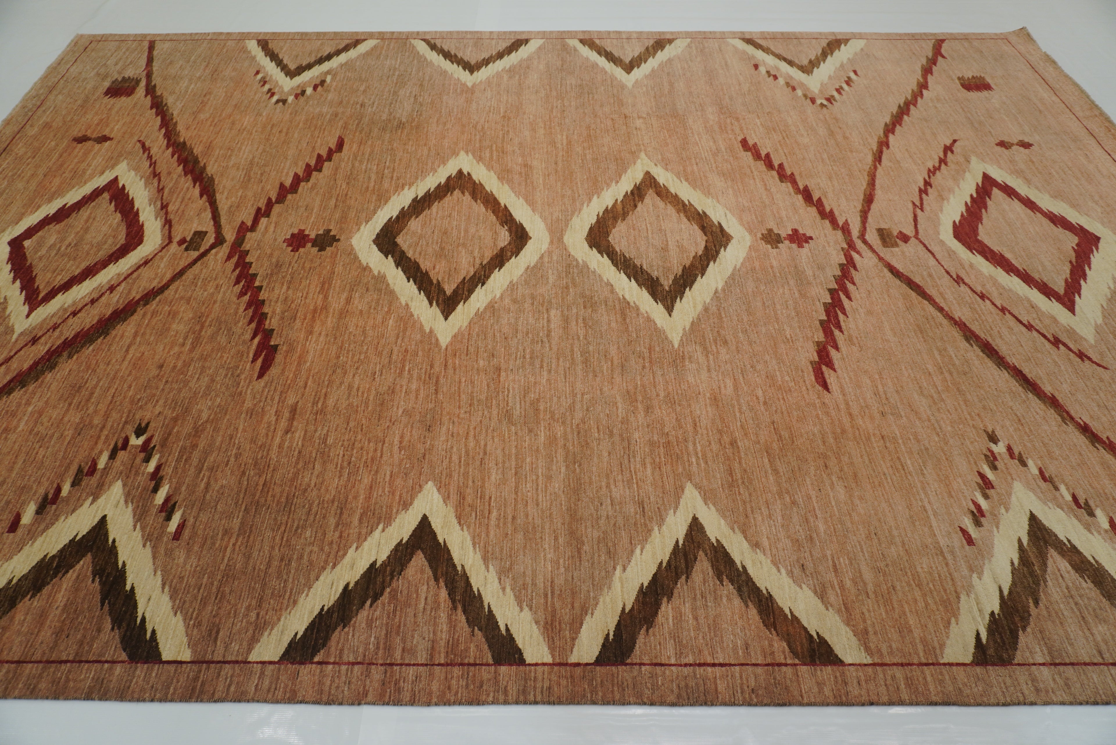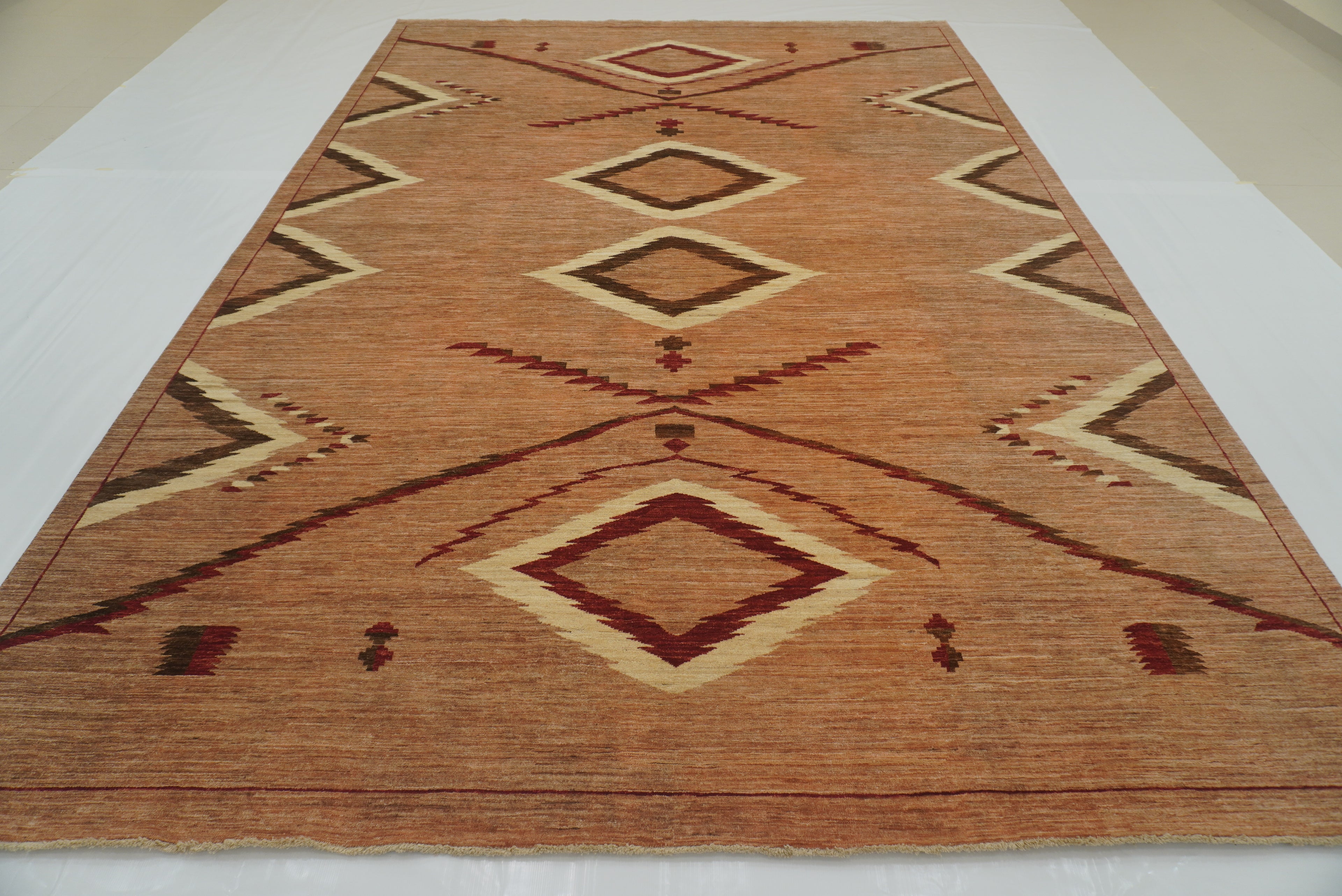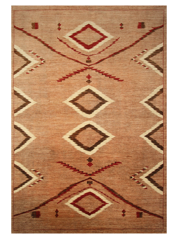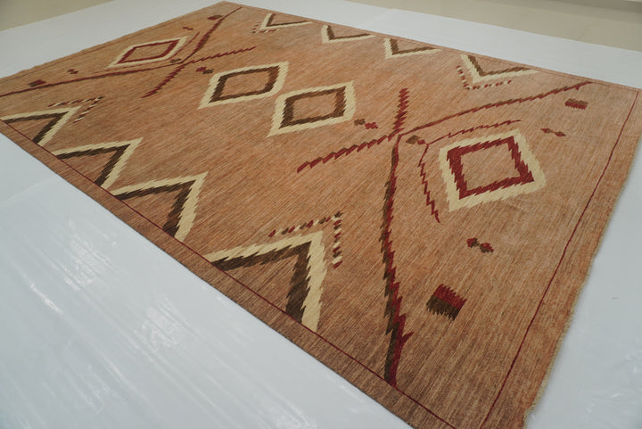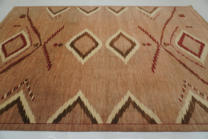 10x14 ft Camel Brown Southwestern Afghan Hand Knotted Rug