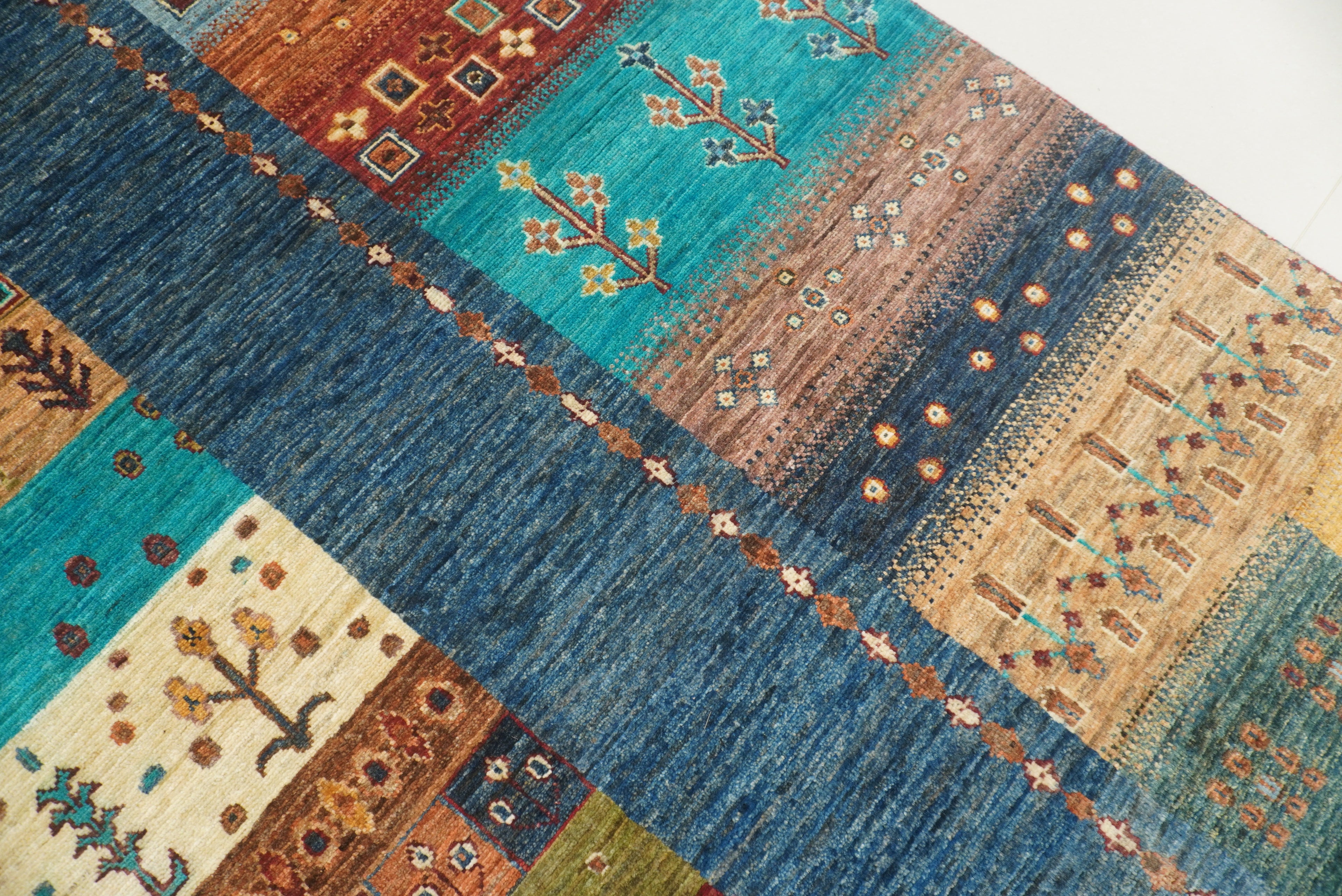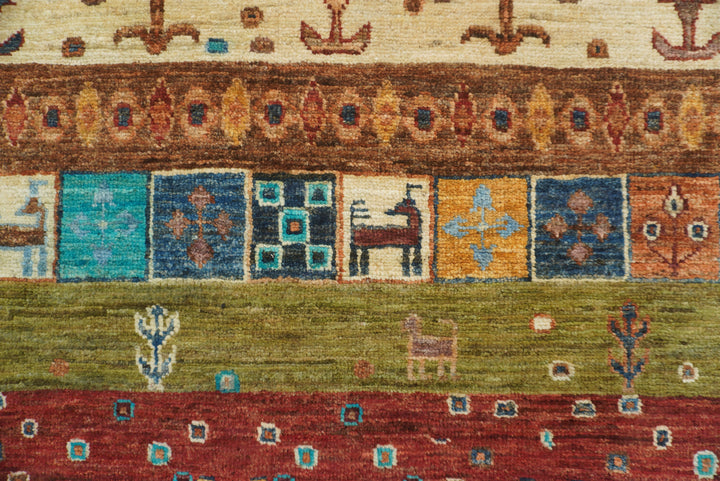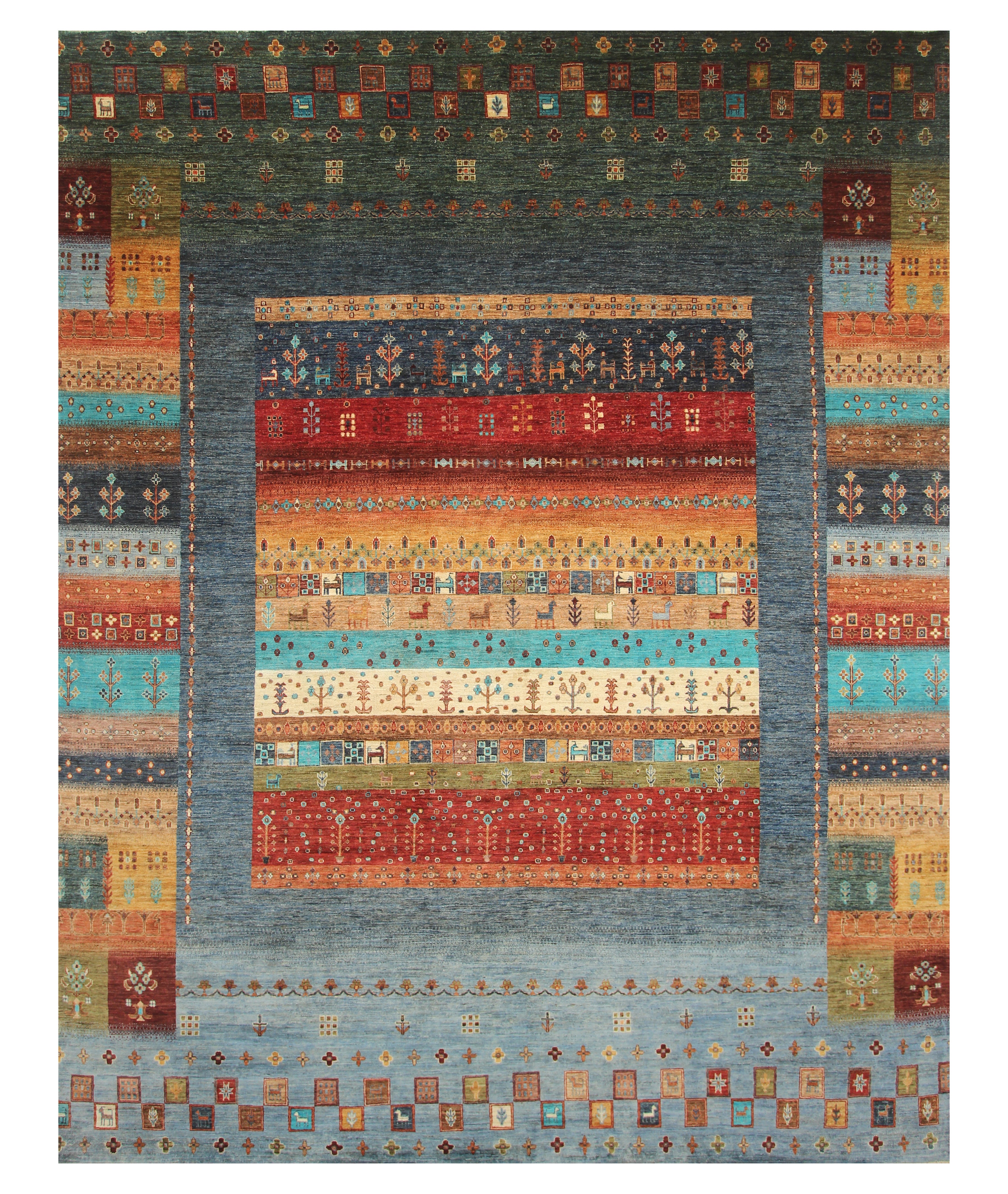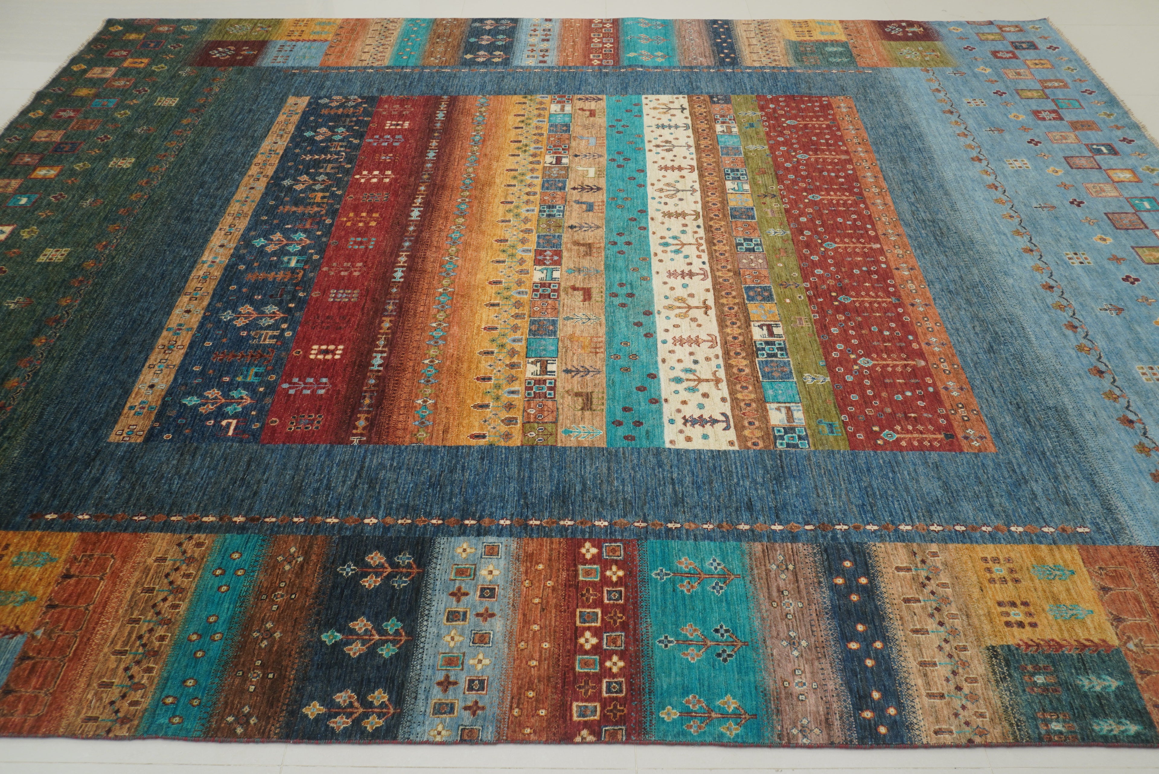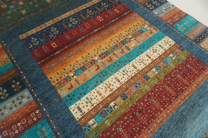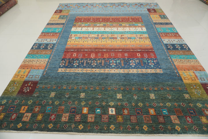 10x13 Blue Green Gabbeh Afghan Kashkuli Hand knotted Rug