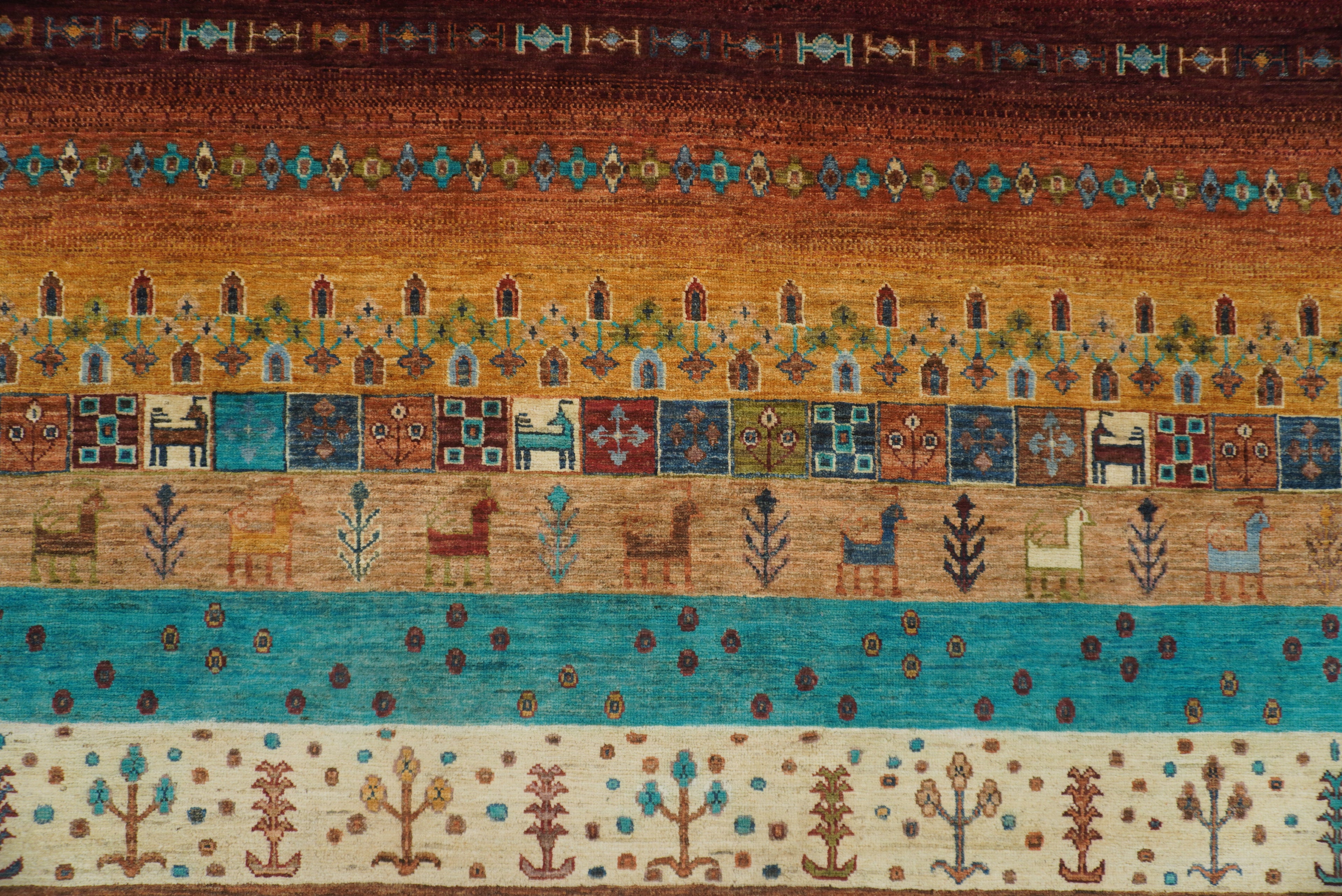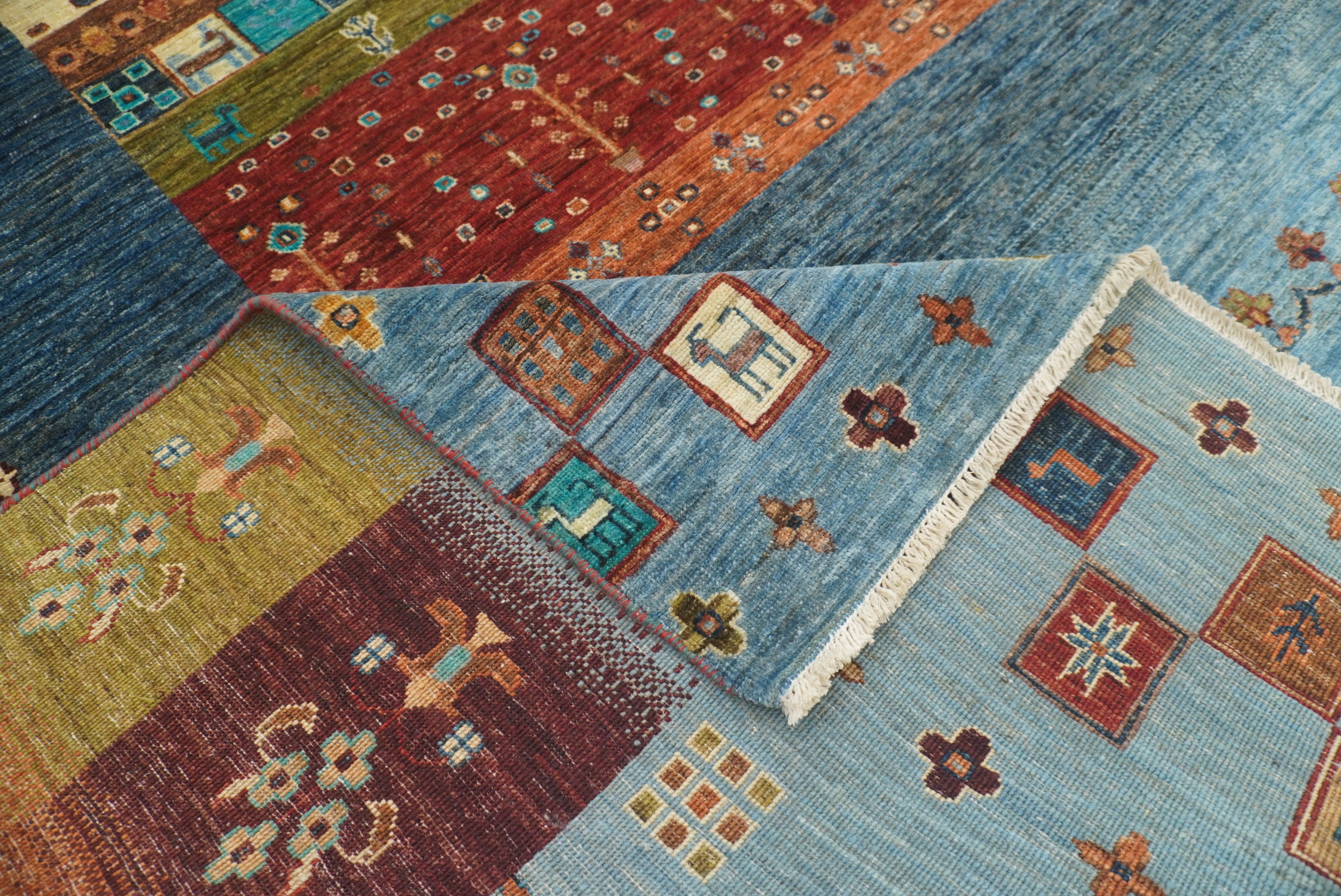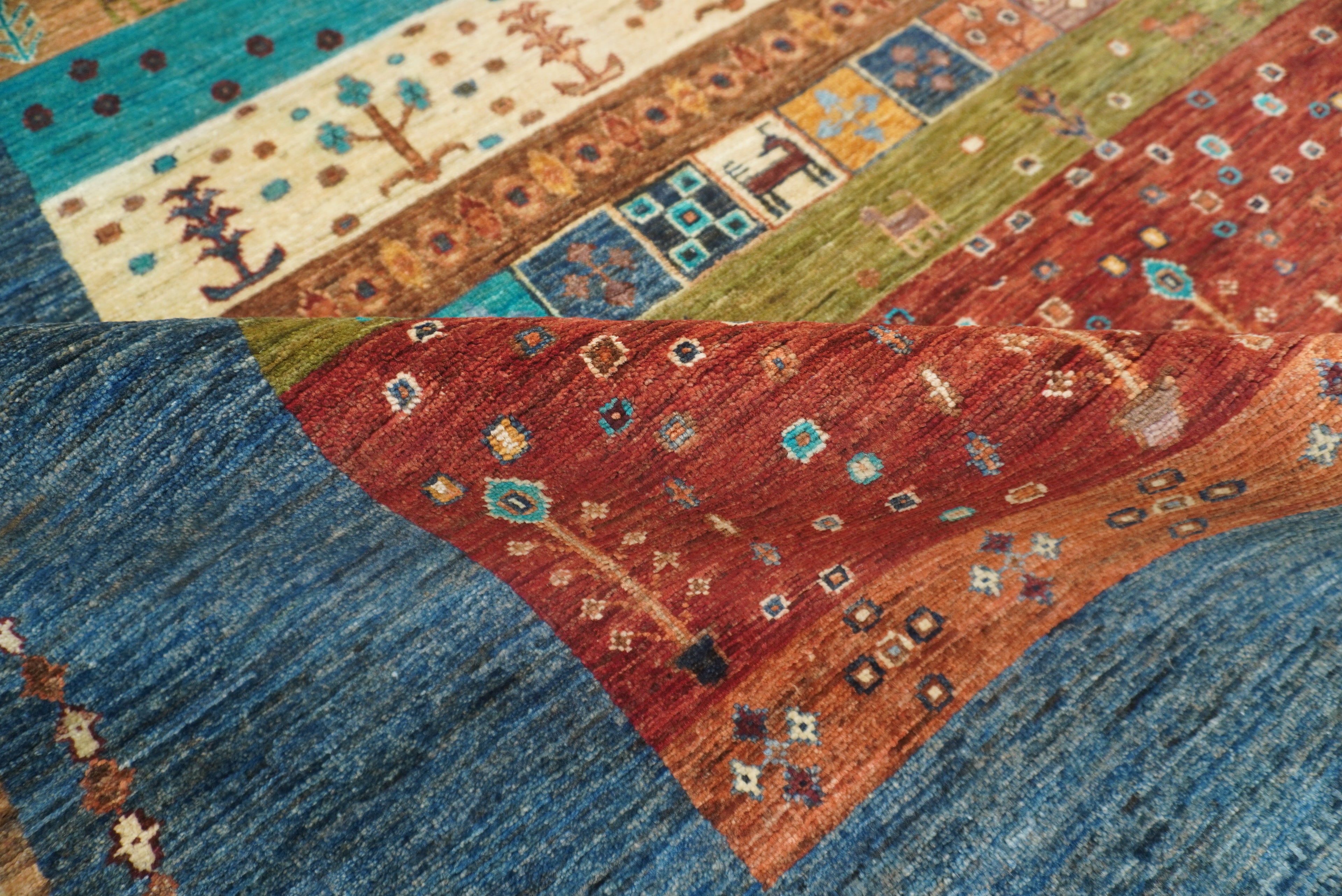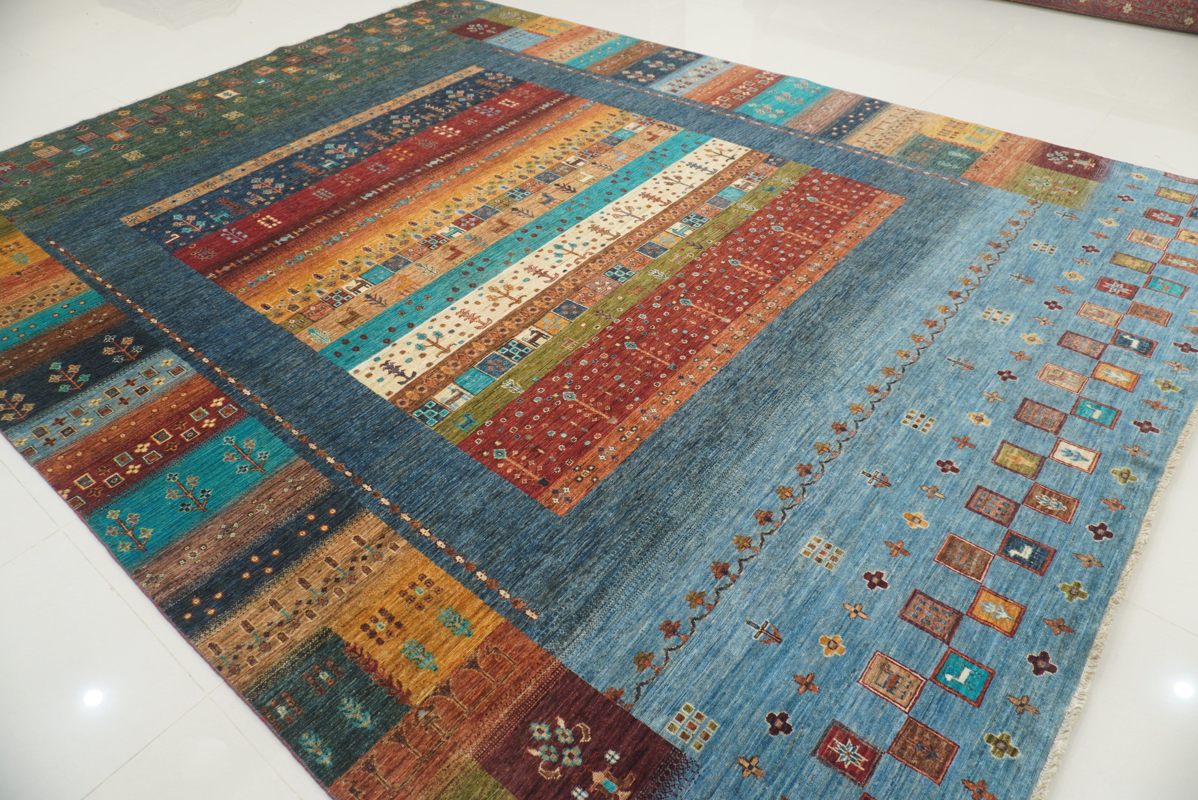 10x13 Blue Green Gabbeh Afghan Kashkuli Hand knotted Rug