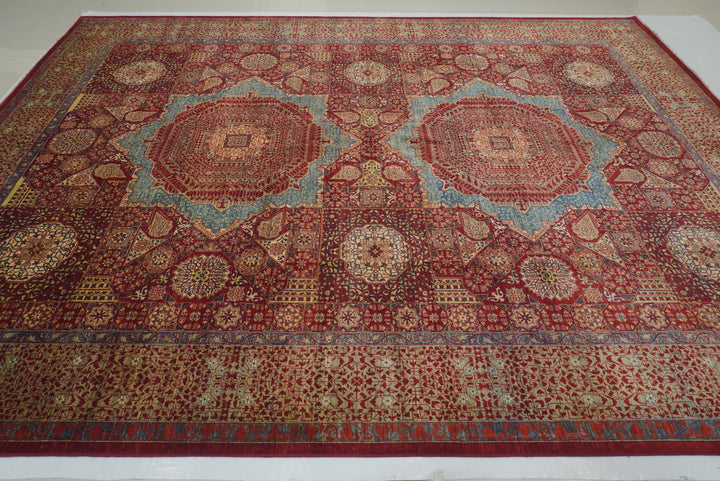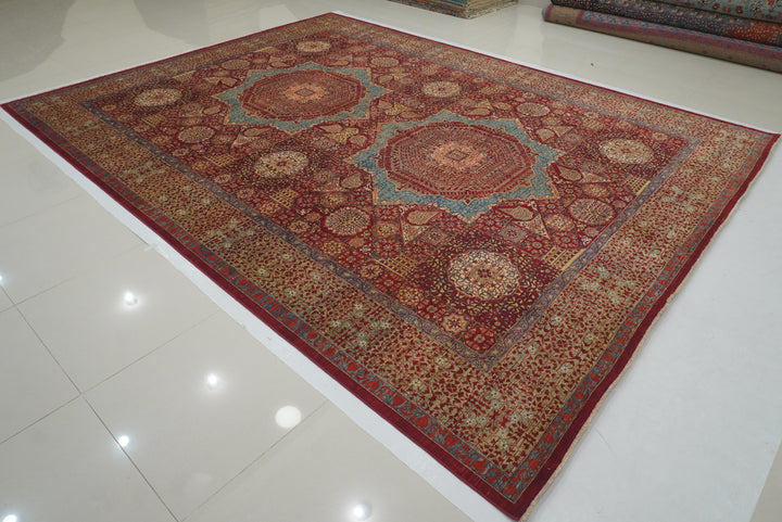 10x13 Red Mamluk Turkish Hand knotted Medallion Rug