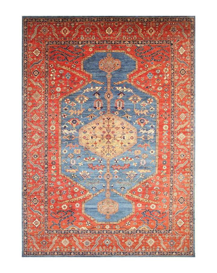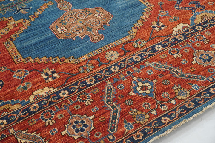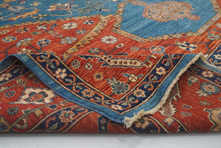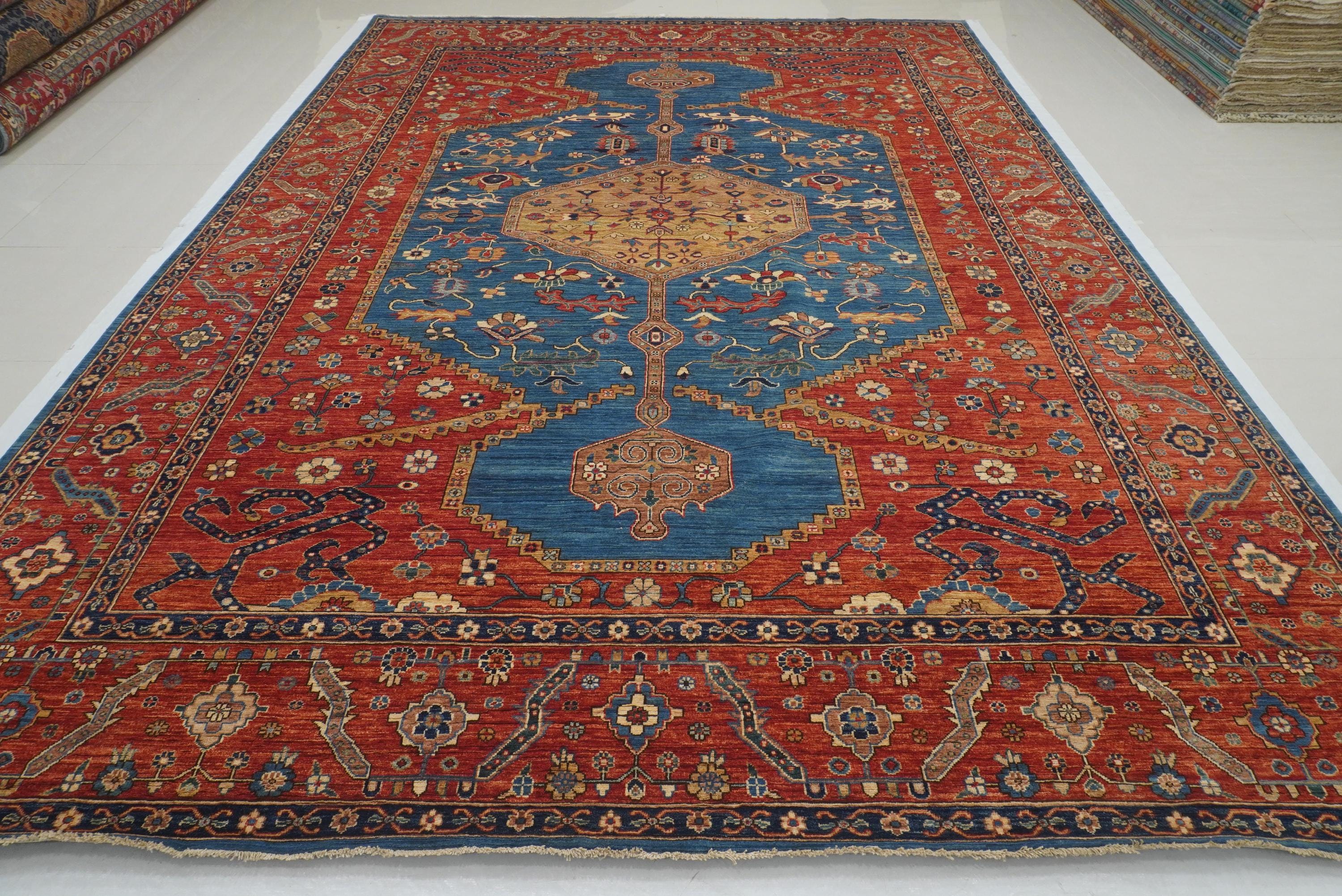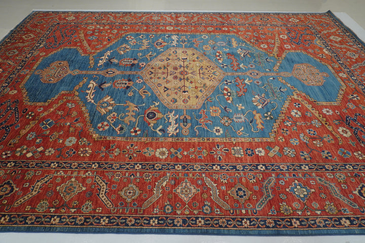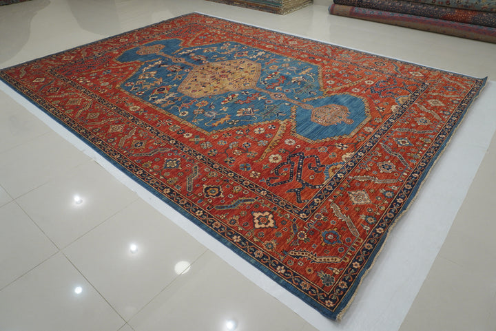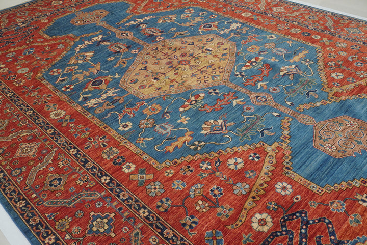 10x14 Blue Red Serapi Afghan Hand knotted Medallion Rug