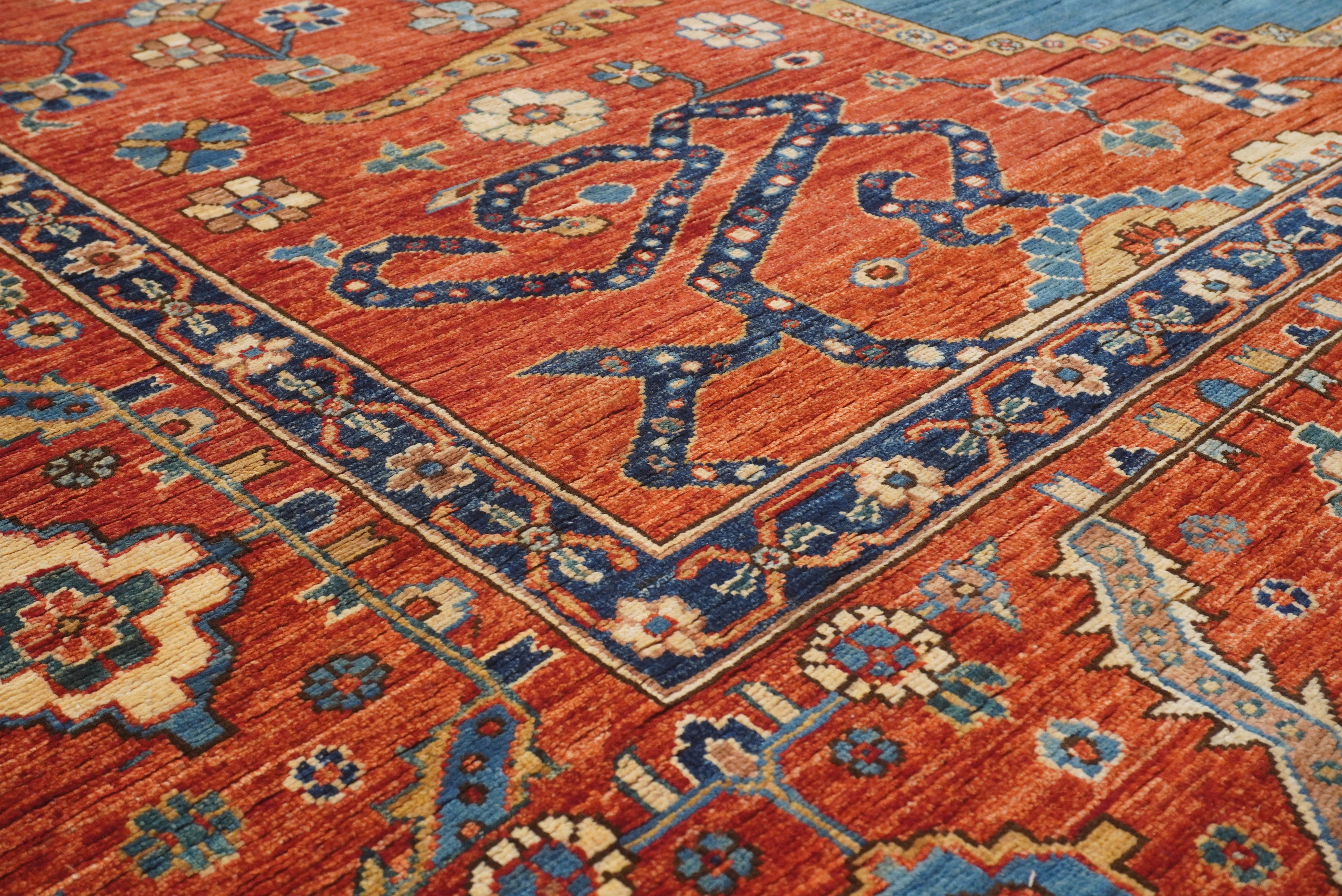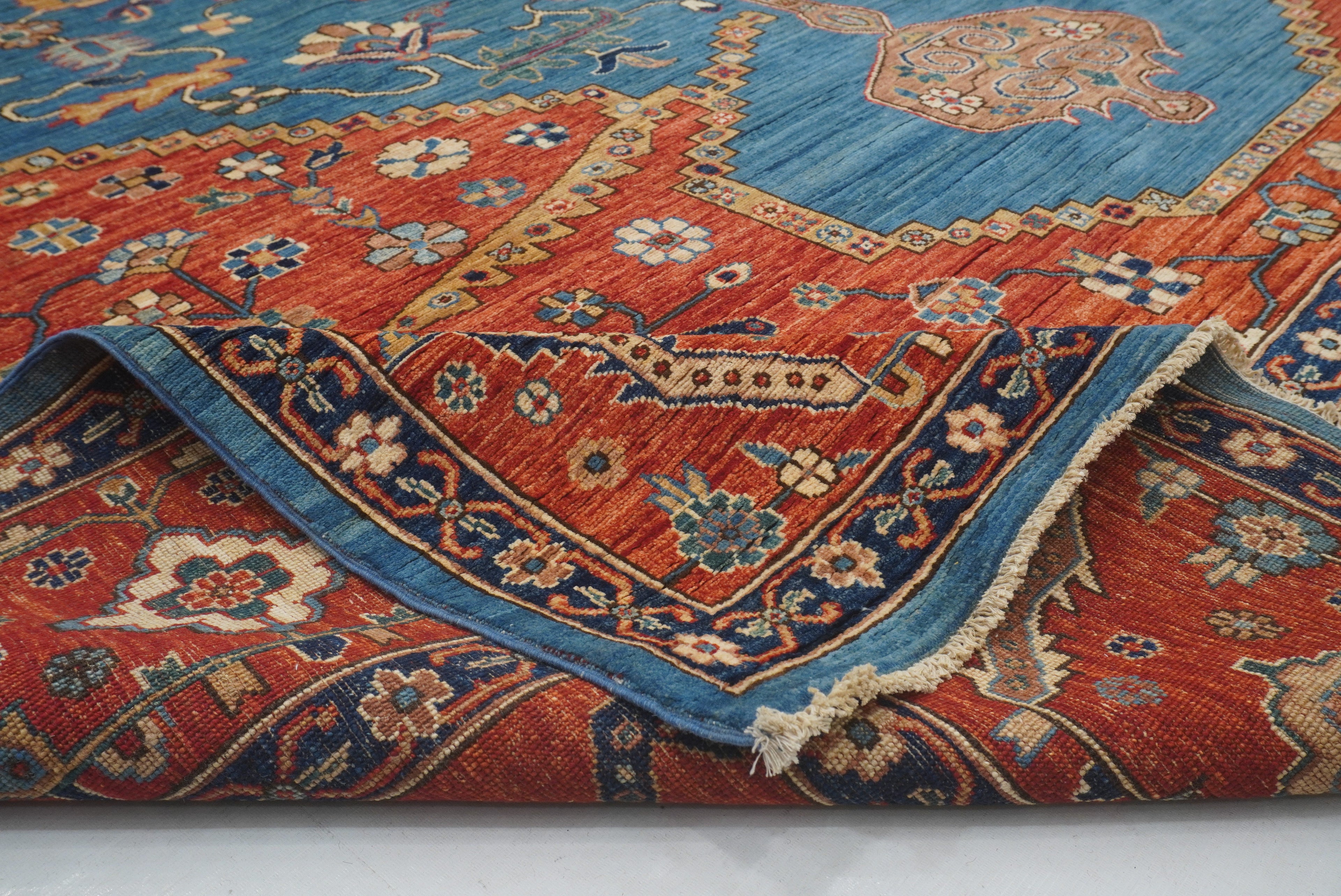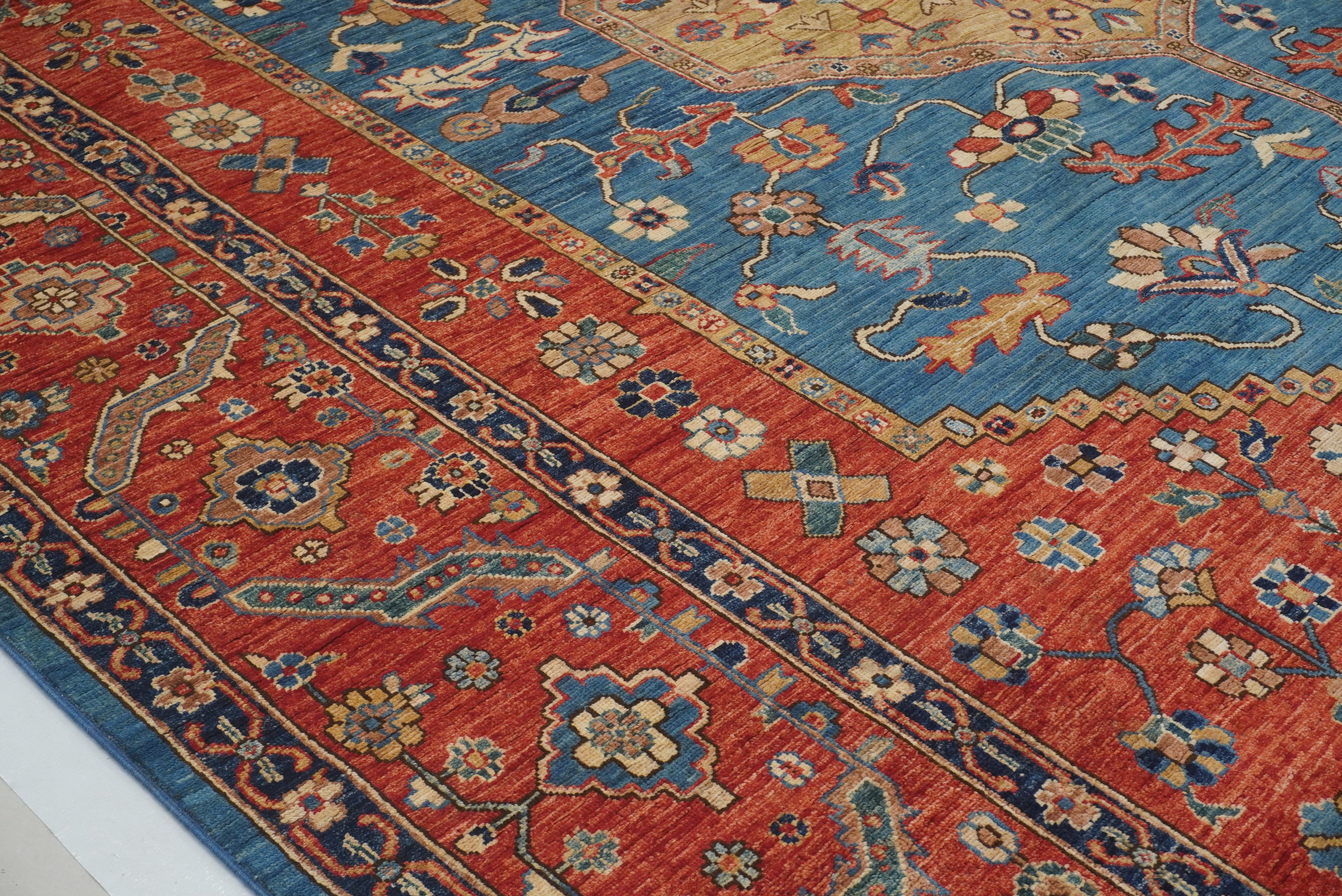 10x14 Blue Red Serapi Afghan Hand knotted Medallion Rug