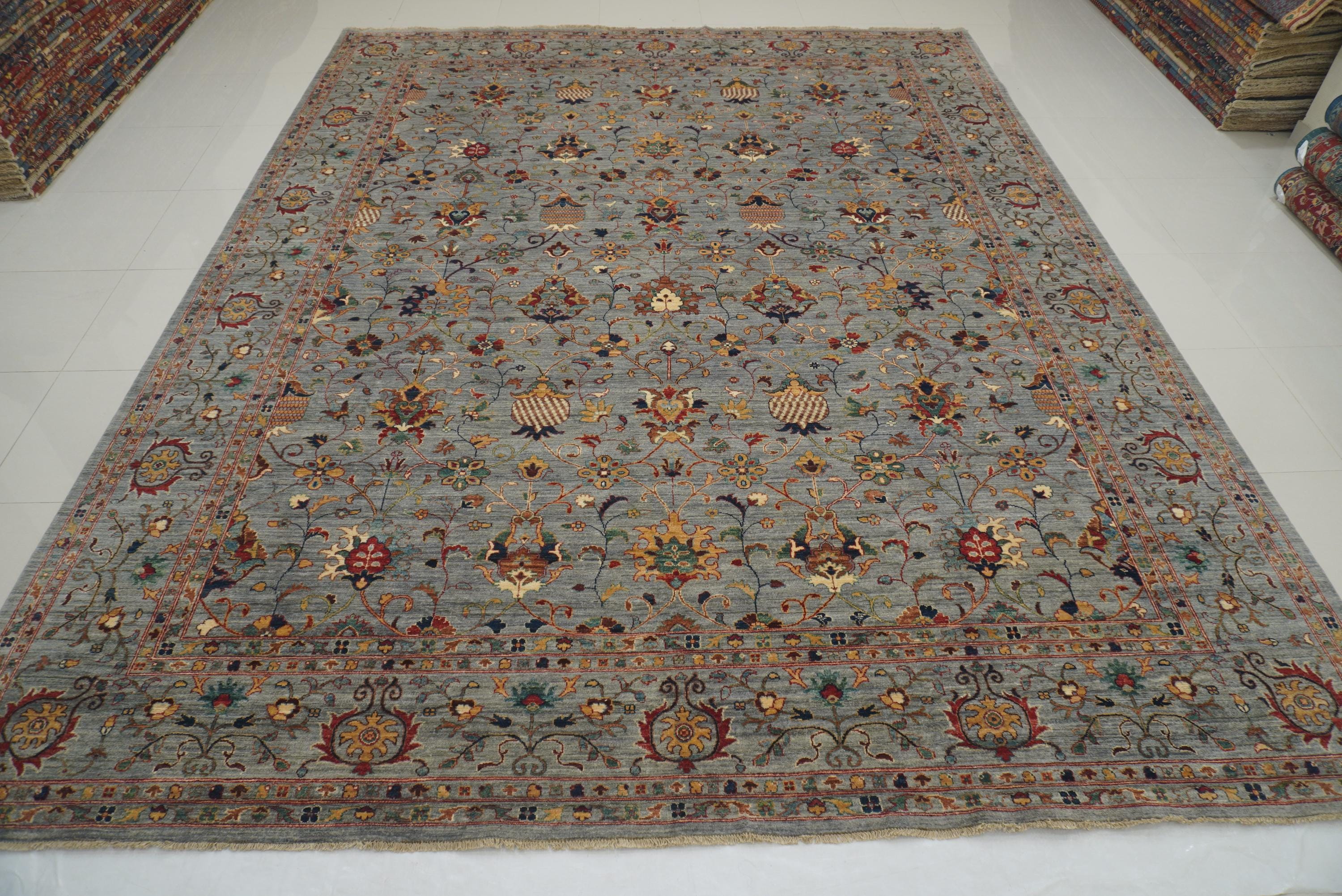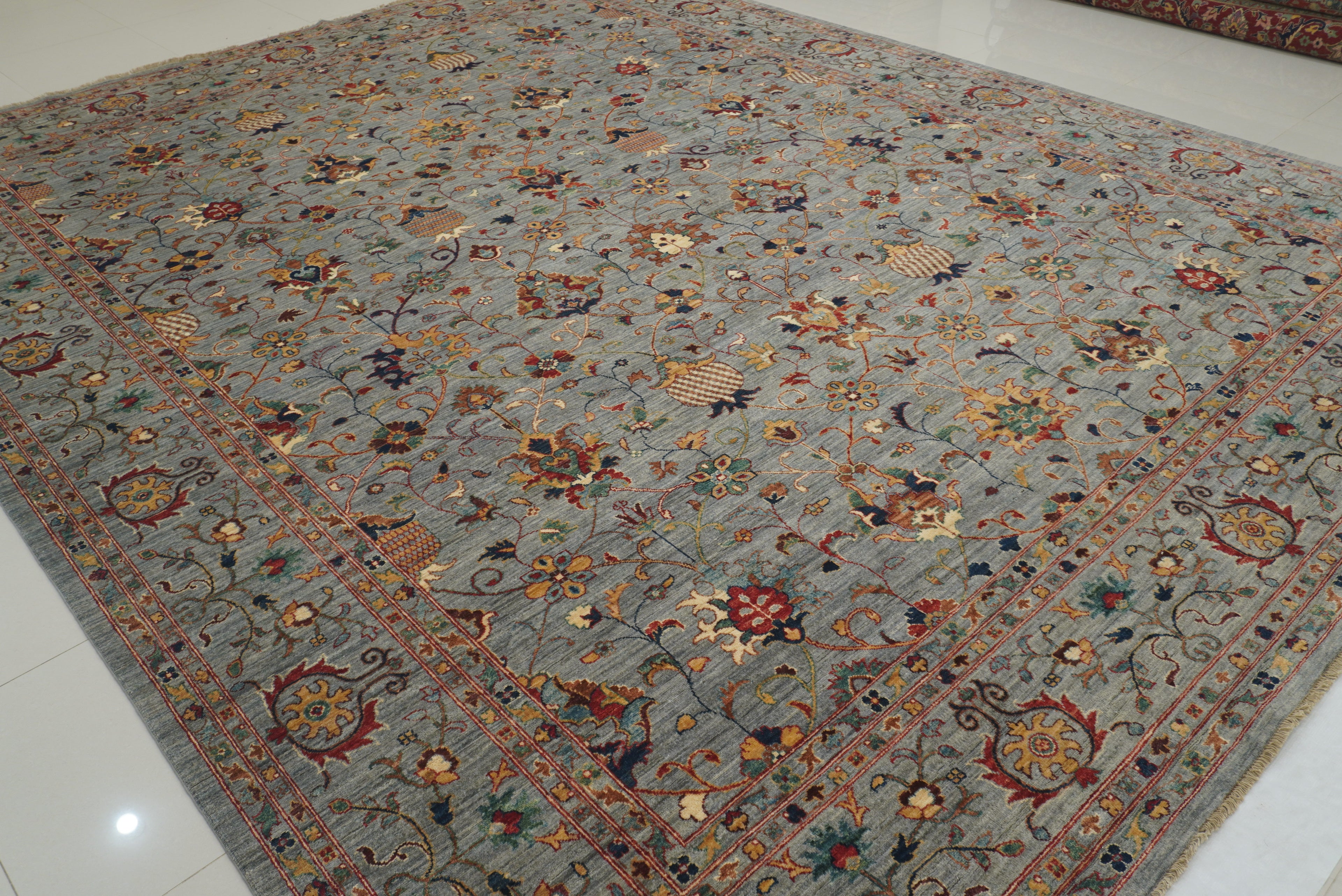 12x15 ft Blueish Gray Waziri Afghan Hand knotted Oriental Rug