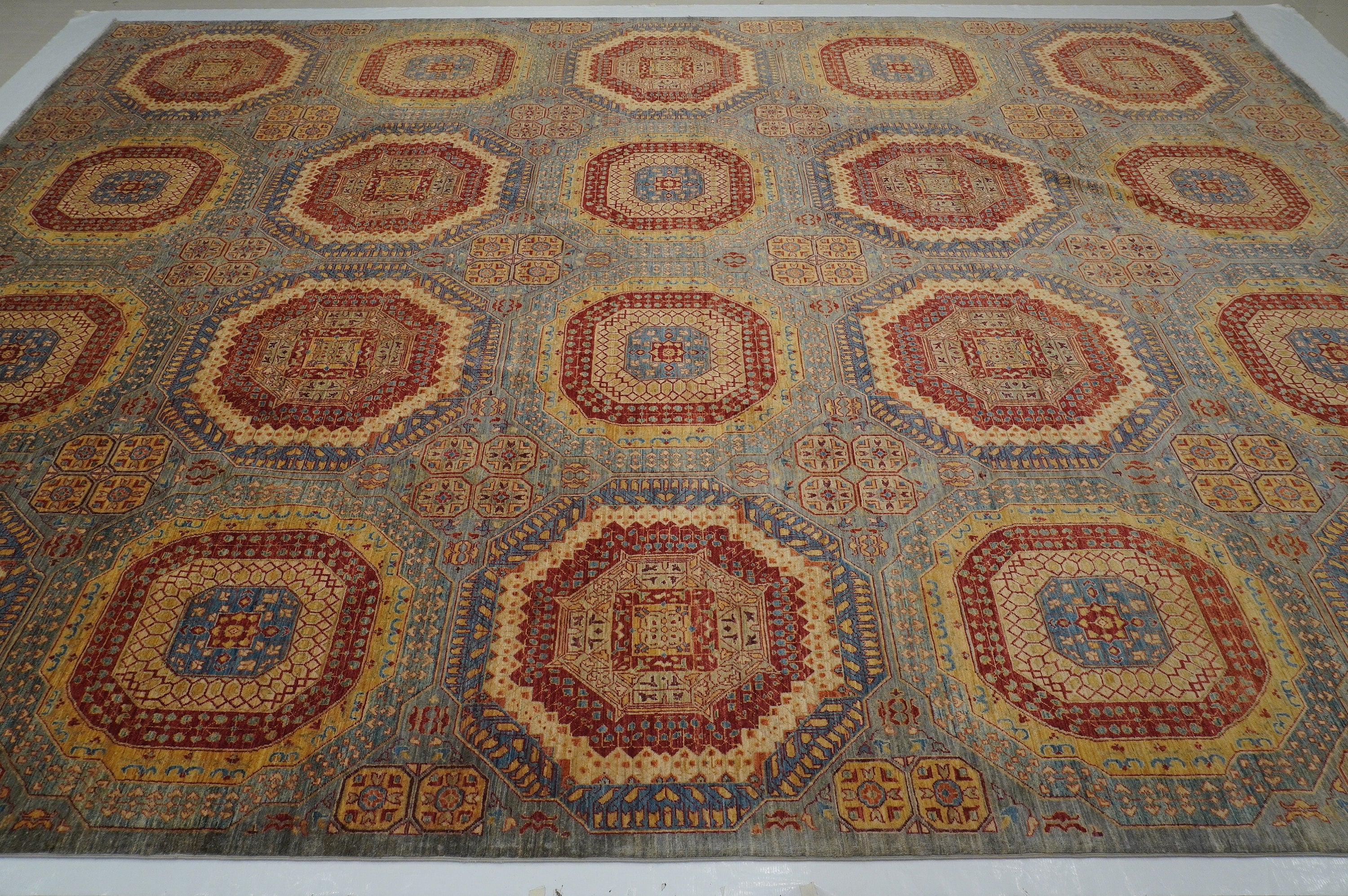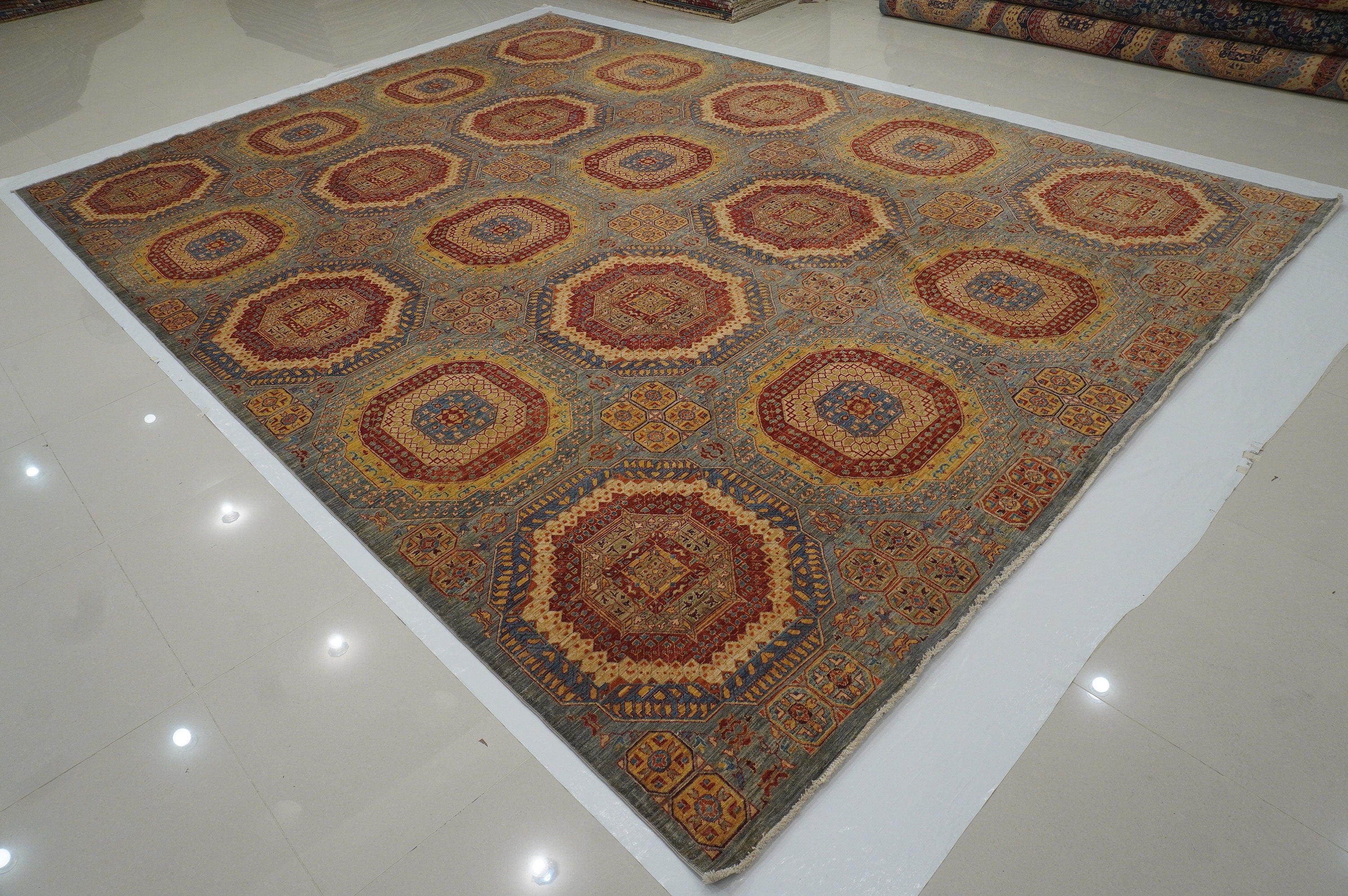 10x14 Gray Mamluk Afghan Hand knotted Geometric Rug