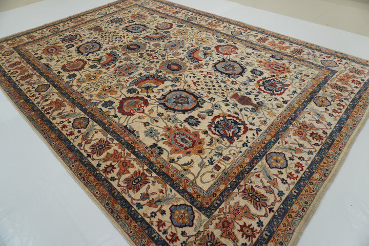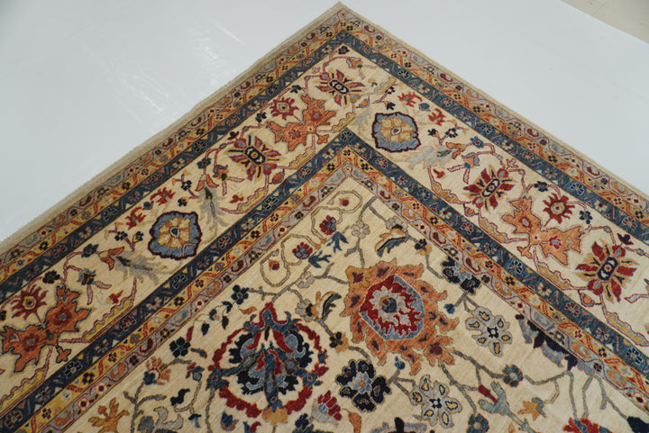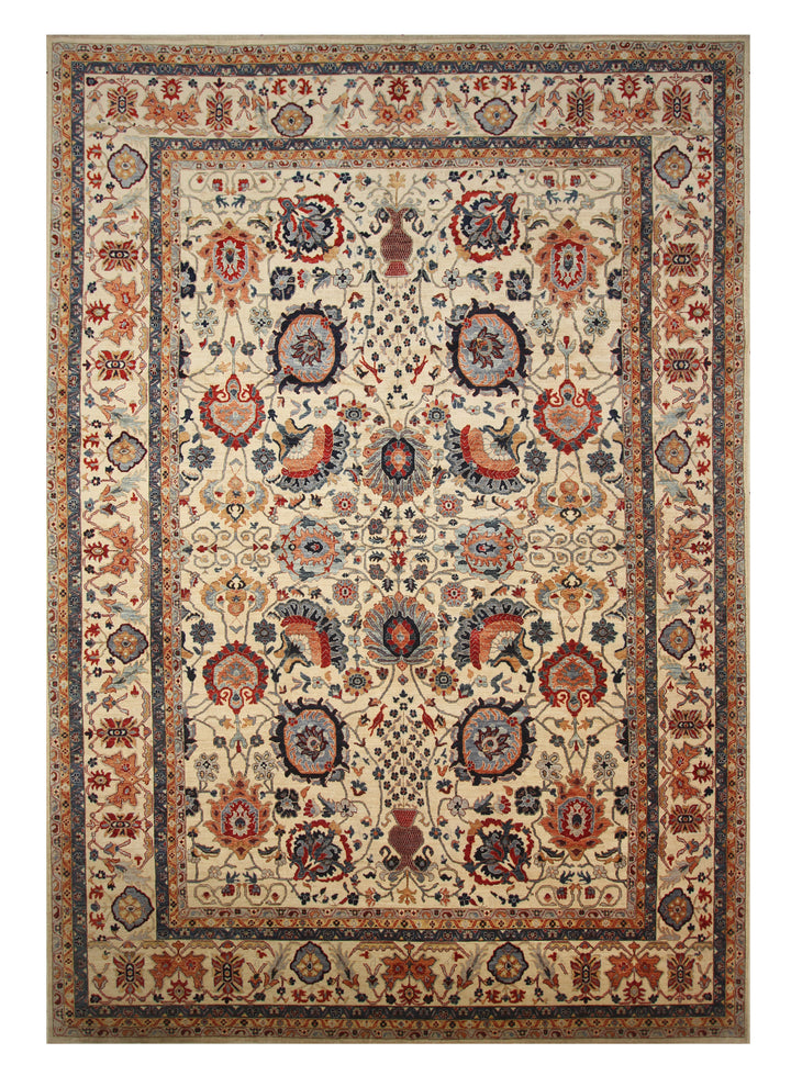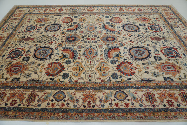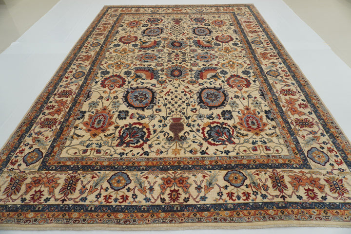 10x14 Ivory Beige Sultanabad Hand-Knotted Afghan Rug