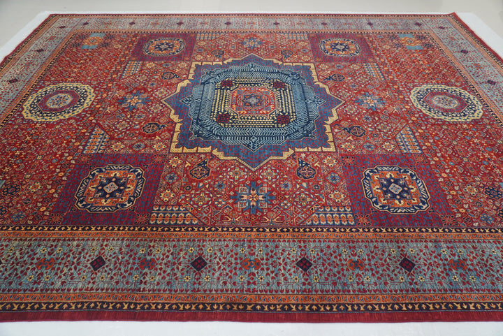 10x14 Red Mamluk Turkish Hand knotted Medallion Rug