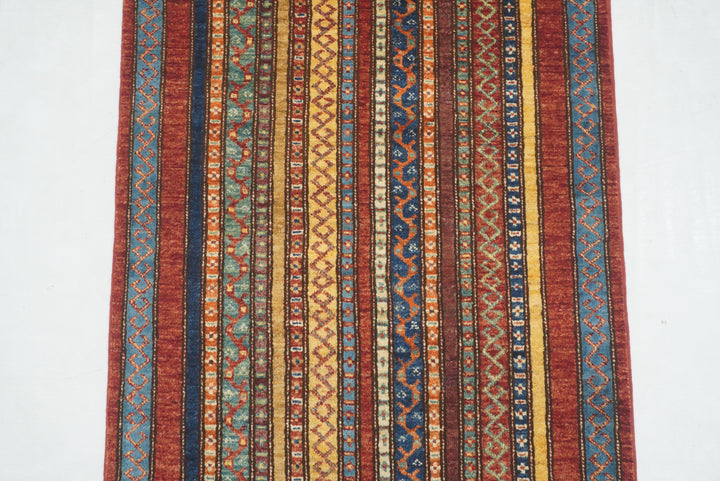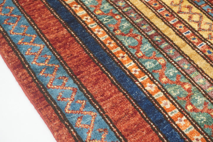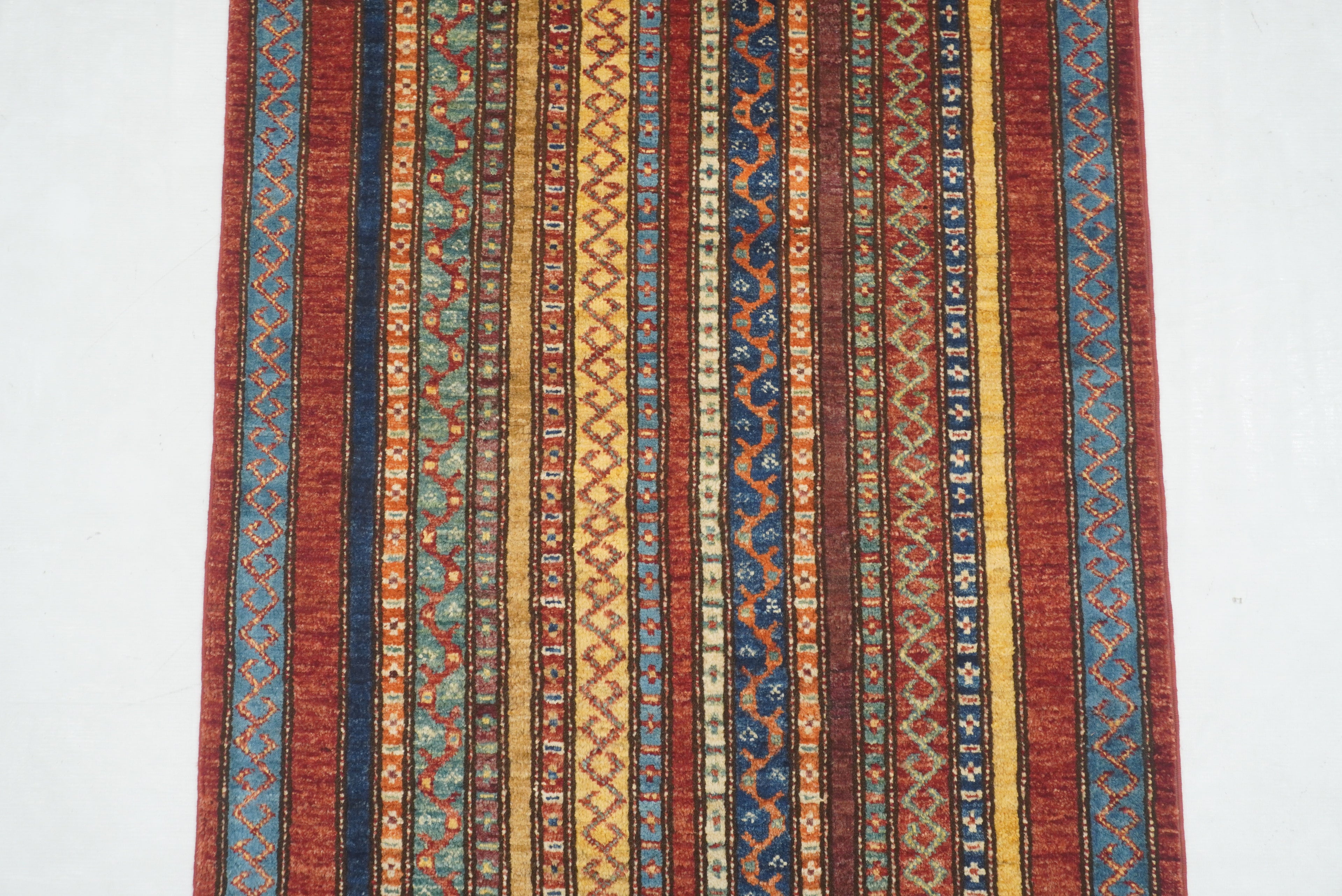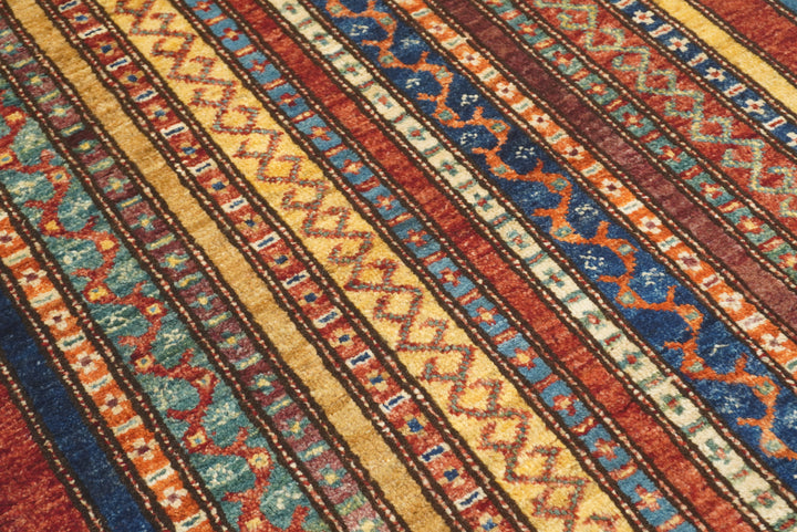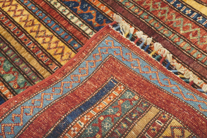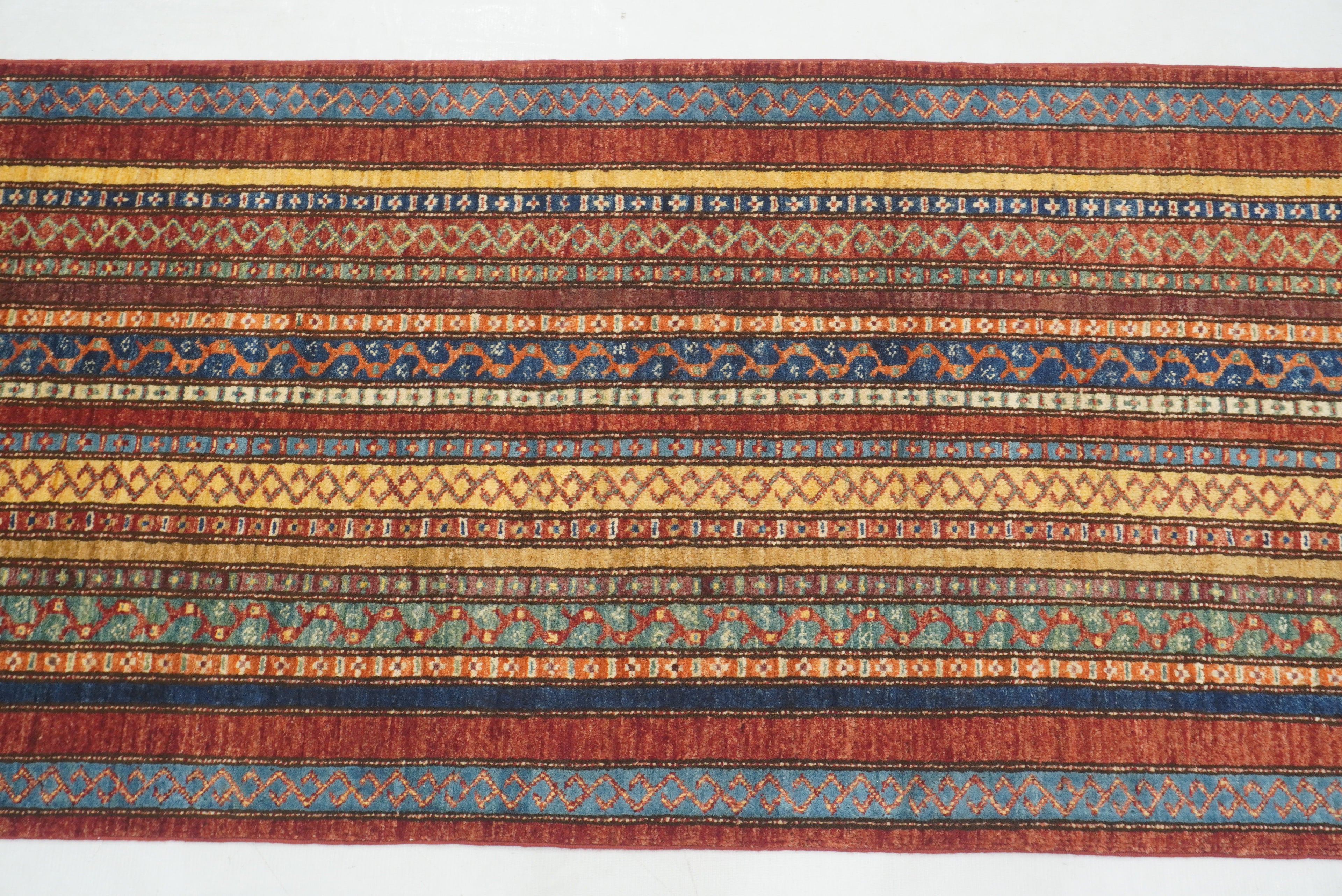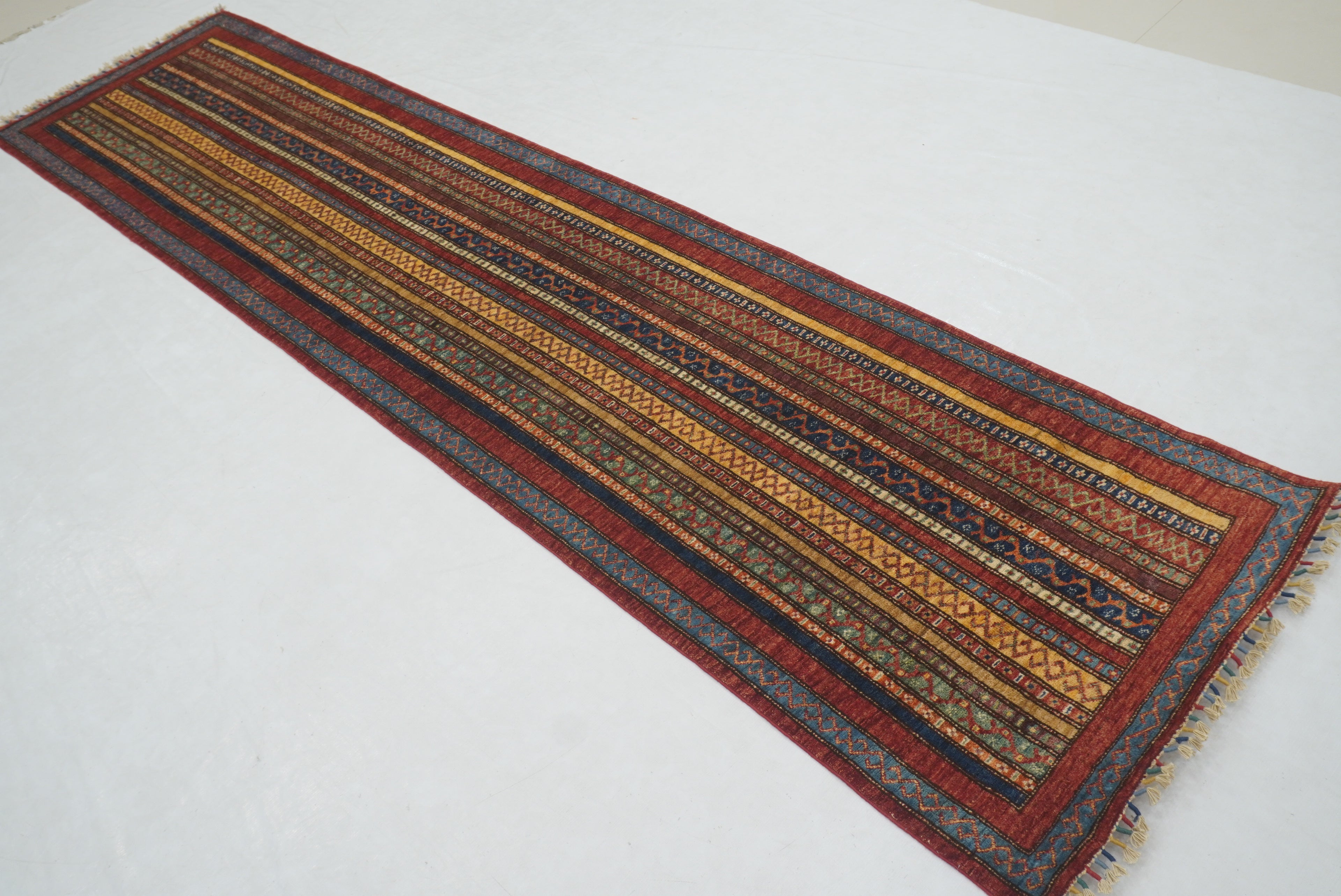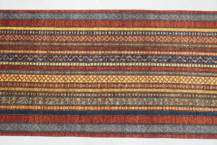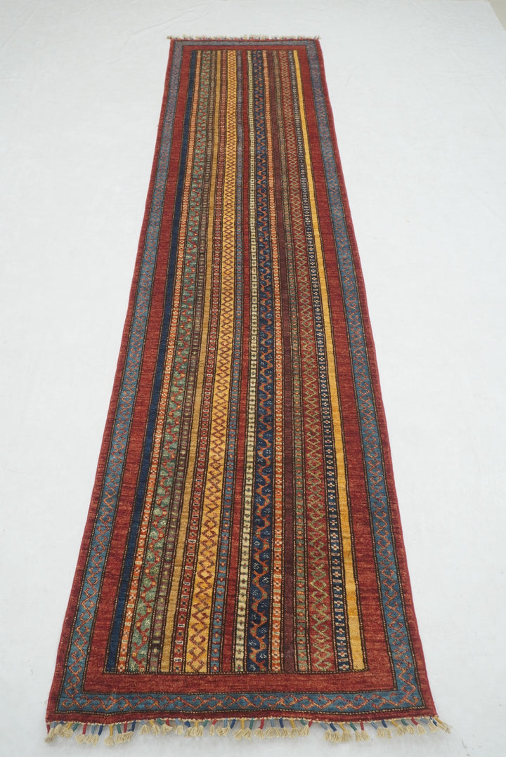 11 ft Red Turkish Shawl Striped Pattern Hand knotted Runner Rug