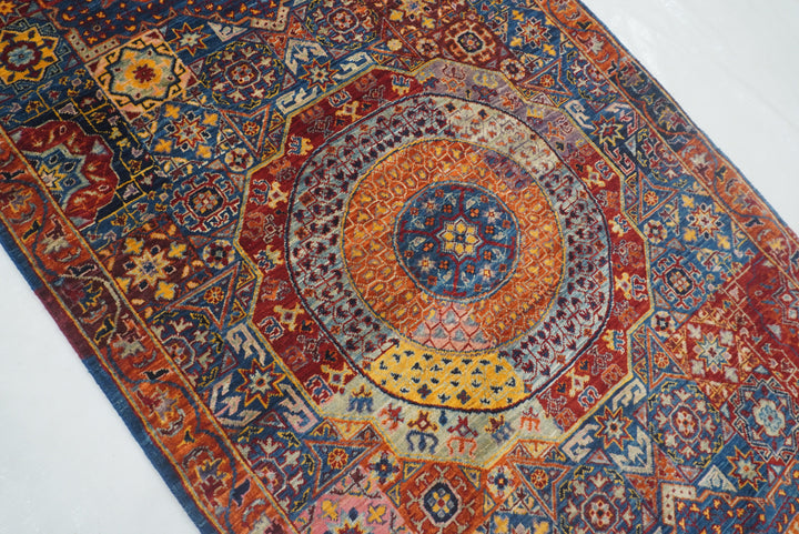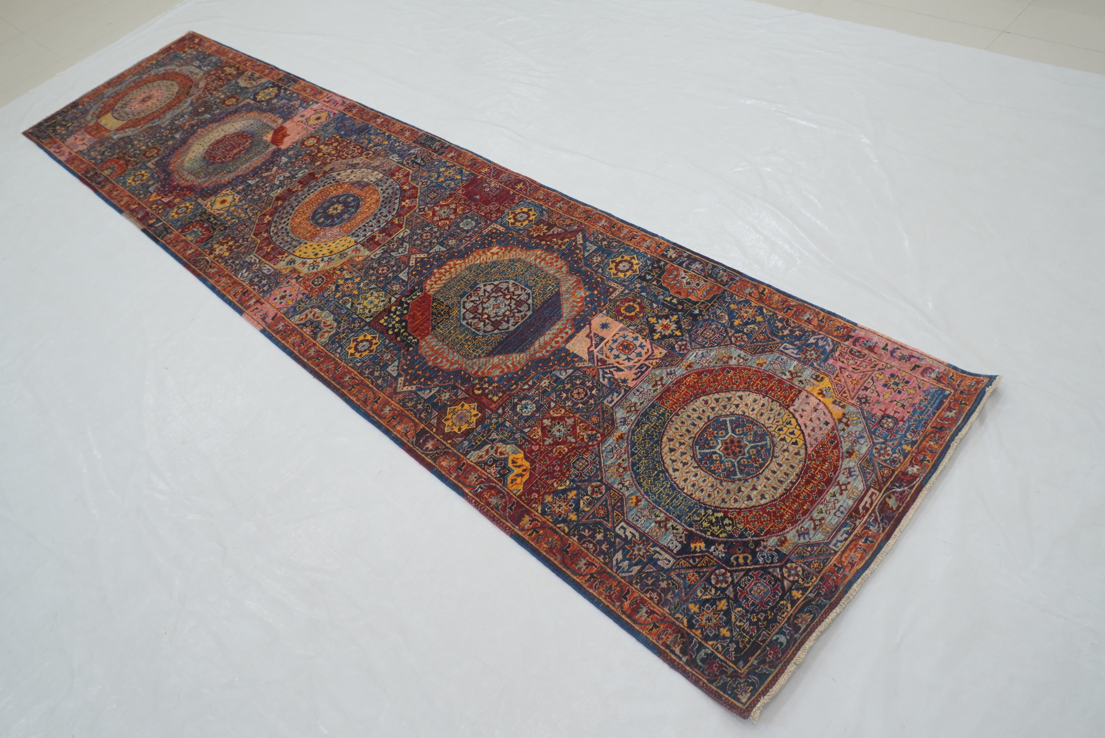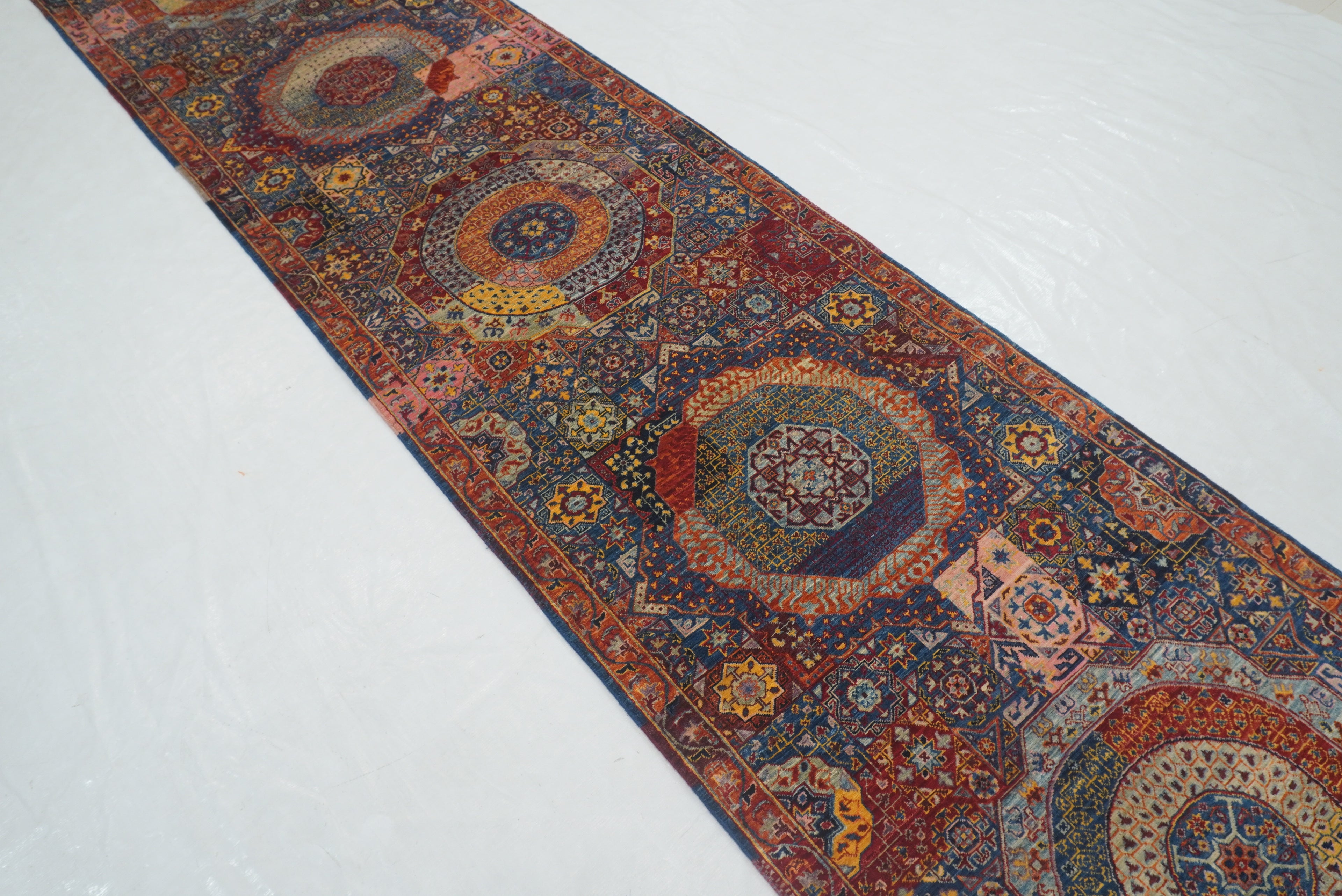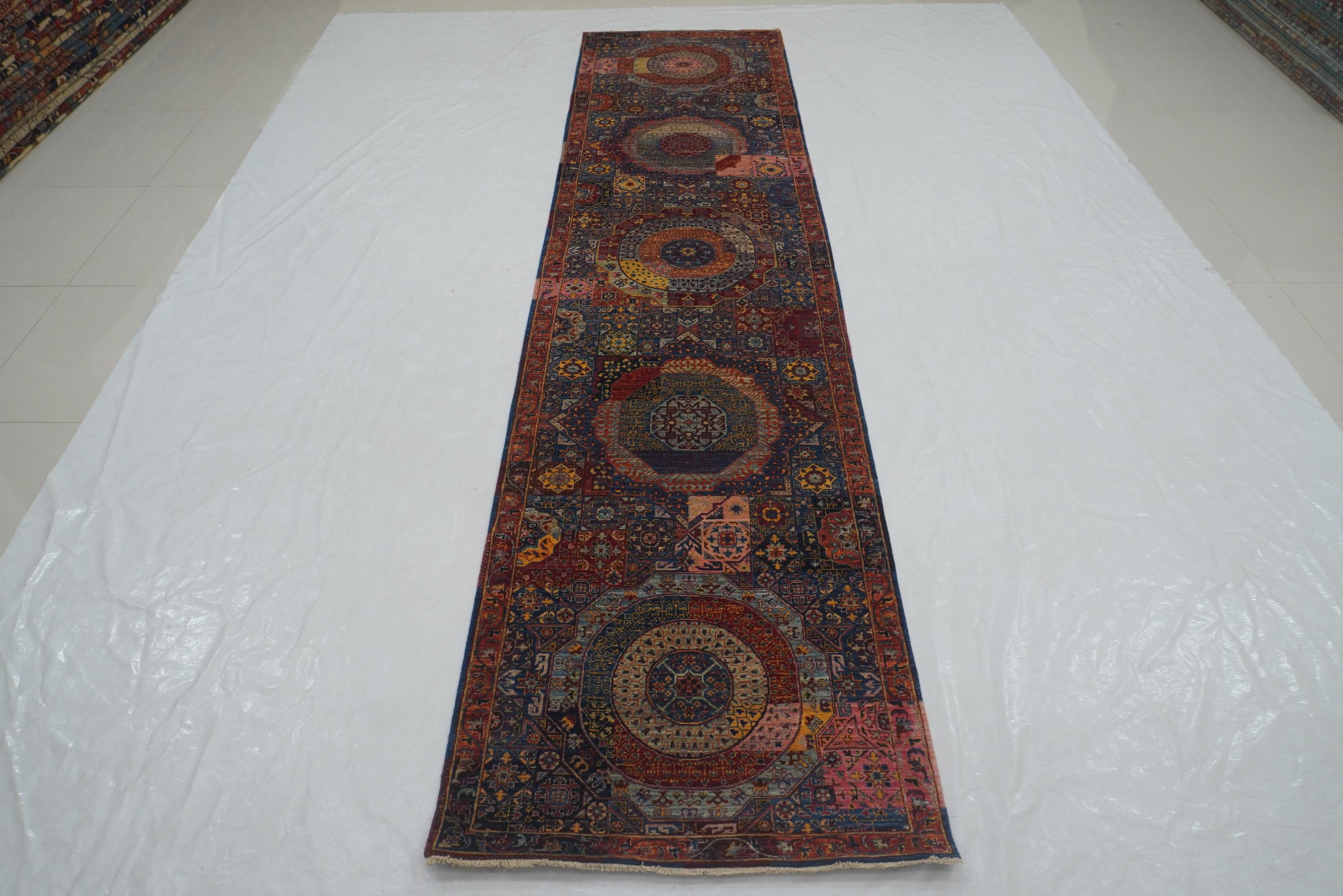 12 ft Blue Mamluk Turkish Hand knotted Runner Rug