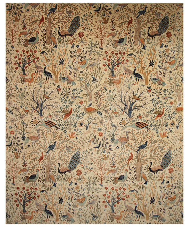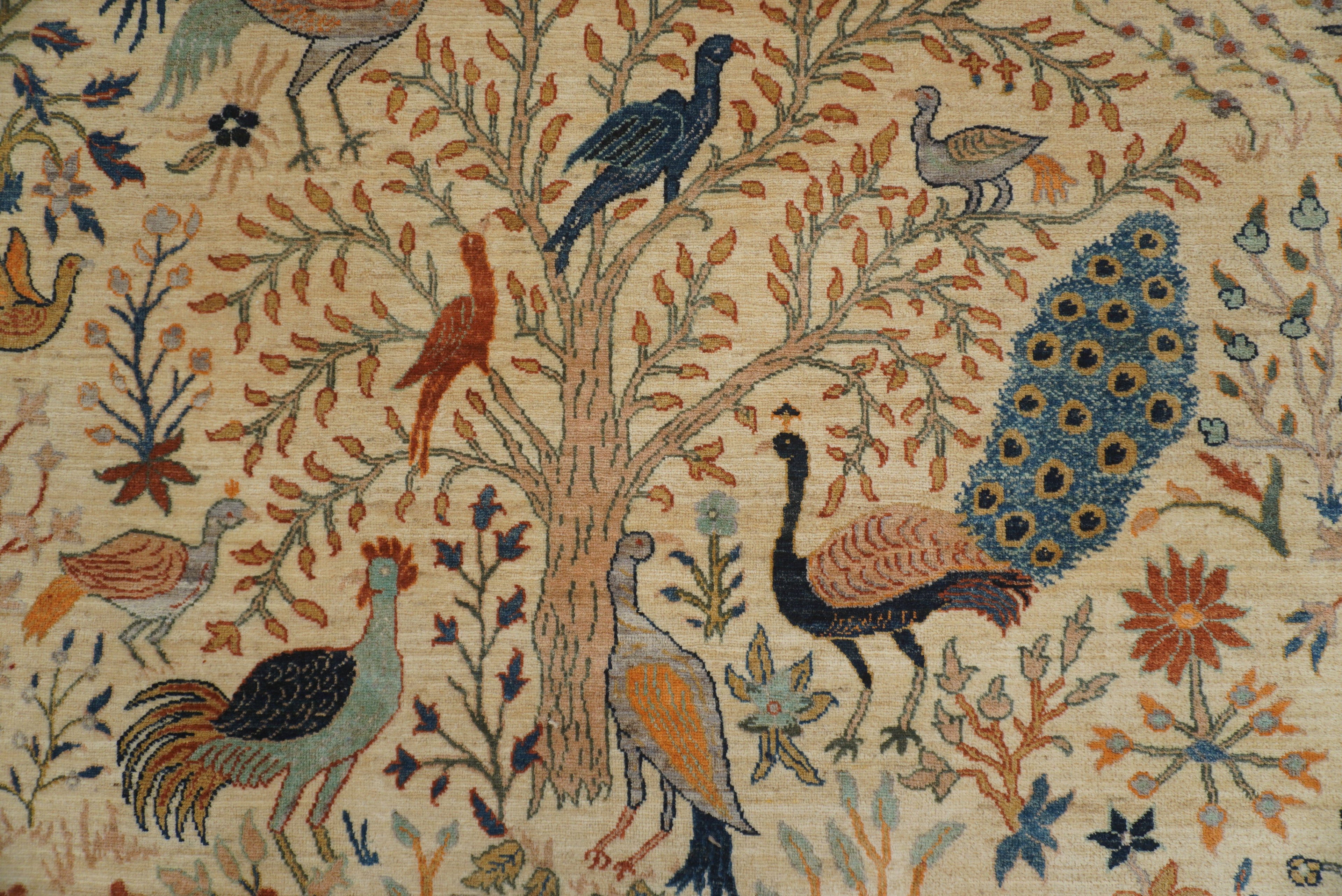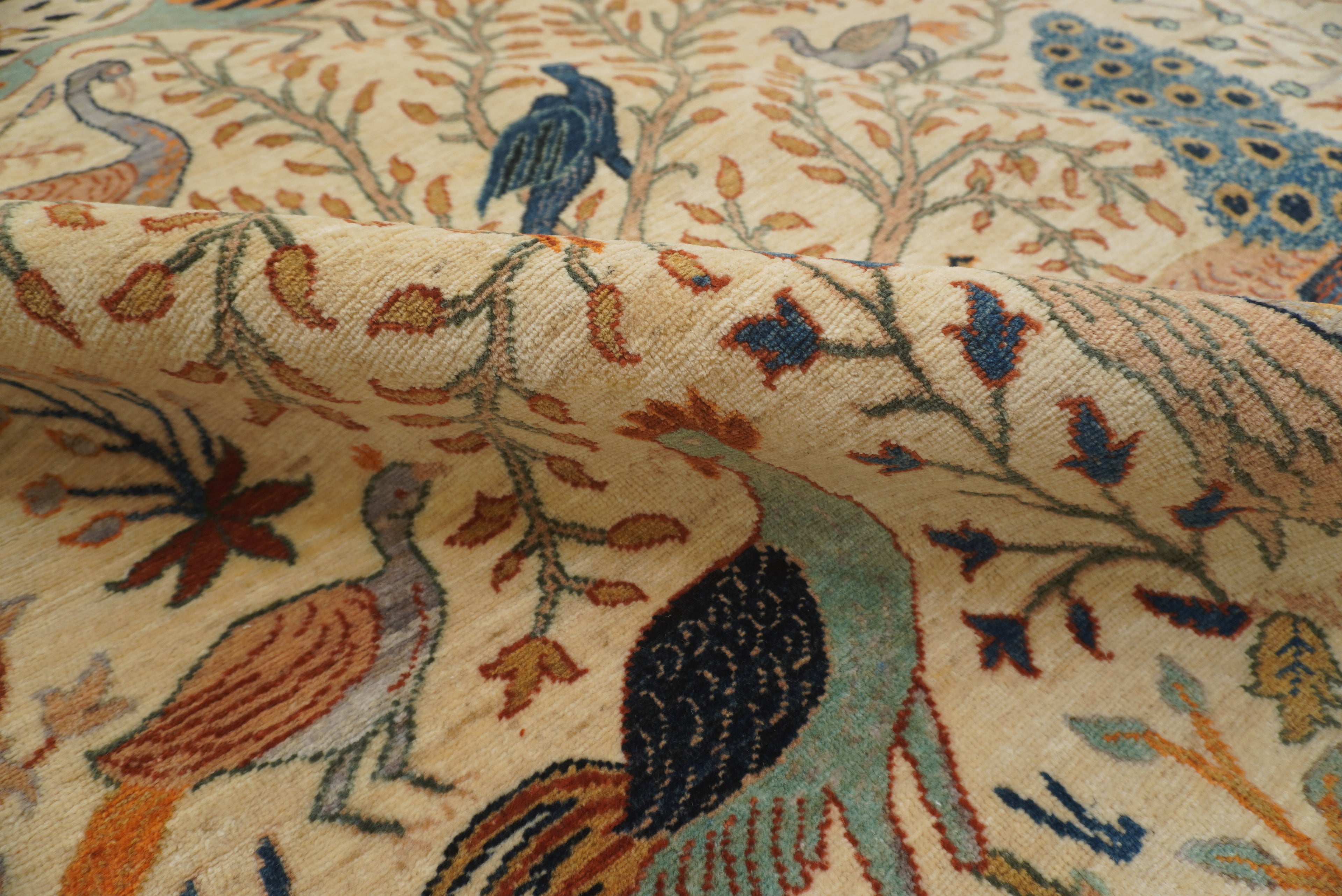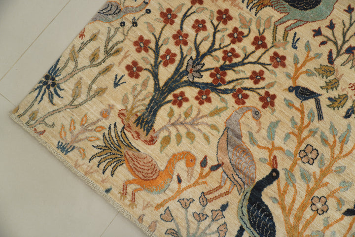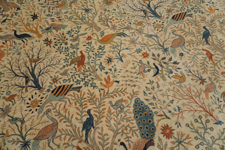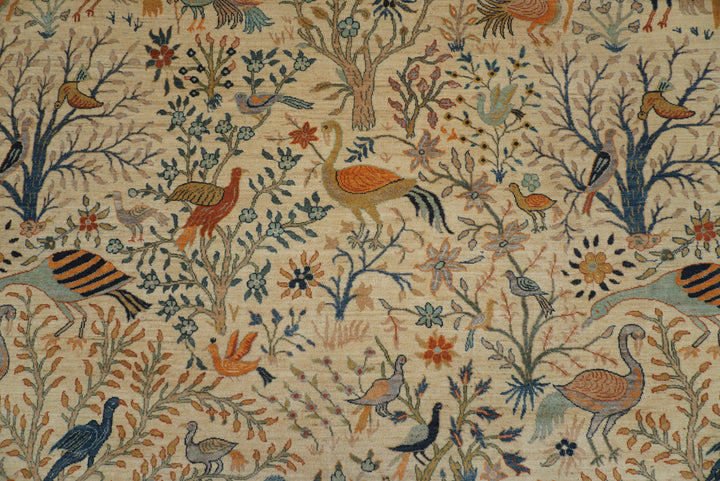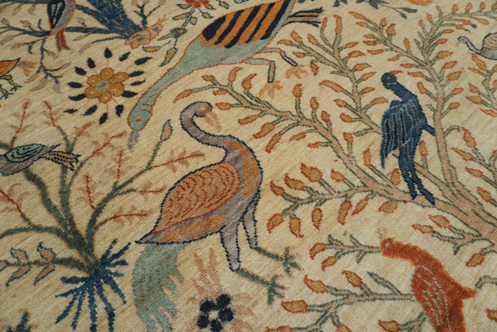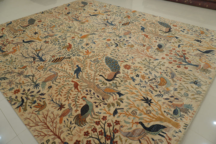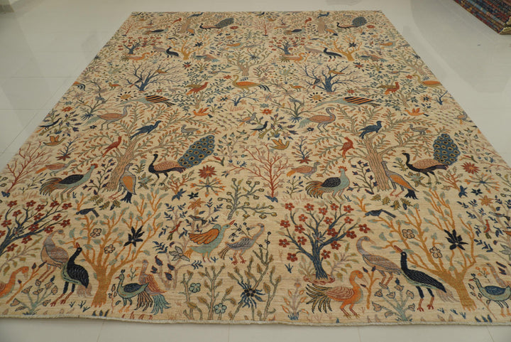 12x14 Beige Bird Afghan Gabbeh Hand Knotted Rug