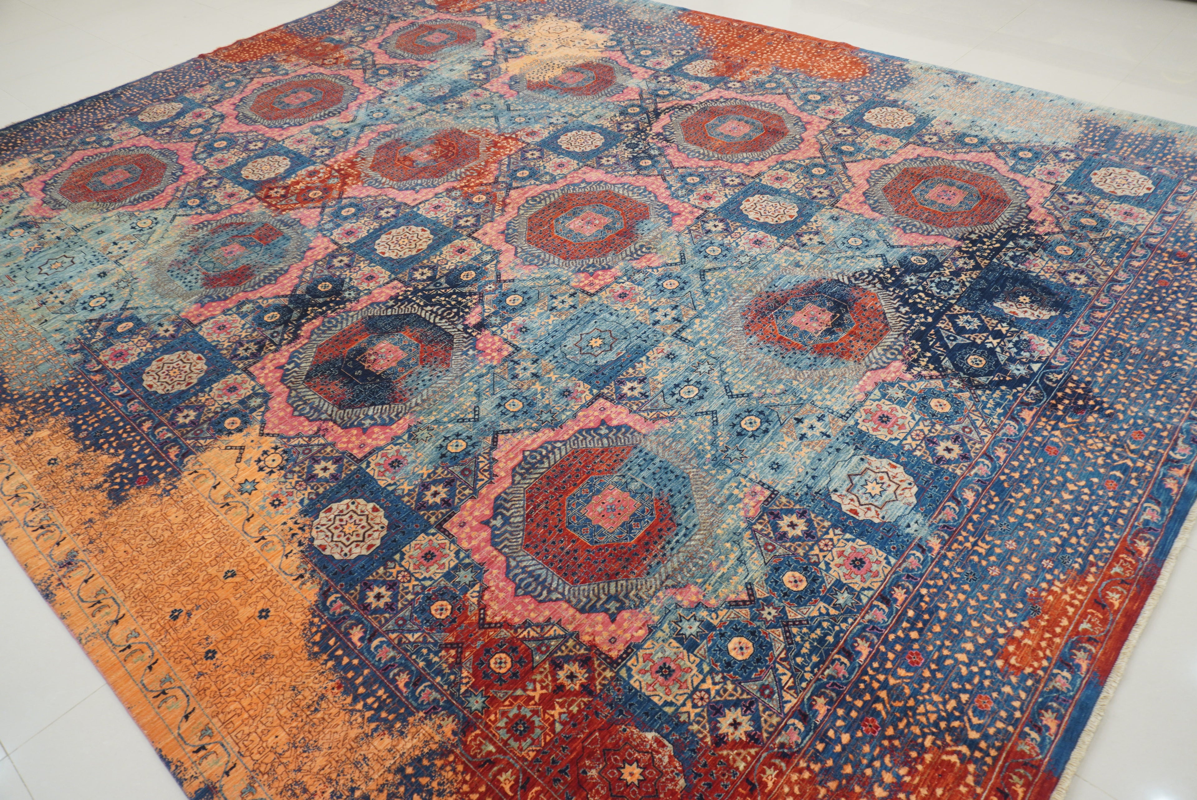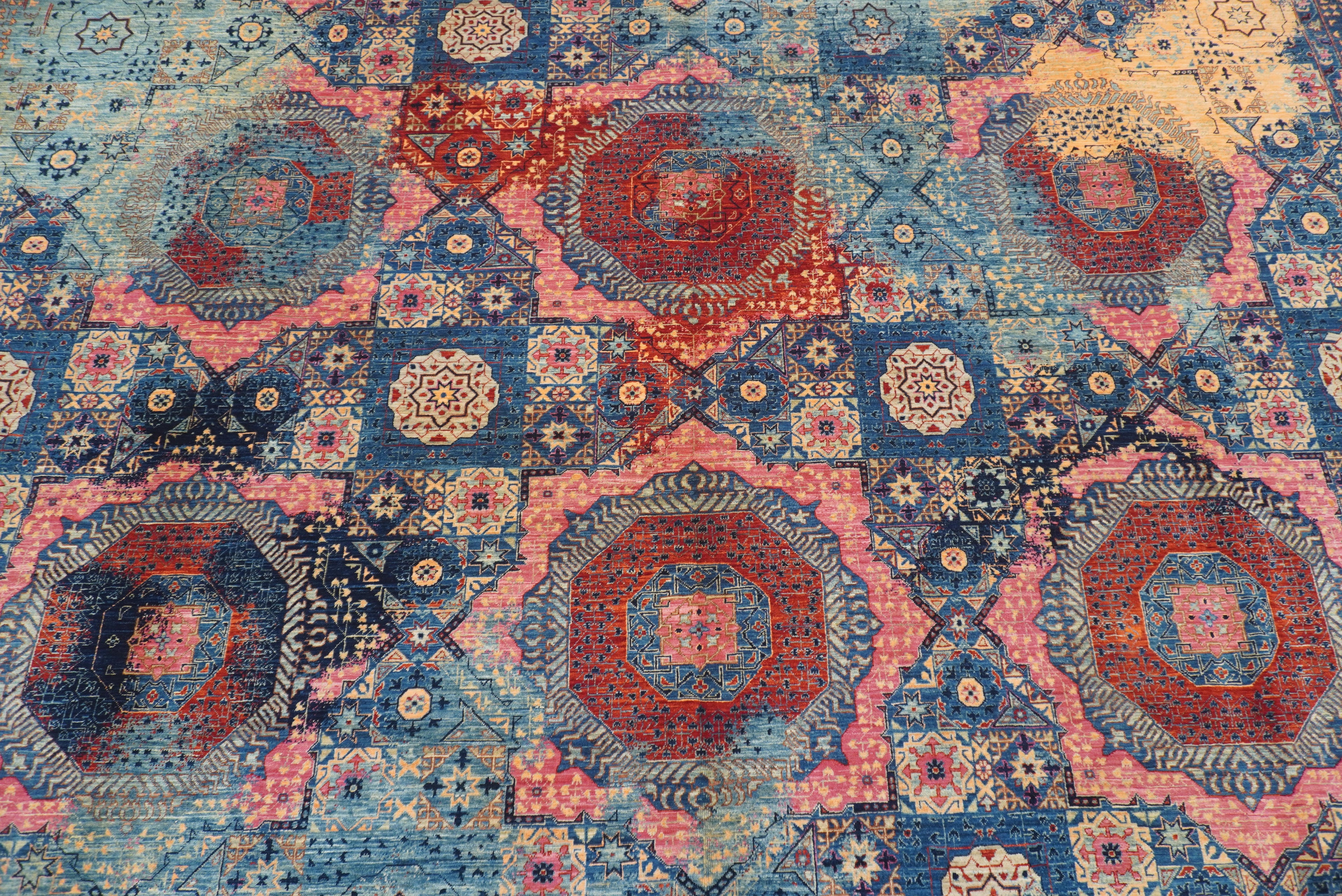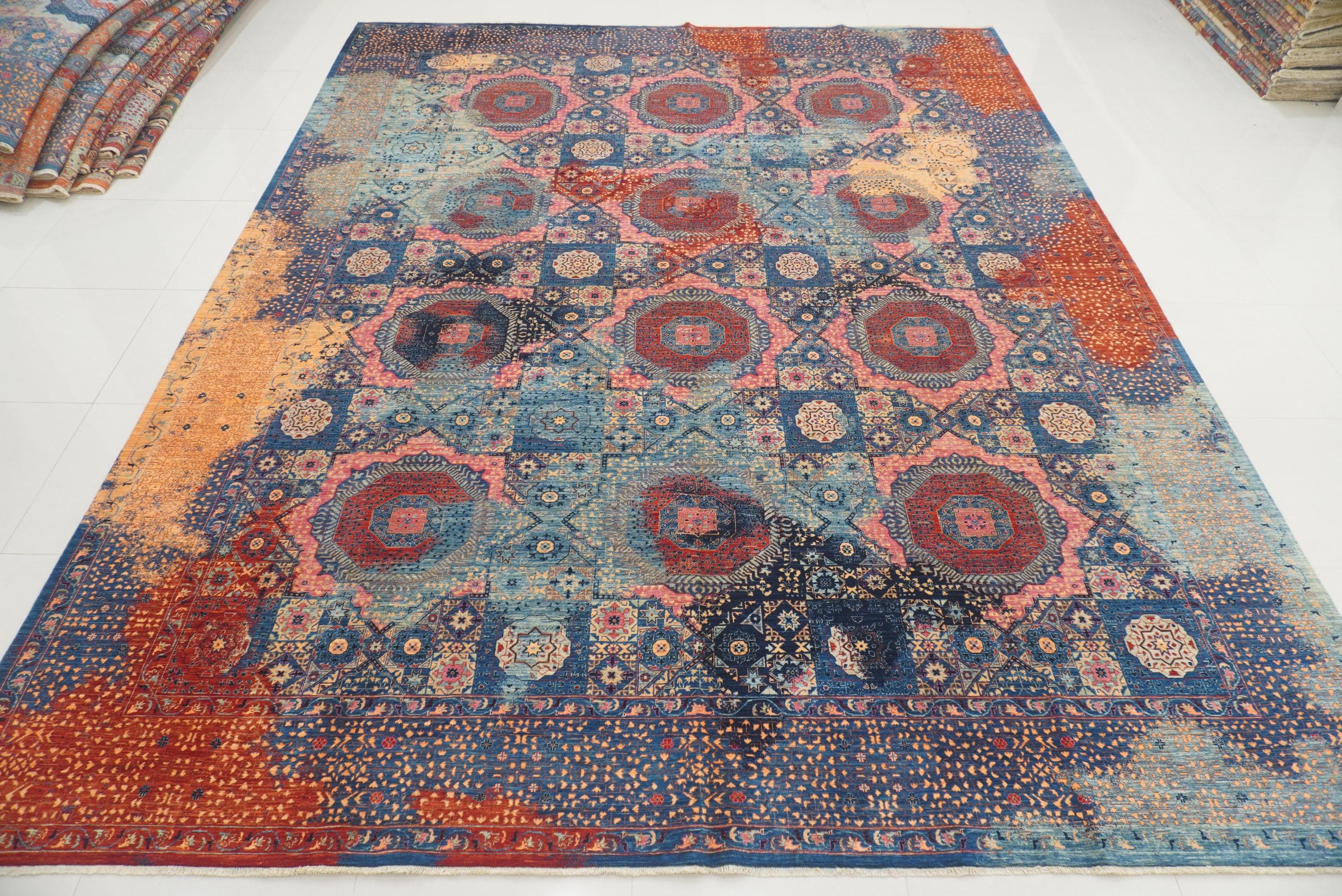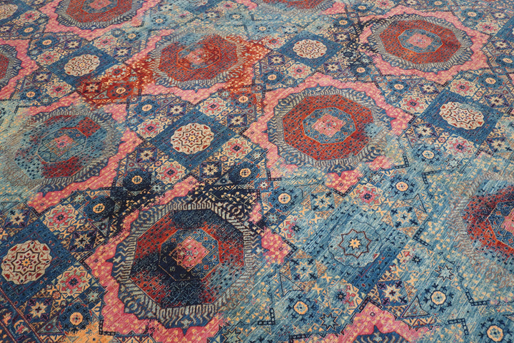 12x15 Blue Mamluk Turkish Hand knotted Medallion Rug